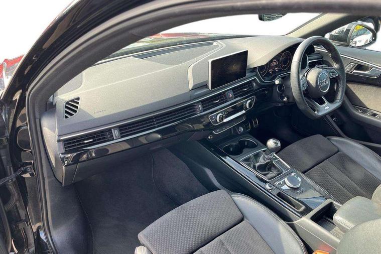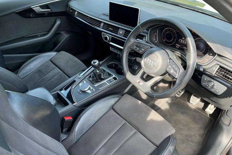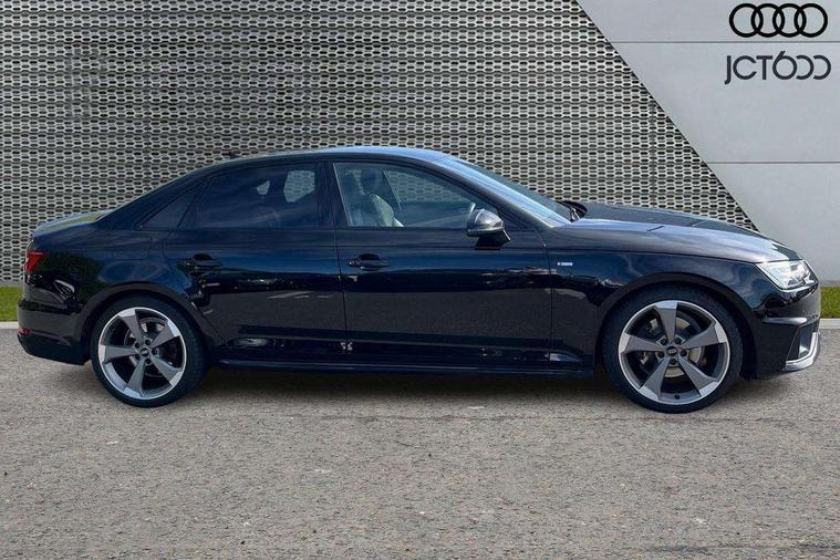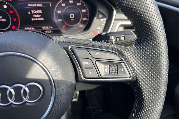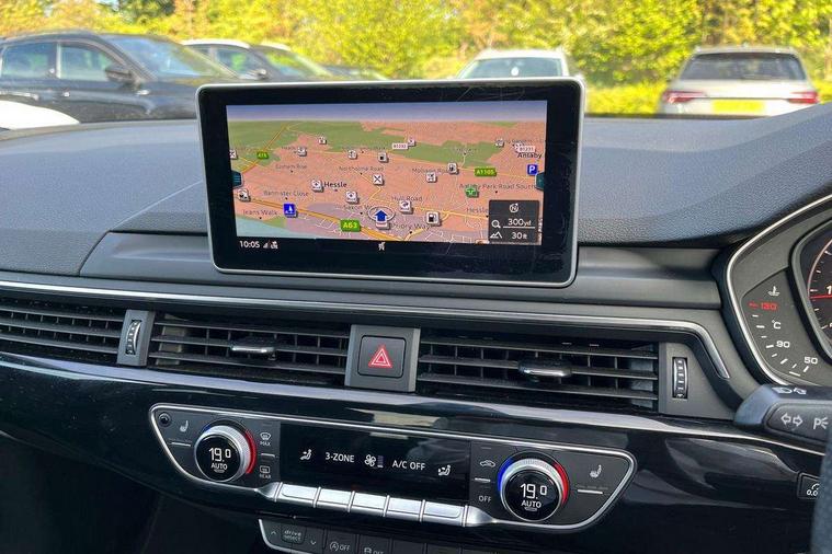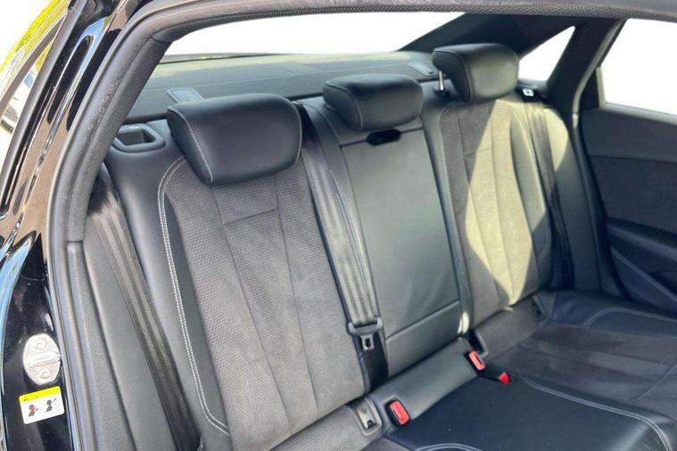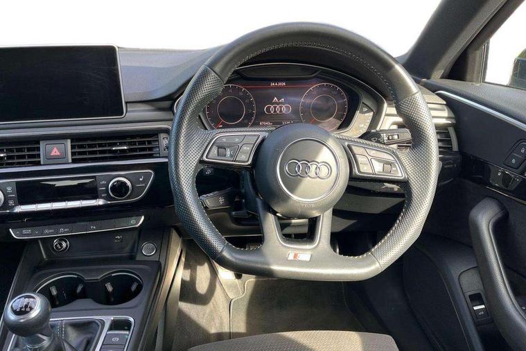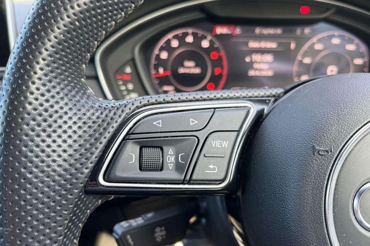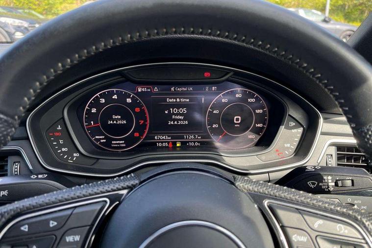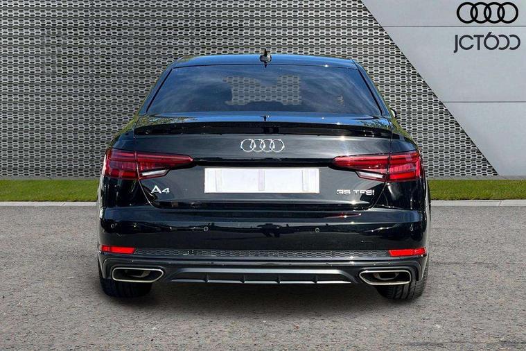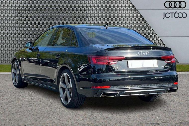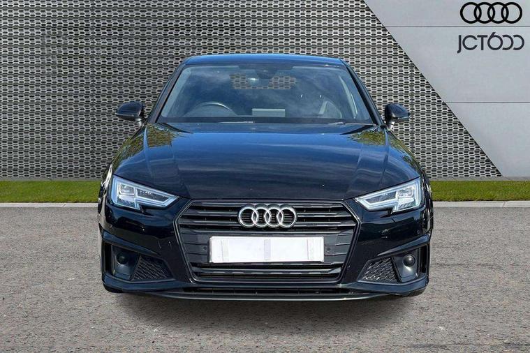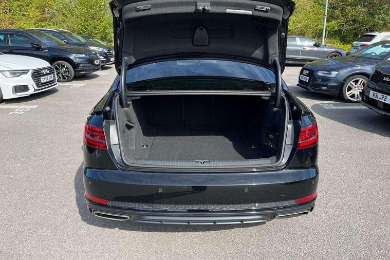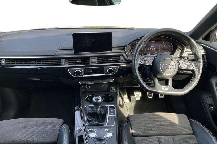7" Colour driver information system, Audi connect safety and service (e-call), Audi drive select, Audi parking system plus with front and rear sensors, Audi Pre sense collision avoidance, Bluetooth interface, Electric boot release, Electromechanical power steering, MMI SD card Navigation, Service interval indicator, Stop/start button, Voice control system, 54 litre fuel tank, 2 USB interfaces and Aux-In jack, DAB digital radio module, Acoustic windscreen, Air inlets in titanium black, Auto dimming rear view mirror, Automatic headlights + automatic windscreen wipers, Body colour bumpers, Body colour door handles, Chrome rolled exhaust, Chrome tailpipe finisher, Electric front windows, Electric rear windows, Headlight range control, High beam assistant, High gloss black door mirrors, High gloss black triangular aperture at rear door, LED daytime running lights, LED indicators in door mirrors, Privacy glass with front acoustic glazing, Radiator grille and frame in Titanium Black, Rain and light sensors, Rear diffuser in Twilight grey matt, S Style rear spoiler, Titanium black front and rear air intakes, Titanium black window surround, 3 spoke flat bottom high multi-function leather steering wheel, 3 zone climate control, 4 way electric lumbar support for driver and front passenger, 40/20/40 split folding rear seats with rear centre armrest, Black cloth headlining, Contrast stitching on seats, steering wheel and gear lever gaiter, Front centre armrest, Front headrests, Front/rear floor mats, Height and reach adjustable steering wheel with full size airbag, Illuminated door sill finishers, Isofix child seat preparation for front passenger/outer rear seats inc passenger airbag deactivation, Jack and tool kit, Luggage compartment carpet, Perforated leather gearknob, Rear headrests, Stainless steel foot rest, Stainless steel pedals, Sunvisors with vanity mirrors, Top tether anchor plate for isofix child seat, Non Smokers pack, S line exterior styling pack - A4 Saloon, 3 point seatbelts on all rear seats, Adaptive driver and front passenger airbags, Electromechanical parking brake, Electronic stabilisation control including ABS, ASR and EDL, Front head airbags, Front seatbelt pretensioners + load limiters, Front side airbags, Multi-Collision braking, Pop-up bonnet for pedestrian protection, Seatbelt warning, Traction control, Tyre pressure warning, Variable restraint system, Warning triangle and first aid kit, Anti theft alarm, Keyless start, Locking wheel bolts, Remote central locking, Thatcham category 1 alarm + immobiliser, MMI radio plus with smartphone interface, Piano black finish inlay, Tyre repair kit,