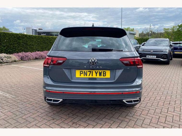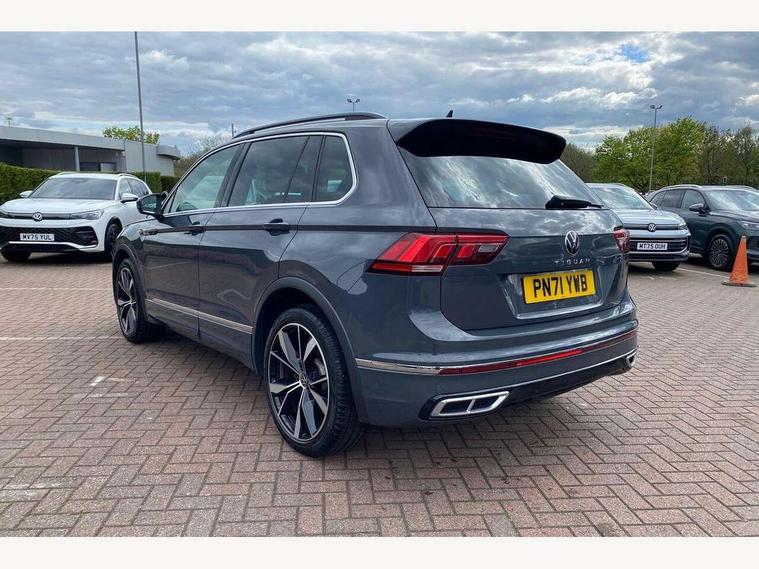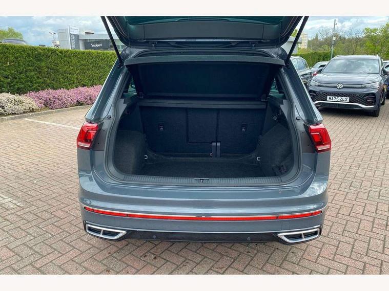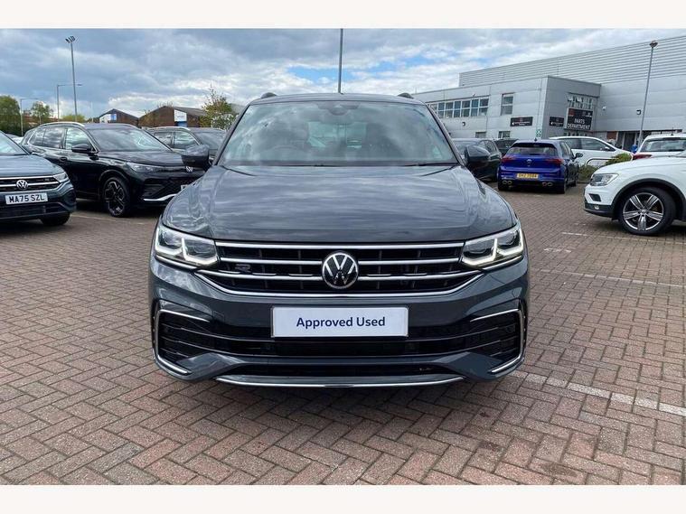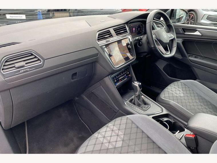 Adaptive cruise control ACC stop and go including speed limiter, App-Connect incl. App-Connect Wireless for Apple CarPlay and Android Auto, Bluetooth phone integration system, Digital Cockpit Pro - Active info display, Distance control assist, Driver alert system, Driver profile selection, Dynamic road sign display, eCall emergency call system, Electromechanical speed sensitive power steering, Engine start/stop button, Lane keeping system Lane Assist, Lights on warning, Multifunction front facing camera, Outside temperature display, Premium multifunction display with multi colour display, Remote control boot opening, Rev counter, Revision / skills operating concept travel assistant, Service interval indicator, Speed limit display, Start/stop system with regenerative braking, Trip computer, Warning sound and light for doors and tailgate open, Battery regeneration during braking, XDS electronic differential lock for improved traction and handling, 2 USB-C ports in the front, 1 USB-C charging socket on the center console in the rear, Diversity antenna for FM reception, Radio, SD card slot, Simultaneous pairing of 2 compatible mobile devices, SMS functionality - read, compose and send SMS messages using touch-screen display, Title and cover art display, Auto dimming interior rear view mirror, Automatic headlight control system, Black roof rails, Body colour door handles, Body coloured bumpers in R Line style, Body coloured door mirrors with integrated indicators, Chrome moldings on the side windows, Coming/leaving home lighting function, Dynamic headlight range control, Front and rear electric windows, Heated rear window, High level 3rd brake light, Laminated safety glass windshield, heat and sound insulating, LED rear number plate lights, License plate carrier in front and rear, Poor weather light and cornering light, Privacy glass for rear side windows and rear window, R Line body kit, R Line side sills, Rain sensor windscreen wipers, Rear exhaust tailpipe, Rear fog lamp, Rear spoiler in R style, Rear windscreen washer and wiper with interval delay, Side and rear windows in heat insulating glass, Third brake light, Trailer Stability Programme, Unique R Line badging, Windscreen wipers/ intermittent wipe + 4 position delay, 12V outlet in center console rear and in luggage compartment, 2 cup holders in front, 2 LED front reading lights, 2 LED rear reading lights, 3 rear headrests, 4 load lashing points, 40:20:40 split folding rear seats, Air Care Climatronic 3 zone automatic climate control with enhanced air filter and controls in the rear, Backrest release for left front seat, Black headlining, Brushed stainless steel pedals and footrest, Carpet mats in front and rear with decorative stitching in Gray, Climate control unit rear with touch function, Door and side trim panel in foam film, insert in leatherette, Front centre armrest, Front footwell illumination, Front seats head restraints (x-adjustment), Height adjustable front seats, Height/reach adjust steering wheel, Instrument lighting white adjustable panel illumination, Interior light with delay, Isofix Preparation 2 Rear child seats, Leather gear knob, Lockable cooled glovebox, Luggage compartment lighting, Luggage net, Rear bench seat asymetrically split folding, longitudinally movable and folding with load-through hatch and center armrest, Remote unlocking for rear seat backrest, Removable luggage cover, Safety optimised front head restraints, Sliding/reclining rear seats, Standard rear seat release, Storage compartment in driver's door, Storage compartment in passenger's door, Storage compartment in rear doors, Storage compartments in luggage area left and right, Storage tray on dashboard, Sun visors with illuminated vanity mirrors, Top front comfort seats, Variable boot floor, height adjustable and removable, Ambience pack - Tiguan R Line, Driver assistance pack plus - Tiguan DSG, 3 point seat belt for centre rear seats, 3 point seat belts with seat belt pretensioners for the outer rear seats, Active bonnet, Curtain airbags for front and rear passengers, Driver/Front Passenger airbags, Drivers knee airbag, Electronic parking brake with auto hold, Electronic Stability Control with driver steering recommendation, ABS, ASR, EDL, EDTC and trailer stabilization, Front assist with autonomous emergency braking (for Adaptive Cruise Control ACC up to 130 mph), Front disc brakes, Front passenger airbag deactivation, Front side airbags, Height adjustable front 3 point seatbelts + pretensioners, Hill hold control, Pedestrian monitoring system, Power assisted brakes, Proactive passenger protection system in combination with front assist, Rear disc brakes, Rigid safety cell with front and rear crumple zones, Two tone horn, Warning sound and light for front seat belts if unfastened, Anti theft alarm system with interior monitoring, backup horn and towing protection, Anti theft wheel bolts, Electronic engine immobiliser, 20" Misano black with diamond turned surface alloy wheels with Airstop tyres, Tool kit,