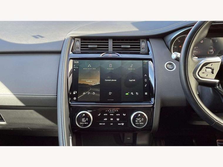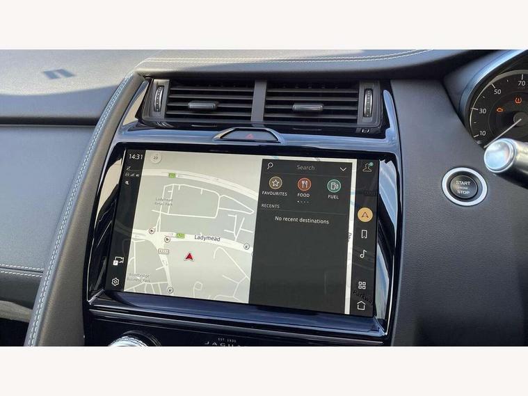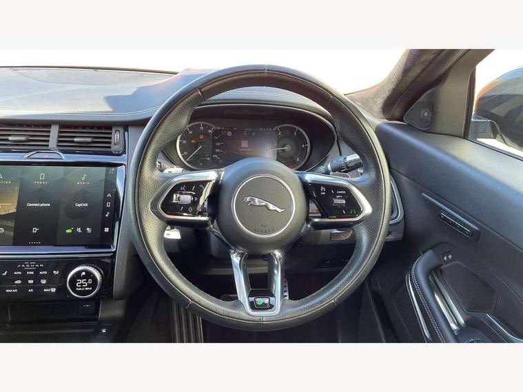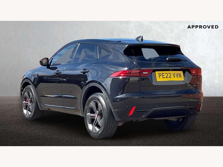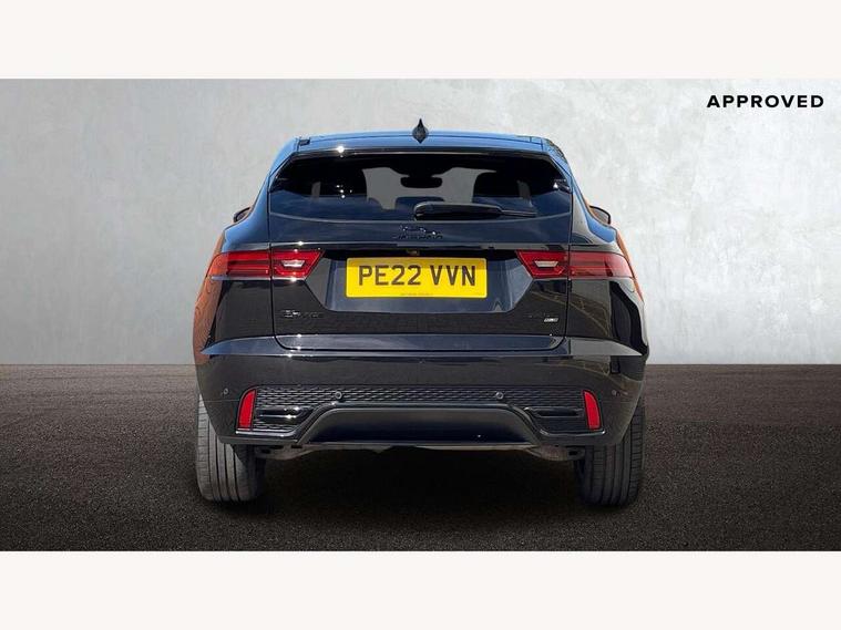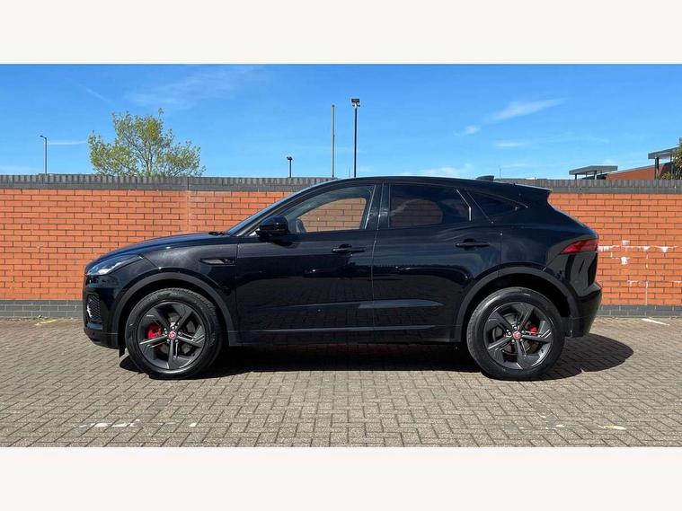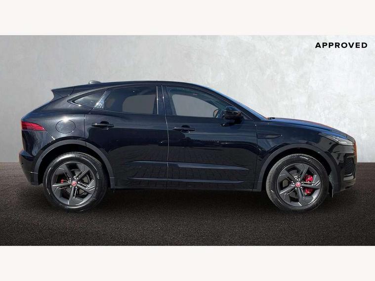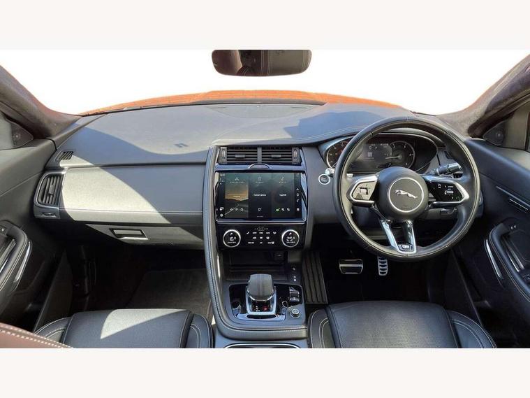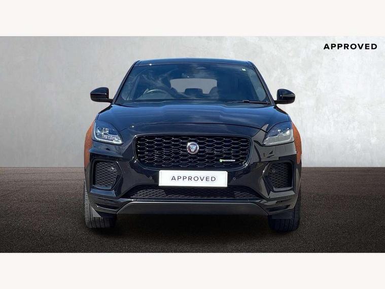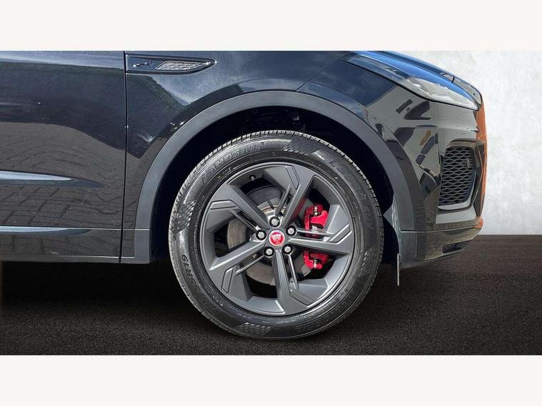 11.4" touchscreen with central ICP, 12.3" full digital instrument panel, Adaptive cruise control, Android Auto, Apple car play, Driver condition monitor, Eco driving style assistant, Electric power assisted steering, Emergency services call system, Front and rear parking aid, InControl remote, Jaguar drive control with adaptive surface response, Jaguar Toggle sport shift selector, Lane keep assist, Outside temperature gauge, Pivi pro connected infotainment system with smart settings and navigation pro, Push button start, Speed proportional steering, Traffic sign recognition with adaptive speed limiter, Trip computer, Voice control system, Configurable dynamics, Diesel particulate filter, Efficient Driveline, Passive suspension, AM/FM DVD MP3 radio, Bluetooth connectivity including audio streaming, DAB digital audio broadcast, Dynamic volume control, 3 flash lane change indicators, Approach Illumination, Auto high beam assist, Automatic headlights, Body colour door handles, Body colour upper spoiler, Body coloured side sills, Centre high-mounted stop light, Electric front/rear windows with one touch/auto up/down, Electric heated/power fold memory door mirrors with approach lights and auto dimming driver side, Embossed leaper for grained and windsor leather, Fixed panoramic glass sunroof, Heated washer jets, Heated windscreen, Jaguar script and leaper, LED tail lights, LED third brake light, Narvik black antenna pod and side pillar finisher, Narvik black door mirrors, Narvik black front and rear low bumpers, Narvik black lower side cladding, Privacy glass, R Dynamic badge, Rain sensor windscreen wipers, Rear fog lights, Rear side wing doors, Rear wash wiper, Satin black grained front outer grille, low grill mesh and low bumper valence, side fender vent mesh and finisher, rear tow eye cover and grille mesh, Twin exhaust tailpipe, Variable front intermittent wipers, 3 rear head restraints, 3 seat bench in 2nd row, 40:20:40 rear seat fold, Bright metal pedals, Carpet mats, Centre console with armrest, Enhanced ambient lighting, Hooks loadspace, ISOFIX on outer rear seats, Loadspace cover, Loadspace light, Loadspace storage net, Luggage tie-downs in loadspace, Manual height/reach adjust steering wheel, Multifunction steering wheel, Overhead lighting console, Passive front head restraints, Power sockets, R-Dynamic branded leather steering wheel, Rear air vents, Rear bench seats, Satin chrome gearshift paddles, Single front passenger seat, Sunvisors with illuminated vanity mirrors, Twin front cupholders, Two zone climate control, Exterior black pack - E-pace, 3x3 point rear seatbelts, ABS, All surface progress control (ASPC), Child locks on rear doors, Customer configurable autolock, DSC - Dynamic Stability Control, Electronic brake force distribution, Electronic parking brake, Emergency brake assist, Emergency braking, Front airbags with passenger seat occupant detector, Front and rear curtain airbags, Front and rear seatbelt reminder, Front passenger airbag deactivation, Front seatbelt pretensioners, Front side airbags, Height adjustable front seatbelts, Hill start assist, Low friction launch, Power child locks, Torque vectoring brake, Tyre pressure monitoring system, Intrusion sensor and alarm, Locking wheel nuts, Remote central locking,