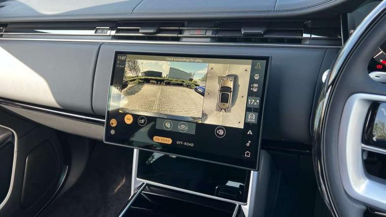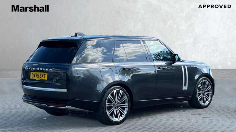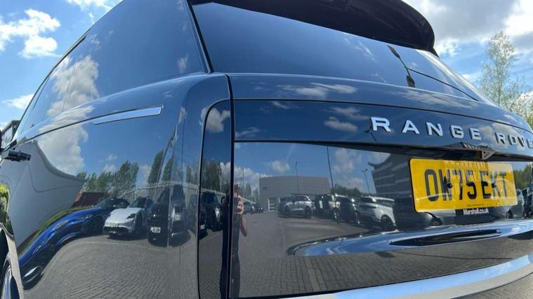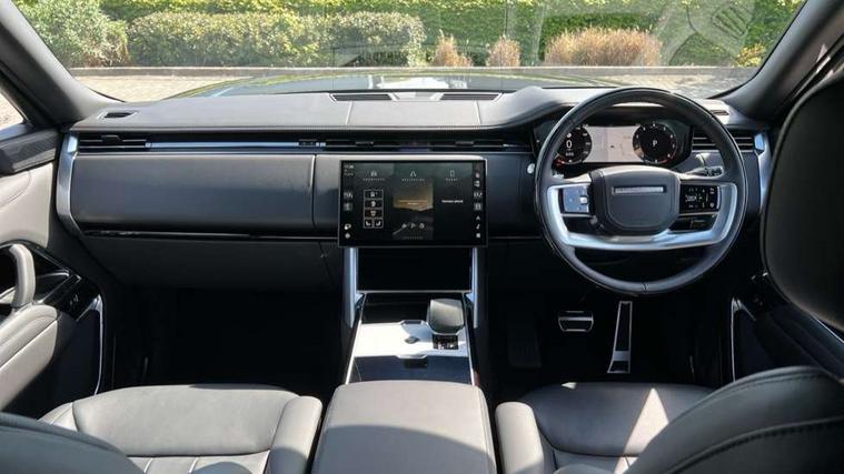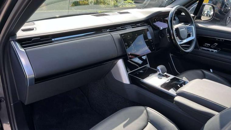 13.1" Touchscreen, 3D surround camera inc frwd traffic detection, vehicle clearance guidance, 3D view, clearsight ground view, manoevure light, 360 parking aid, wade sensing, Adaptive cruise control with steering assist, All Terrain Info Centre, All wheel steering, Blind spot assist, Bluetooth connectivity streaming, Configurable programs, Driver monitoring and response with driver facing camera & driver distraction monitor, Eco mode, Electric power assisted steering (EPAS), Emergency call service, Front and rear parking aid, Head up Display, Interactive driver display, Lane keep assist, Park assist, Powered gesture tailgate/boot lid, Rear collision monitor, Rear traffic monitor, Remote, Traffic sign recognition with adaptive speed limiter, Wi-Fi Enabled with data plan, Wireless Apple CarPlay/Android Auto, Wireless device charging, 8 speed automatic transmission, Active damper technology system, Adaptive dynamics, Adaptive off-road cruise control, All Wheel Drive (AWD), Automatic access height, Electronic active differential with torque vectoring by braking, Electronic air suspension with dynamic response pro, Terrain Response 2 Auto, Twin speed transfer box, Digital Audio Broadcast radio-DAB, Meridian 1600W signature sound system, Pivi pro including smart settings, Connected navigation pro, nuance speech, USB socket, Acoustic laminated windscreen, Animated directional indicators, Automatic headlights, Automatic levelling headlights, Centre high mounted stop light, ClearSight interior rear view mirror, Electric windows with one touch open/close and anti trap, Engine cover, Flush deployable exterior door handles, Front and rear recovery eyes, Front fog lights including cornering lamp, Headlamp power wash, Heated rear window, Heated washer jets, Illuminated metal treadplates with Autobiography script, Laminated front and rear side glass, LED tail lights, Power fold, auto-dimming, heated door mirrors with approach lights, Rain sensing windscreen wipers, Rear boot, Rear fog lights, Rear side wing doors, Side repeater indicators in mirror, Solar attenuating windscreen, Standard bonnet, Winter wiper park position, 3 seat bench in 2nd row, 30 Colours configurable cabin lighting with 4 lighting zones, Air quality sensor, Auto folding loadspace cover, Bright metal pedals, Cabin air purification pro, Customer configurable single point entry, Driver and passenger front seat armrests, Easy boot loading, Ebony Carpet, Electric rear side window sunblinds, Four zone climate control, Front and rear cupholders, Front and rear grab handles, Front centre console refrigerator compartment, Front head restraints, Heated steering wheel, Hook in load space, Loadspace light, Luggage tie down in loadspace, Multifunction steering wheel, Rear centre armrest, Rear head restraints, Rear ISOFIX, Satin chrome gearshift paddles, Single front passenger seat, Soft close doors, SV bespoke carpet mats, Twin blade sunvisors with Illuminated vanity mirrors, Upper and lower glovebox, Online pack with data plan - Range Rover, 3x3 point rear seat belts, Anti-lock braking system (ABS), Black brake calipers, Brake hold function, Cornering brake control (CBC), Customer configurable autolock, DSC - Dynamic Stability Control, Electronic brake force distribution, Electronic parking brake, Electronic traction control, Emergency braking, Front airbags with passenger seat occupant detector, Front side airbags, Hill descent control, Hill launch assist, Illuminated seat belt buckles, Low traction launch, Occupant protection assist, Power operated child locks, Roll stability control, Tyre pressure monitoring system (TPMS), Immobiliser, Intrusion sensor and alarm, Keyless entry, Locking wheel nuts, Remote central locking, Noble chrome controls,