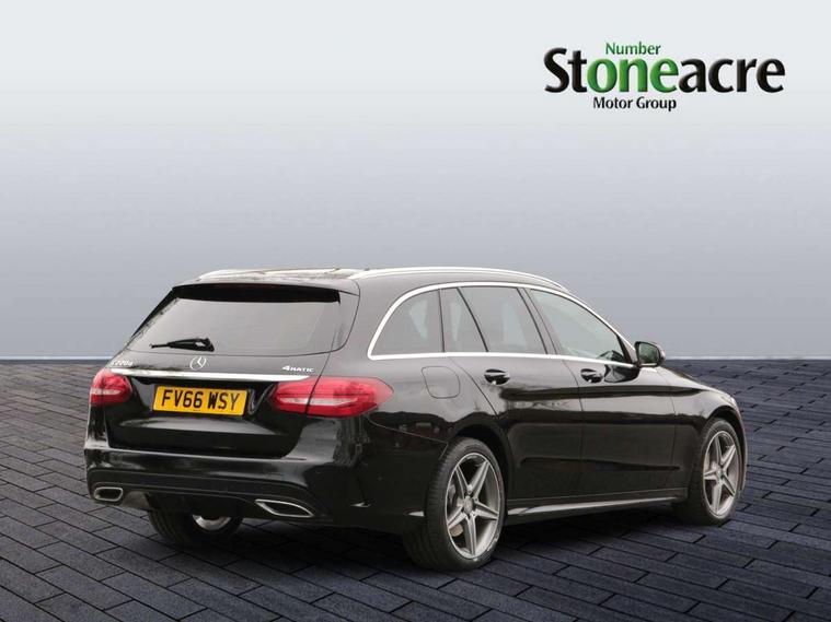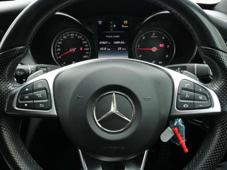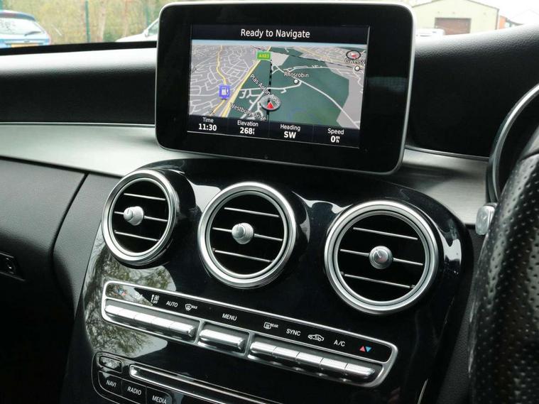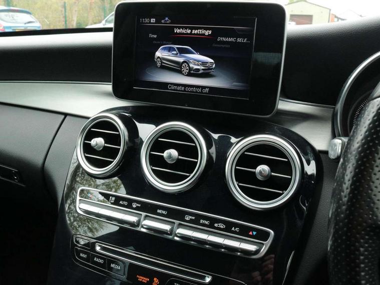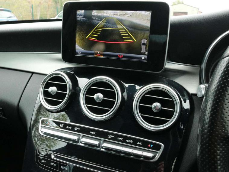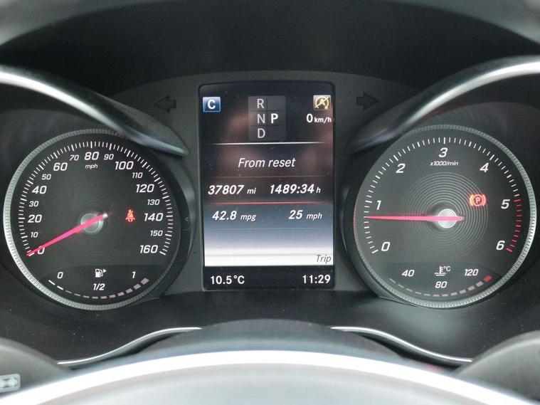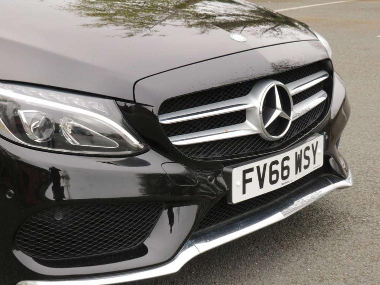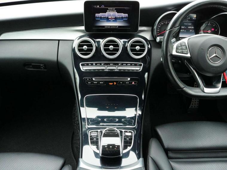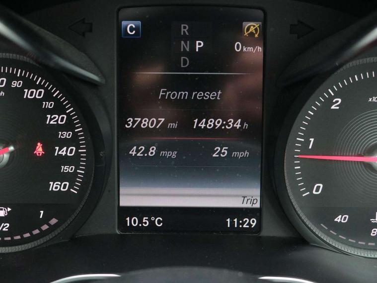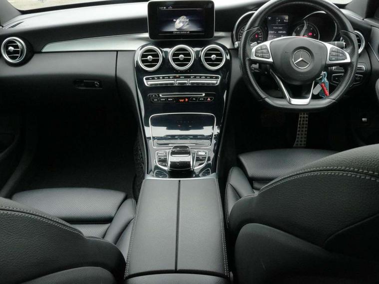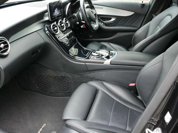 Active park assist with parktronic system, Analogue clock, Attention assist, Collision prevention assist, DYNAMIC SELECT with a choice of driving modes (ECO, Comfort, Sport, Sport+ and Individual), Garmin Map Pilot navigation system with SD card, touchpad and voice control, Multi function trip computer, Outside temperature gauge, Power opening/closing tailgate, Remote boot release, Service indicator (ASSYST PLUS), Speed sensitive steering, Diesel particulate filter, DAB Digital radio, Frontbass loudspeakers, Mercedes Audio 20 radio/single CD + telephone keypad, USB connection, Adaptive brake lights, AMG body styling, Body coloured bumpers, Electric windows one touch open/close, Electrically adjustable and heated door mirrors, Green tinted glass, Heated windscreen washers, LED daytime running lights, LED tail lights, Radiator grille with integral star and 2 louvres in matt iridium silver with chrome trim, Rain sensor windscreen wipers, Rear wiper, Twin exhaust pipes, 12V power socket in centre console, 2 cupholders in front centre console, 2 way rear head restraints, 3 spoke AMG steering wheel in Nappa leather, 4 way adjustable front head restraints, 40:20:40 split folding rear seats, Aluminium door trim, AMG floormats, AMG sports seats, Auto Mercedes-Benz child seat recognition sensor, Dual zone automatic climate control, Electric front seat height adjustment, Front centre armrest with storage compartment, Gearshift paddles, Heated front seats, Height/reach adjustable steering column, Illuminated glovebox, Load compartment cover, Lumbar support, Multifunction steering wheel, Rear top tether child seat ISOFIX attachment, Sports pedals with stainless steel surfaces and rubber studs, Sunvisors with illuminated vanity mirrors, Lighting pack - C class, Mirror pack - C Class, Seat comfort pack - C Class, Stowage space pack - C Class, 3 rear 3 point seatbelts, ABS with Brake Assist, Active bonnet, Adaptive brake system, Child proof door locks, Drivers knee airbag, Dual stage driver/passenger airbags, Electronic parking brake, ESP with ASR, Front passenger seat occupancy sensor, Front side airbags, Hill start assist, Tyre pressure monitoring system, Warning triangle and first aid kit, Window airbags, Alarm system/interior protection/immobiliser, Chrome surround in electric key, Remote central locking,