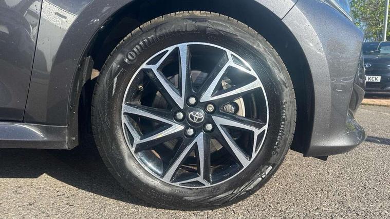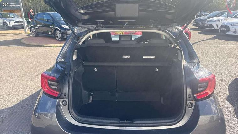Adaptive cruise control, Adjustable speed limit with speed warning, Bluetooth connectivity, Colour binocular inspired displays with digital speedometer, E-call, Electric power steering, Hybrid energy display, Multi information display switches on steering wheel, Reversing camera, Smartphone integration with Apple CarPlay and Android auto, Tailgate, Voice recognition, Vehicle Stability Control (VSC), 4 speakers, 8" Multimedia display touch screen, USB connection, Acoustic windscreen glass, Auto windscreen wipers, Automatic headlights, Body coloured door mirrors, Electric adjustable heated door mirrors, Follow me home headlights, Front auto power windows with anti jam protection, Full LED rear lights, LED daytime running lights, LED front fog lights, LED front light guide, LED Headlights, LED High mounted stop lamp, LED Indicators, LED rear light guide, Manual headlight levelling, Painted chequered front grille, Rain sensor, Rear auto power windows with anti jam protection, Rear privacy glass, Rear side wing doors, Rear spoiler, Rear wiper, Shark fin antenna, Turning signal integrated indicators in door mirrors, Variable front intermittent wipers, 3 adjustable rear headrests, 3 seat bench in 2nd row, 3 spoke leather steering wheel, 60/40 split folding rear seat, Active headrests, Adjustable boot height, Auto air conditioning, Coat hooks in rear grab handles, Cup holders (2 front & door), Data Communication Module (DCM) connected services, Fabric upholstery, Front armrest, Glovebox, Grey roof lining, Height adjustable driver's seat, Isofix seat fixing, Leather gearshift, Pollen filter, Shopping bag hooks, Single front passenger seat, Tilt/telescopic steering column, 3 point seatbelts on all rear seats, ABS+EBD+Brake assist, Electronic parking brake, Emergency brake light system (EBS), Front passenger airbag on/off switch, Front seatbelt reminder, Hill start assist control (HAC), Rear child proof door locks, Rear seat belt reminder, Supplemental Restraint System (SRS) 8 airbags: Driver & passenger's airbags, dual side curtain airbags, side impact airbags, front centre airbag, Toyota Safety Sense 2, Precollison + Night time Pedestrian & Cyclist Detection, Lane Trace Assist, Auto High Beam, Intelligent ACC & Road Sign Assist, Tyre pressure warning system, 2x Master key, Alarm/immobiliser, Remote powered central double locking doors, Soft touch instrument panel, Space saver spare wheel,