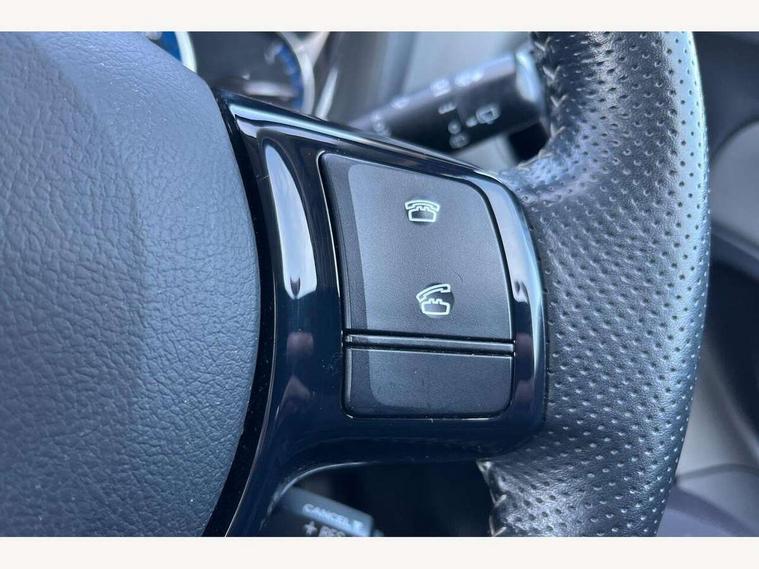 Bluetooth system, Cruise control, Electric boot release, External temperature gauge, Fuel indicator with low level warning, Lights on warning, Push button starter, Rear view camera, Remote fuel flap release, Speed sensitive power steering, Tachometer, Trip computer, 6 speakers, Auxiliary input socket, DAB Digital radio, MP3 player, Radio, Steering wheel mounted audio controls, Touch screen audio system, USB connection, 2 speed front wipers + intermittent wipe, Body colour heated door mirrors, Chrome rear garnish, Colour keyed bumpers, Colour keyed door handles, Drivers window one touch up/down, Electric front windows, Electrically adjustable door mirrors, Follow me home headlights, Front fog lights, Green tinted glass, Headlamp levelling, Heated rear windscreen, LED daytime running lights, LED rear lights, Piano black front grille, Privacy glass, Projector headlamps, Rear spoiler, Rear wiper, Satin chrome fog light surround, Satin chrome front grille surround, 12V Accessory socket, 60/40 split folding rear seat, Boot light, Clean air filter, Driver seat height adjust, Driver's glovebox with lid, Driver/passenger vanity mirrors with covers, Dual zone climate control, Front cupholders x 2, Front map reading lights, Front seats with lumbar support, Gioco cloth upholstery, Height adjustable front head restraints, Height adjustable rear seat head restraints (x3), Interior silver door handles, Isofix system on outer rear seats, Leather gear knob, Leather steering wheel, Rear cupholder, Removable rear parcel shelf, Tilt/telescopic steering column, 3 point seatbelts on all rear seats, ABS+EBD+Brake assist, Collapsible pedal support, Curtain airbags, Door open warning, Driver and passenger airbags, Drivers knee airbag, Front side airbags, Height adjustable front seatbelts with pre-tensioners and load limiters, Hill start assist control (HAC), Passenger airbag deactivate switch, Rear child proof door locks, Seatbelt warning lamp and buzzer, Tyre pressure monitoring system, Vehicle stability control VSC + traction control, Ventilated front disc brakes, Engine immobiliser, Remote central locking, Instrument panel in Dark grey, 16" alloy wheels, Space saver spare wheel,