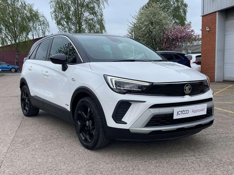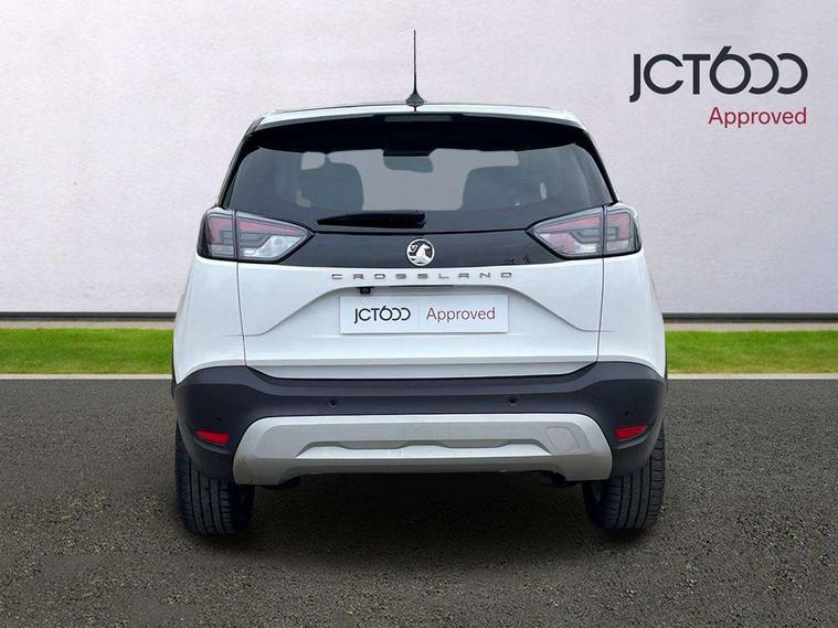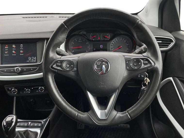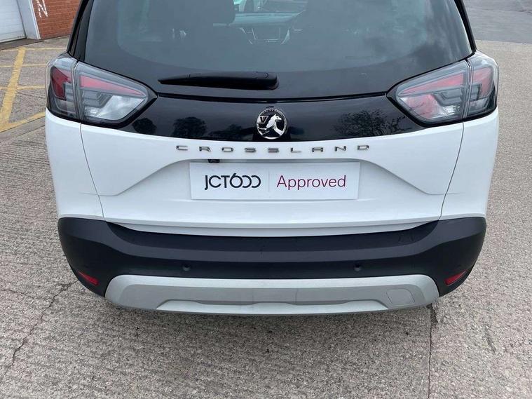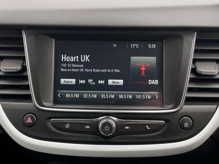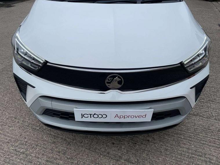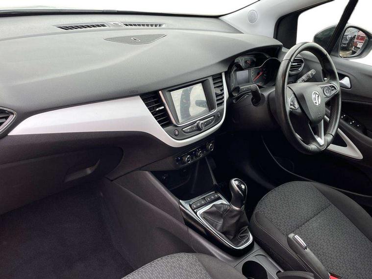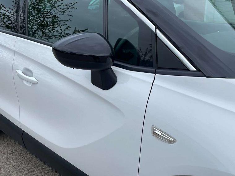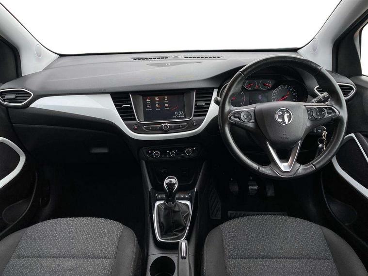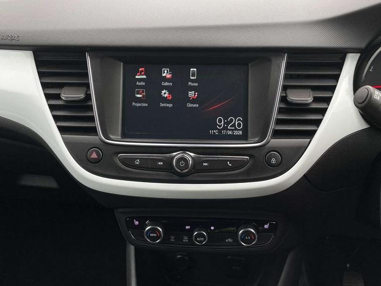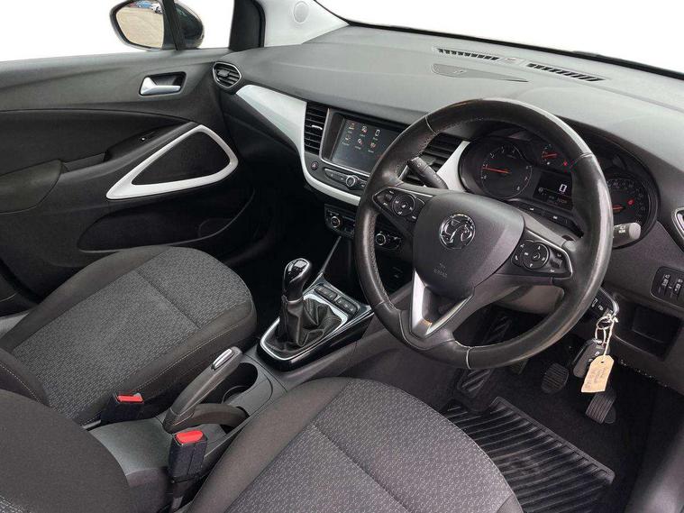 Audible lights on warning, Bluetooth connectivity, Cruise control + speed limiter, Digital clock with automatic RDS time adjustment, eCall emergency call system, Instrumentation - Speedometer, rev counter, low fuel gauge warning light + water temperature gauge warning light, shift up/down indicate light, Lane departure warning system, Multi function trip computer, Multimedia with 7" colour touchscreen, AM/FM, Bluetooth audio streaming, Bluetooth mobile phone portal, apple CarPlay/Android Auto + 6 speakers, Outside temperature display with ice warning, Refridgerant low indicator, Segmented instrument display, Service interval indicator, Speed sensitive power steering, Speed sign recognition, Front wheel drive, DAB Digital radio, Steering wheel mounted audio/phone/cruise controls, USB port, 2 speed wipers/wash wipe/intermittent wipe, 3rd brake light, Automatic anti dazzle rear view mirror, Automatic lighting control, Black radiator grille with chrome bar, Black side glass molding, Body colour door handles, Body colour front and rear bumpers, Dark tinted rear side windows + tailgate window, Electrically adjustable and heated door mirrors, Front power windows with express up/down and anti-pinch function, Hazard warning lights, Headlamp levelling, Headlamps for left side traffic, Heated rear window, Integrated tailgate spoiler, Intermittent rear wash/wipe, LED daytime running lights, LED Headlights, LED side repeat indicators, Manual headlamp level control, Rain sensitive windscreen wipers, Rear power windows with express up/down and anti-pinch function, Rear side wing doors, Rear wing door, Reversing light, Side window demist vents, Silver skid plates, Solar heat absorbing windscreen and windows, Vauxhall door sill plate cover, Welcome lighting, Windscreen demist vents, 12v power outlet - front, 2 way adjustable front passenger seat, 2 way front passive headrests, 3 rear seats, 3 spoke flat bottomed leather covered steering wheel with bezel decoration, 4 way manual adjustable driver seats with height, reach, backrest and head restraint, 60/40 split folding rear seat backrest, Air recirculation facility, Ambient lighting, Anti submarining ramps in front seats, Cabin particulate filter - removes dust, airborne particles and pollen, Centre console, Courtesy Light, Driver and front passenger illuminated vanity mirrors with flip up covers, Driver's seat armrest, Dual zone electronic climate control, Fade up/fade down on interior lighting, Four adjustable facia vents, Front door pockets with bottle holders, Front map reading lights, Front passenger seat, Fully carpeted luggage area, Glovebox with lid, Height adjustable front/rear head restraints, Illuminated load area, Interior courtesy light operated by all doors, Isofix system on outer rear seats, Jet black fabric side bolsters, Luggage compartment cover, Multi-speed fan with Illuminated control, Open storage compartment in centre console, Passenger assist handles, Reach + rake adjustable steering column, Rear door pockets with bottle holders, Rear floor ventilation ducts, Rear reading lights, Satin chrome effect bezel on steering wheel, Sparkle cloth/vinyl upholstery, Storage pockets on front seat backs, Two drinks holders in centre console, Rear view camera pack - Crossland, Winter pack - Crossland, 3x3 point rear seatbelts, 6 airbags - Driver and co-driver front, front side, head curtain roof airbags, front and rear row coverage airbags, ABS, Child locks on rear doors, CSC - Cornering stability control, Deactivate switch for side impact airbags, Deformation zones front and rear, Dual seatbelt pretensioners on front seats, EBD - Electronic brakeforce distribution, Energy absorbing steering column, Engine drag torque control, ESP + traction control, Front and rear seatbelt unfastened audible warning and warning light, Front side impact airbag, Hill hold and start system, Hydraulic Brake Assist (HBA), Hydraulic brake boost, Inertia reel lap and diagonal seatbelts for all seats, Passenger airbag deactivate switch, Rear seat belt pretensioners, Reinforced passenger safety cell, Seatbelt load limiter, Side impact protection beams, Smart seatbelt reminder for front and rear seats, Tyre pressure monitoring system, Electronically protected audio equipment, Engine immobiliser, Folding key, Locking wheel nuts, Remote central deadlocking, Remote control central locking activation switch on driver door, Remote control central locking operates on doors, tailgate and fuel filler flap, Remote security alarm system, Visible vehicle identification number, Black facia with silver trim insert, Black trim inserts on front doors, Cluster black with printed rings, 17" Four twin spoke design 8 alloys in black,