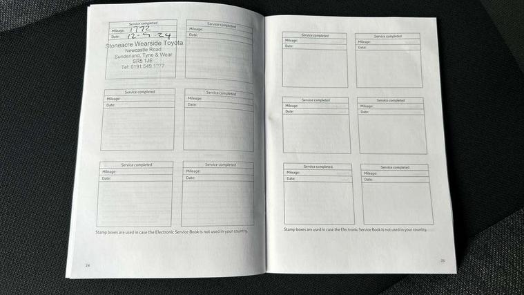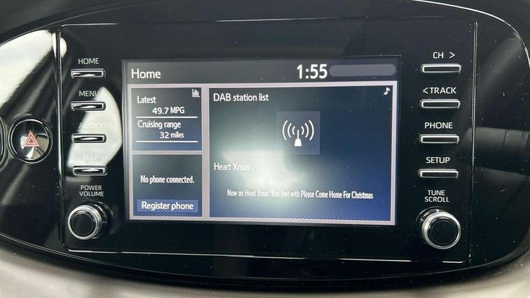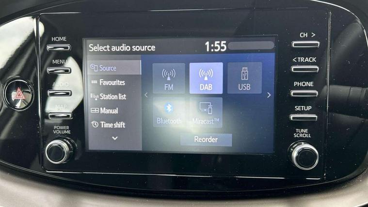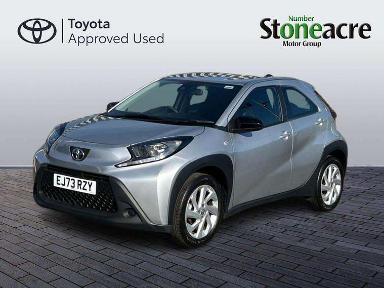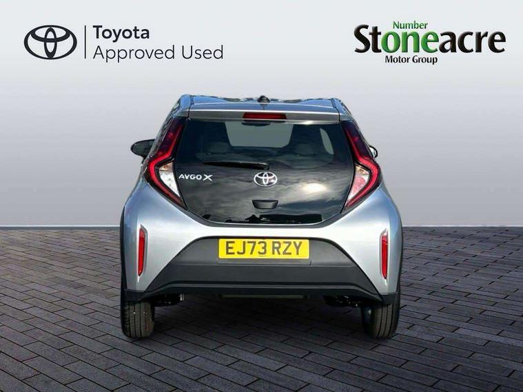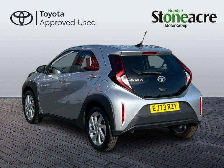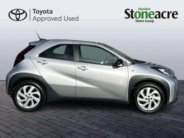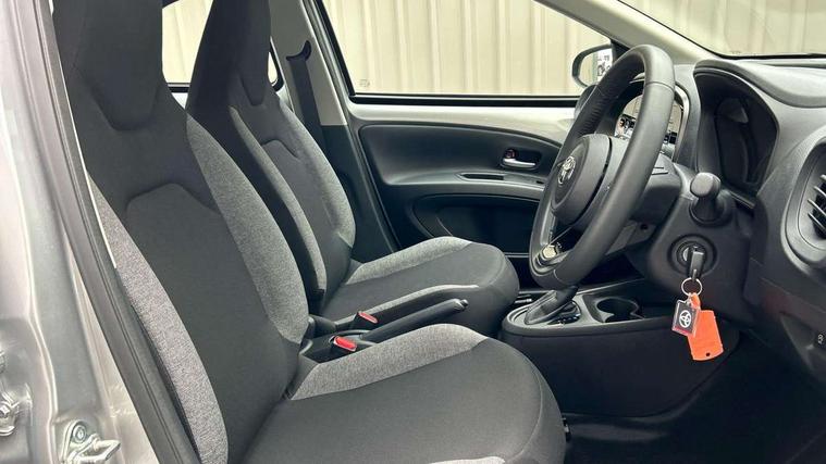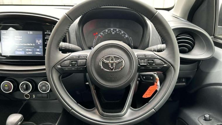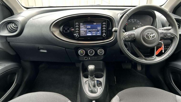 4.2" TFT colour screen, Adjustable speed limiter, Analogue speedometer, Bluetooth connectivity, Digital tachograph, Driver attention alert system, eCall emergency call system, ECO-driving indicator, Electric power steering, Intersection turn assist, Key reminder warning, Noise reduction kit, Pre collision system with emergency steering assist, Reversing camera with static guide lines, Smart phone integration with Apple car play/Android Auto, Speed limit display, Start and stop, Vehicle Stability Control (VSC), 4 speakers, 9" HD multimedia display touch screen with Toyota smart connect, DAB digital audio broadcast, USB connector, Auto headlights, Automatic headlights cut-off, Bicycle towing hook, Black lower front grille, Black rear bumper, Black side protection mouldings, Black upper front grille, Black wheel arch mouldings, Body colour door handles, Body coloured front bumper, Boot door scuff plate, Electric heated door mirrors, Follow me home headlights, Front power windows, Gloss black door mirrors, Headlight cut-off reminder, LED daytime running lights, LED front light guide, LED High mounted stop lamp, Manual day/night rear view mirror, Manual headlight levelling, Pagoda roof, Power adjustable door mirrors, Power back door, Projector halogen headlights, Rain sensor, Rear combination lights LED bulb type, Rear side wing doors, Rear windscreen defogger, Rear windscreen wiper, Short antenna, Variable intermittent windscreen wipers, 12v power outlet - front, 2 seat bench in 2nd row, 3 spoke leather steering wheel, 50/50 split folding rear seat, Adhesive roof headlining, Adjustable speed limiter switch on steering wheel, Audio and telephone switches on steering wheel, Black insert on steering wheel, Boot light, Centre room light, Chrome interior door handles, Chrome surround on air conditioning buttons, Clean air filter, Fabric upholstery, Floor mats, Front and rear cup holders, Front head rest deco art, Front head restraints, Gear shift indicator, Height adjustable driver seat, Intelligent adaptive cruise control switch on steering wheel, ISOFIX child restraint system on rear seats, Lane departure alert switch on steering wheel, Leather gearshift knob, Light grey roof lining, Manual air conditioning, Manual tilt steering wheel, Manually reclining and sliding driver seat, Manually reclining and sliding front passenger seat, Multimedia switches on steering wheel, Pollen filter, Rear door pockets, Rear head restraints, Resin console box storage, Satin silver insert on gear shift knob, Silver stitching on gear shift knob, Single compartment glovebox with lights, Single front passenger seat, Soft tonneau cover, Sun visors with mirror on driver and passenger side, Voice recognition switch on steering wheel, Toyota safety sense pack - Aygo X, Anti lock braking system + Electronic brake force distribution, Child safety door lock, Emergency brake light signal (EBS), Hill start assist control (HAC), Passenger airbag on/off switch, Seat belt reminder for front and rear seats, Supplement restraints system (SRS) - 6 airbags, Traction control, Tyre pressure warning system, Immobiliser, Remote power door locks, Black air vent surround, Black wheel centre caps, Tyre repair kit,