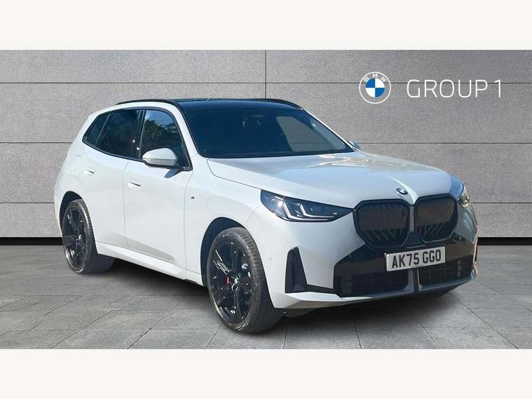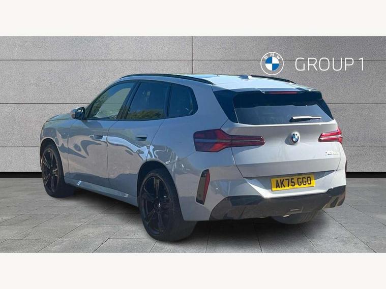 Active guard professional, Attentiveness assist, Automatic operation of tailgate, BMW ConnectedDrive online services, BMW iDrive, BMW Live cockpit plus, BMW Online services, BMW Teleservices, Brake pad wear indicator, Condition based service, Drive off assistant, Flat tyre monitor, Language version English, My Mode - Personal, Efficient, Sport, Relax, Expressive, Parking assistant, Reversing assist camera, Servotronic system, Variable sport steering, Dynamic stability control, Multiple control arm rear axle, Steptronic transmission with gearshift paddles, Two-joint strut-type front axle with tension strut, DAB tuner, Personal eSim, 4 tailpipe tips, B-pillar trim panel in black high-gloss, BMW badge on front and rear, BMW M-specific front/rear bumpers and side sills, BMW M-specific radiator grille with horizontal bars in Dark Silver and M logo, Body colour mirror caps, Daytime running lights, Door handles flush to the surface with lock barrel on driver's side is illuminated and in vehicle colour, Dynamic brake lights, Electric adjustable and heated door mirrors, Electric window trap release and convenient opening/closing feature, Headlight beam throw control, Heated rear window, Heated windscreen washer jets, High beam assistant, LED 3rd brake light, LED rear lights, LED tail lights, LED turning indicators, Locking of the doors, M high-gloss shadowline, M-specific Exterior mirrors, Mirror base and mirror blade in satinised aluminium, Mirror triangle in black high-gloss, Rain sensor with automatic headlight activation, Rear side wing doors, Rear wiper, Reversing light, Side window frame in black high-gloss, Windscreen wipers, 12v power socket in front centre console and luggage compartment, 2 x USB Type C ports for charging and data transmission (front centre console) and 2 x USB Type C ports for charging (rear centre console), 3 rear headrests, 3 seat bench in 2nd row, 3 zone automatic air conditioning, 40:20:40 split folding rear seat with loading system, Ambient lighting, Anthracite headlining, Electric adjustable seats with memory function, Floor mats in velour, Footrest and pedals in black plastic, Four grab handles integrated in roof lining, Front armrest with integrated control panel, Front centre console trim in black high-gloss, Front head restraints, Front passenger seat, Front sports seats, Glove compartment, i-Size / ISOFIX attachment points on both outer rear seats, with covers in black, Interior door handles in dark chrome, Luggage compartment separating net, M sport leather steering wheel, Multifunction steering wheel, Rear side armrests integrated into door trim, Selector lever with toggle operation, Steering column adjustment, Sun visors with illuminated vanity mirrors, Three upper retaining strap clips integrated into the rear panels of the seat backrests, Through loading system, Two front cupholders and two in the rear center armrest, Wireless charging tray, Connected pro package - X3, Driving assistant package - X3, Driving assistant plus pack - X3, Interior and exterior mirror package - X3, 3 point seatbelts, Airbag deployment is controlled with respect to the intensity and scope, Anti-lock braking system (ABS), Automatic hold function, BMW emergency call, Brake assist, Brake drying, Brake energy regeneration, Braking readiness, Central airbag, Child locks on rear doors, Cornering brake control (CBC), Crash Sensor - activation of central locking release, hazard warning light and interior lighting, Driver and front passenger front and side airbags, Dynamic brake control, Electromechanical parking brake, Front and rear disc brakes, Head airbags, Integrated braking system, Post Crash Collision Warning with braking function, Trailer stability control, Tyre pressure sensor, Warning triangle, Alarm system, Closing system with central locking, Comfort access system with BMW digital key plus, Locking wheel bolts, Start/stop button with keyless motor start with acoustic drive, Tyre repair kit plus,