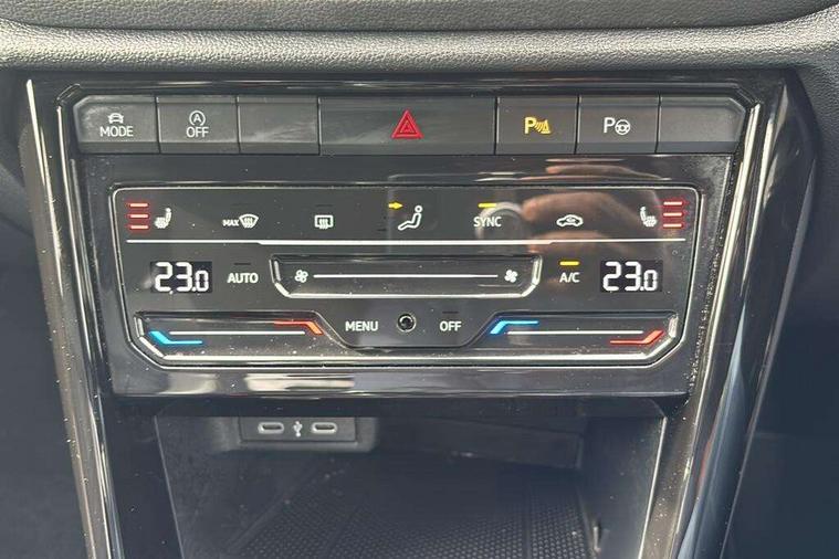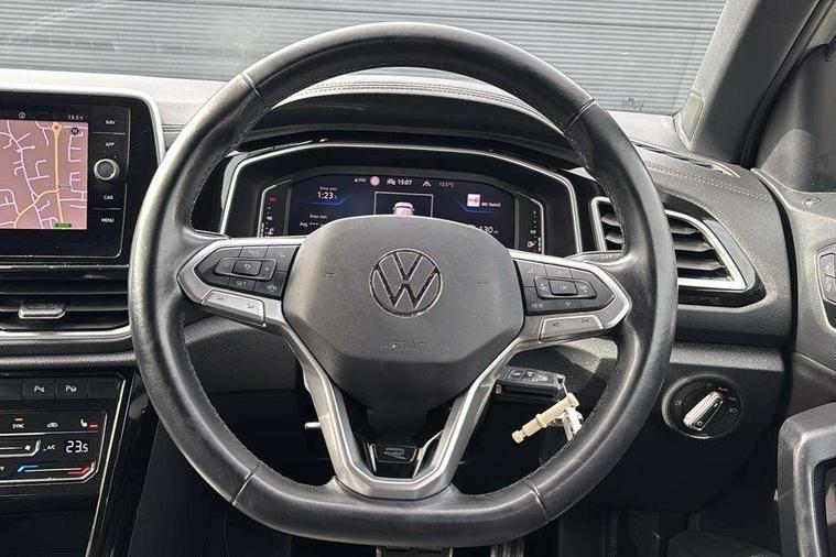 10.25" Digital cockpit pro, Bluetooth mobile phone interface, Driver alert system with fatigue detection, Driver tips and journey analysis, Emergency call service, Lane keeping system Lane Assist, Modified key software - reduce switch off time for key status change to Long no motion, Online services, Park assist including front and rear parking sensors, Service interval indicator, Tailgate/trunk lid release from outside, Think blue trainer driver tips and journey analysis, Warning sound and light for front seatbelts unfastened, Wireless app connect, Battery regeneration during braking, Start/stop function with battery regeneration, Diversity antenna for FM reception, Music playback - MP3, WMA and AAC files, Premium USB cable in choice of either Apple or Android smartphone compatibility, SD card slot, Simultaneous pairing of 2 compatible mobile devices, Title and cover art display, We Connect and We Connect Plus functionality, 3rd brake light, Auto dimming interior rear view mirror, Automatic hazard lights activation under emergency braking, Automatic headlight control with LED separate daytime running lights with coming/leaving home function, Extended roof spoiler, Exterior mirrors aspherical on driver side, convex on front passenger side, External USB type C socket and charging sockets, Front windscreen wiper with intermittent wipe and 4 position delay, Heated rear window, LED rear combination lamps, LED rear number plate lights, LED tail lamp rear comination lamps, Power windows with comfort operation and circuit breaker, R-Line design body coloured bumpers, Rain sensor, Rear exhaust tailpipe, Rear fog light on one side and reversing lights on both sides, Rear side wing doors, Rear wash/wipe with intermittent wipe setting, Remote electrically foldable door mirrors, puddle lights and reverse activated passenger's door mirror, 12V power socket in centre console, 3 rear head restraints, 3 seat bench in 2nd row, 4 load lashing points in luggage compartment, Air care climatronic air conditoning system with active combination filter and 2-zone temperature control, Black roof lining, Chrome plated radiator grille inserts, air vent surrounds and light switch surrounds, Door and side trim panel with leatherette insert, Drawer under drivers seat, Front + rear carpet mats, Front centre armrest, Front cupholders x 2, Front footwell illumination, Front reading light, Front scuff plates with R logo, Instrument lighting, white adjustable panel illumination, Interior ambient lighting and surround lighting, Interior light delay, Isofix child seat preparation, Leather gearshift handle, Load-through provision with cup holder when folded down ('Unsplit rear seat bench, split folding backrest, with centre armrest), Luggage compartment lighting, Single front passenger seat, Stainless steel pedals, Storage compartment in left and right luggage area, Storage compartment in rear doors, Storage compartments in driver and front passenger doors, Sunvisors with illuminated vanity mirrors, Variable boot floor, height adjustable and removable, Driver assistance pack without proactive passenger protection - T-Roc, 3 point height adj front seatbelts + pretensioners, 3 point seatbelts in outer rear with ECE label, ABS, Child locks on rear doors, Driver and front passenger airbag with front passenger airbag deactivation, Driver and front passenger safety-optimised head restraints, Drivers seatbelt reminder, Electronic parking brake, Electronic Stability Control (ESC) inc EDL (Electronic Differential Lock) and ASR (Traction Control), Front and rear passengers curtain airbag system including front side airbags, Front assist with city emergency braking and pedestrian monitoring, Front seat side impact airbags, Hill start assist, Predictive pedestrian protection, Rear disc brakes, Single tone horn, Tyre pressure loss indicator, Volkswagen roadside assistance, Anti-theft alarm system with interior monitoring, backup horn, and towing protection, Remote central locking with SAFELOCK, radio remote control with 2 remote control folding keys, Trims for alloy wheels,