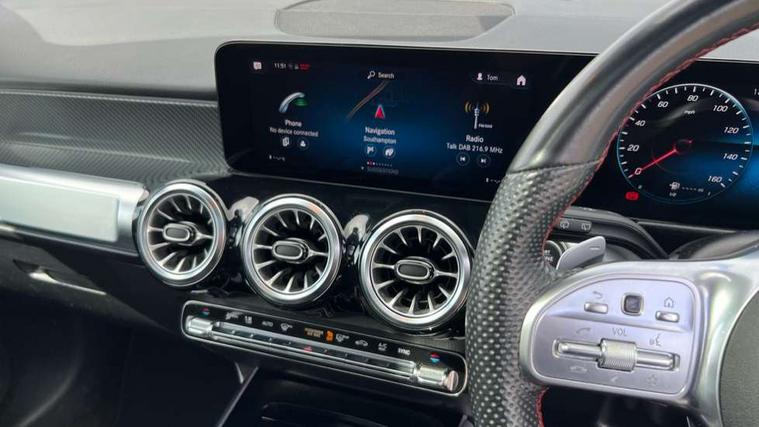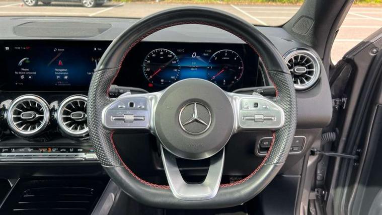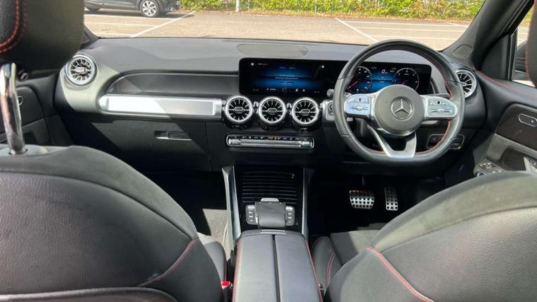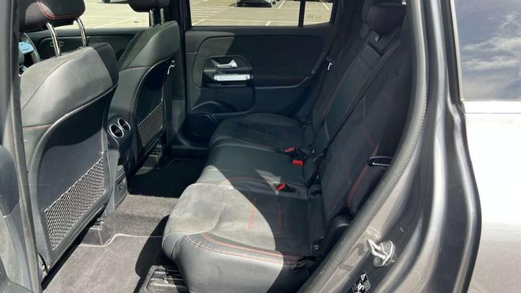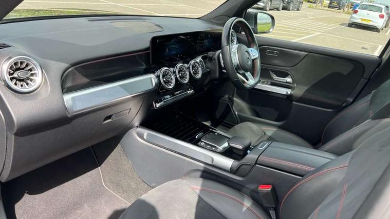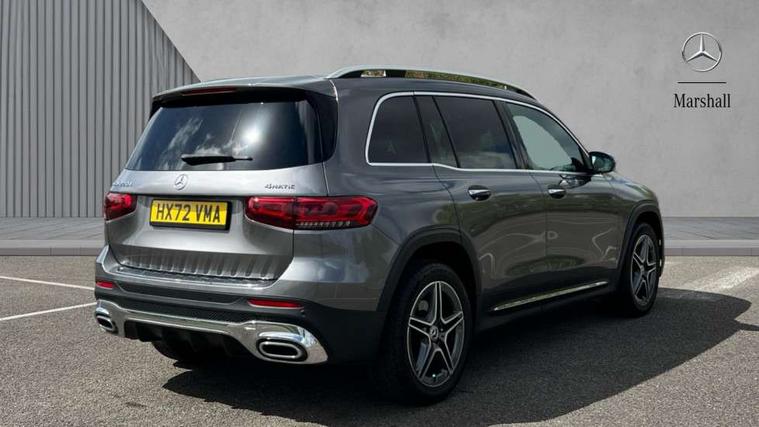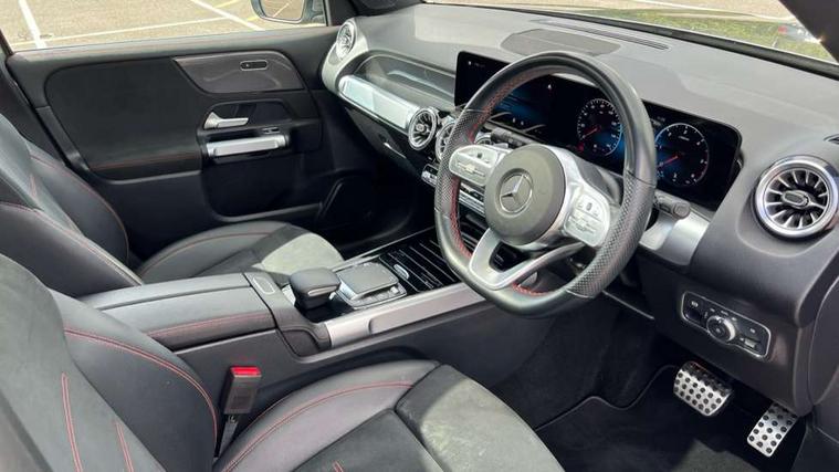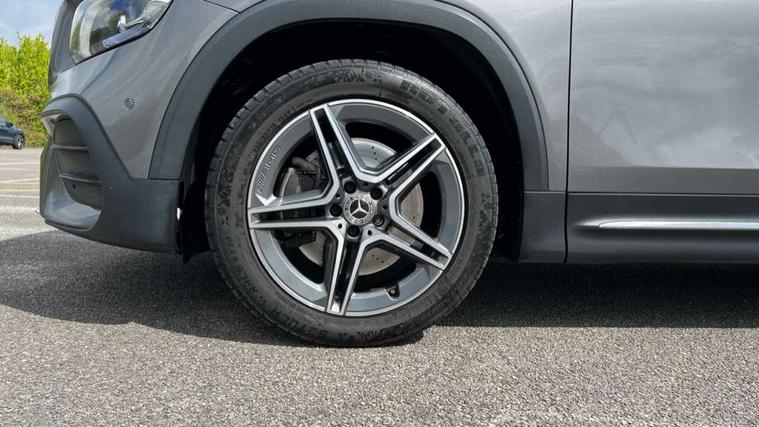 10.25" Digital instrument cluster display screen, 10.25" Digital media screen display, Attention assist - Monitors steering behaviour and long journey fatigue, Brake pad wear indicator warning light, Car wash mode, DYNAMIC SELECT with a choice of driving modes (ECO, Comfort, Sport and Individual), ECO start/stop function, Fluid level warning indicator for fuel, oil, coolant and washer fluid, Hard disk navigation, Hey Mercedes Voice activation, Lamp failure indicator, Mercedes me connect including emergency call system, accident recovery, breakdown and maintenance management, Mercedes me remote services, Outside temperature gauge, Owners manual and service booklet in English, Parameter steering system, Pre-installation of private car share, Radio aerial integrated into front and rear windshields, Service indicator (ASSYST), Smartphone integration with Apple CarPlay and Android auto, Traffic sign assist, Trip computer in multifunction display with current consumption indicator, 23.8 litre AdBlue fuel tank, Comfort suspension, Rear axle multi-link, DAB digital radio tuner, MBUX multimedia system with DAB digital radio and touchpad including satellite navigation, Mercedes Benz sound system (225 W) with 10 speakers, 1 central speaker, speakers on doors, a tweeter on door, one sub woofer + boost amplifier, Pre installation for Mercedes Benz Link, USB (type C) port in front stowage compartment, USB (type C) ports (2) in stowage compartment, Adaptive brake lights, Aerial for GPS, AMG bodystyling door panels black grained with chrome plated inserts, AMG bodystyling front apron with chrome splitter, AMG bodystyling rear apron with diffuser optics and chrome trim element, AMG specific front and rear bumper including underride guard in high gloss chrome, Auto headlights, Beltline strips and weather strip in chrome, Body coloured door handles with chrome insert for keyless entry, Body coloured door mirror caps, Electric adjustable and heated door mirrors with integrated LED side indicators, Electric panoramic glass sunroof, Exhaust system with dual flow exhaust pipes (non-functional), Front and rear electric windows, Headlamp assist automatic headlamp activation, Heated glass rear windscreen + timer control, High level LED third brake light, Interior mirror with black reading lamps and frameless, LED daytime running lights, Multibeam LED headlamps and tail lamp with adaptive high beam assist, Polished aluminium roof rails, Privacy glass with dark tinting on rear side windows and rear window, Radiator grille with pins in chrome and single louvre with chrome insert, Rain sensor windscreen wipers, Rear fog lamp, Rear side wing doors, Rear wiper, Two visible tailpipe trim elements exhaust, 3 seat bench in 2nd row, 3 spoke multifunction sport steering wheel in nappa leather, Air conditioning - Two zone thermotronic luxury automatic climate control with display, AMG sports pedals with brushed stainless steel surfaces and black rubber studs, Artico man-made leather/Microfibre Dinamica upholstery with red contrast stitching, Automatic child seat recognition sensor, Black floor mats with AMG lettering, Black roof lining, Fore/aft adjustment rear seats, Freight packaging with tie-down hooks, Front centre armrest with stowage, Front door sills with illuminated changeable cover, Front passenger grab handle with brushed side silver chrome, Front sports seats with adjustable head restraints, Galvanished gear shift paddles on steering wheel, Heated front seats, Height/reach adjustable steering column, Interior lighting - 64 colour Ambient lighting, Luggage net on driver/front passenger seat backrest, Rear armrest with two integral cup holders for drinks, Rear seat easy entry, Single front passenger seat, Stowage compartment in centre console, Stowage compartment with retractable cover, Third row of seats for two people on rear seat, Touchpad on center console, Twin front cup holders, Two outer rear seat isofix and top tether child seat fixing points, Interior lighting with light and sight pack - GLB, Keyless go pack - GLB, Mirror pack - GLB, Off-road engineering package - GLB, Parking pack - GLB, 3 rear 3 point seatbelts, Active bonnet pedestrain safety measure which detects an impact and raises bonnet by 65mm, Adaptive brake assist with hold function and hill start assist, Airbags - kneebag for driver, Anti-lock braking system (ABS) with brake assist, Childproof locks manually operated for rear doors and electrically operated for rear power windows, Crash responsive emergency lighting, Curve dynamic assist, Driver and front passenger head and sidebags, Driver and front passenger windowbags, Dual stage driver and front passenger airbags, Electronic parking brake, Electronic stability programme with acceleration skid control, Front and rear seatbelt reminder, Front brake callipers with Mercedes Benz lettering, Front passenger seat occupancy sensor, Perforated and ventilated front brake discs, Tyre pressure monitoring system, Warning triangle and first aid kit, Remote central locking and crash sensor with emergency opening function, Thatcham category 1 alarm system with immobiliser and interior protection, Urban guard vehicle protection - Anti theft alarm system, tow away protection with visual and acoustic warning and alarm siren, Vehicle key with decorative surround in chrome, Black air vents with chrome surround, Carbon structure trim, 19" AMG 5 twin spoke light alloy wheels painted in tantalite grey with high sheen finish, Summer tyres, Tirefit tyre sealant kit,