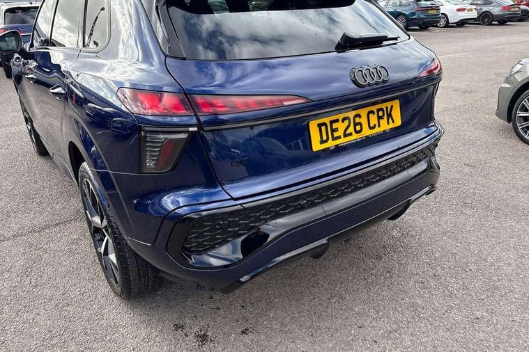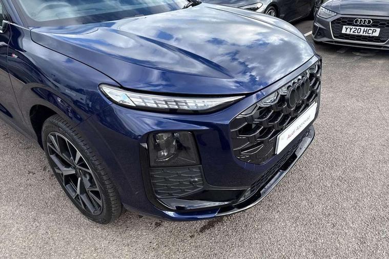 Adaptive cruise control, Audi connect emergency call and service, Audi connect remote and controls, Audi drive select (Balanced/Individual, effeciency, comfort and dynamic), Audi virtual cockpit plus - 11.9" display, Bluetooth interface, Camera based traffic sign recognition, Driver attention and fatigue monitor with driver monitoring, Emergency assist, Front cross traffic assist, Panoramic curved display with 12.8" MMI navigation plus and MMI touch, Park assist plus with parking system and 360 display, Phonebox light with wireless charging, Projection of a black ice warning, Reversing camera, Smartphone interface includes wireless Apple carplay/Android Auto, Start/stop system, Swerve assist and turn assist, Traffic sign based speed limiter, Voice control system with natural language interaction, Petrol Particulate Filter, 2 USB-C ports with charge and data functions, Audi sound system with 10 loudspeakers, subwoofer, 8 channel amplifier with 260 watts, DAB digital radio module, Acoustic glass for front door windows, Acoustic windscreen, Advanced dynamic light scenario of the coming home/leaving home function, All weather light, Aluminium window trim, Audi Q3 lettering on the B-pillars, Auto dimming door mirrors, Auto dimming rear view mirror, Automatic dynamic headlight range control, Contrasting finish in volcano grey, Cornering light, Digital daytime running lights with a choice of 4 digital light signatures, Digital matrix LED headlights, Dipped beam, Dynamic indicators, Electrically folding, adjustable and heated door mirrors with integrated LED side indicators and kerb view function for passenger side, Full paint finish, High resolution main beam, Illuminated door sills with aluminium inserts at the front with S logo, Intersection light, Lane light with side assist and direction indicator, LED third brake light, Loading sill protector in stainless steel, Manoeuvring light, Motorway light, Orientation light with lane departure warning, Position light, Privacy glass - dark tinted rear window, rear door and side windows, Projection light in the exterior mirrors - Projects a graphic element onto the ground, Q3 badging on the rear, Rain and light sensors, Rear side wing doors, Rear window, rear door windows and rear side windows in clear glass, Rear wiper, Sports bumpers, Turning light, 3 seat bench in 2nd row, 3 spoke heated flat top and bottomed leather multi function sport steering wheel with gear shift paddles and "S" badging, 3-zone deluxe automatic air conditioning, 4 way lumbar support for the front seats - electric with horizontal and vertical adjustment in four directions, Black cloth headlining, Front and rear floor mats, Front and rear headrests, Front centre armrest, Heated front seats, Height and reach adjustable steering wheel, Interior storage compartment, Luggage compartment lid, electrically opening and closing, Manual front seats with height adjustment, Rear seat bench plus with split folded 40:20:40, Single front passenger seat, Stainless steel pedals, Steering wheel operating unit, gloss black, Storage compartment in front centre console, Ambient lighting package pro - Q3, Black styling pack with black door mirrors - Q3, Driver assist pack - Q3, Dynamic pack - Q3, 3x3 point rear seatbelts, Convenience key with safelock, Driver and front passenger airbag with passenger airbag deactivation, Electromechanical parking brake, Electronic stabilisation control including ABS, ASR and EDL, First aid kit with warning triangle and high visibility vests, Front emergency brake assist, Hill hold assist, i - Size child seat mounting on the front passenger side and i - Size and top tether on the outer rear seats, Power operated child locks, Seatbelt monitoring, Tyre pressure loss indicator, Anti theft wheel bolts, Remote central locking, Thatcham approved category 1 anti theft alarm, Anthracite american whitewood natural inlay, Interior elements in dinamica microfibre, Interior trims in aluminium look, Tool kit and Jack,