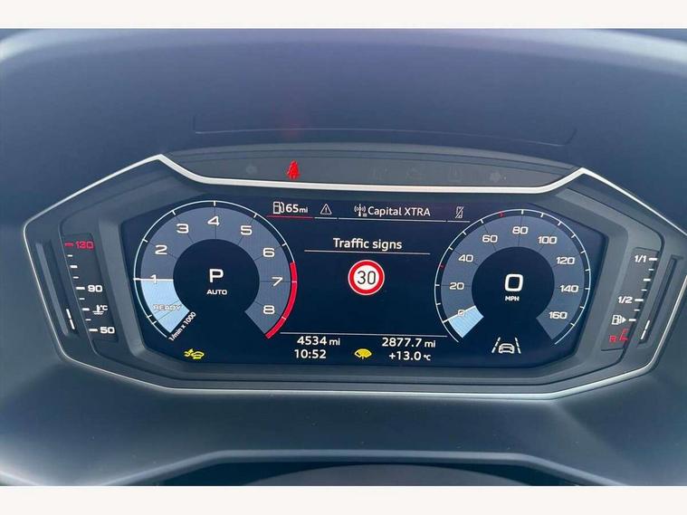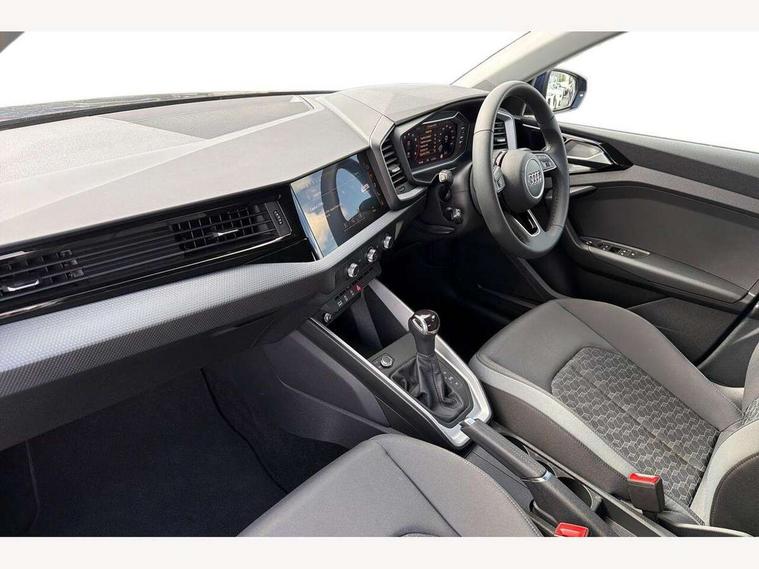 10.25" Digital instrument cluster display classis style instrument dials + speed, odometer, time, outside temperature, telephone menu + fuel level warning, Advanced driver attention and drowsiness monitor, Audi connect emergency call and service, Audi drive select, Audi remote connect and control, Audi smartphone interface, Bluetooth interface, Camera based traffic sign recognition, Cruise control, Driver's information system, Electromechanical power steering, Lane departure warning system, Rear parking sensor, Service interval indicator, Speed limiter, Start stop system with recuperation, Voice control system, Washer fluid level indicator, Dynamic suspension, 2 x USB type C connection points, 6 loudspeakers, DAB Digital radio, MMI radio plus with 10.1" colour MMI display screen and MMI touch, Auto dimming rear view mirror, Body coloured bumpers, Body coloured door mirrors, Electric front and rear windows, Electrically adjustable, heated, folding door mirrors with integrated LED side indicator, Front side air inlets in grained matt black and C frame in anthracite black, Headlight cleaning system, Heat insulating glass windscreen and side windows, Heated rear windscreen, High level LED brake light, LED daytime running lights, LED headlights with range control LED rear lights + dynamic rear indicators, Light and rain sensors, Radiator grille and rear diffuser in matt anthracite black, Radiator protective grille frame in matt aluminium silver, Rear fog lights, Rear side wing doors, Rear wiper, Side front spoiler lips in grained matt black, 12V socket in centre console with two cup holders, 3 rear seats with headrests, 3 seat bench in 2nd row, 3 spoke leather multifunction plus steering wheel, 40:60 Split folding rear seat or fully collapsed, Black velour floor mats, Front door sill trims with aluminium inlay, Front head restraints, Front passenger seat, Grey cloth headlining, Height and reach adjustable steering wheel, Interior lighting includes roof module, front and rear reading lights and right luggage compartment lighting, ISOFIX child seat mounting for front passenger and outer rear seats including top tether attachment point of outer rear seats, Leather gear knob with aluminium trim, Leather handbrake grip, Manual air conditioning, Manual height adjustable for driver and front passenger seat, Manually adjustable lumbar support in front seats, Novum cloth upholstery with front sport seats, Luggage compartment pack - A1, 3x3 point rear seatbelts, Audi pre-sense front with pedestrain and cyclist recognition, Brake assist function, Driver and front passenger airbag with front side and head airbags, Electronic Stability Control including ABS, EBD, ASR and EDL, Front passenger airbag deactivation switch, Hill hold assist, Manual rear child locks, Seatbelt height adjustment for front seats, Seatbelt monitoring, Tyre pressure loss indicator, Warning triangle and first aid kit, Anti theft alarm, Anti theft wheel bolts, Immobiliser, Remote control key with safelock, Aluminium trim for control switches, air vents and digital instrument cluster, Black dashboard, Silver grey accent surfaces insert of air vents, interior door handle recesses and centre console in diamond paint finish, Slate grey inlays polygon structure in fine paint finish,