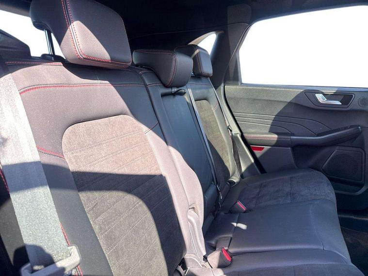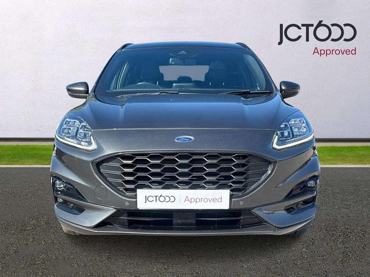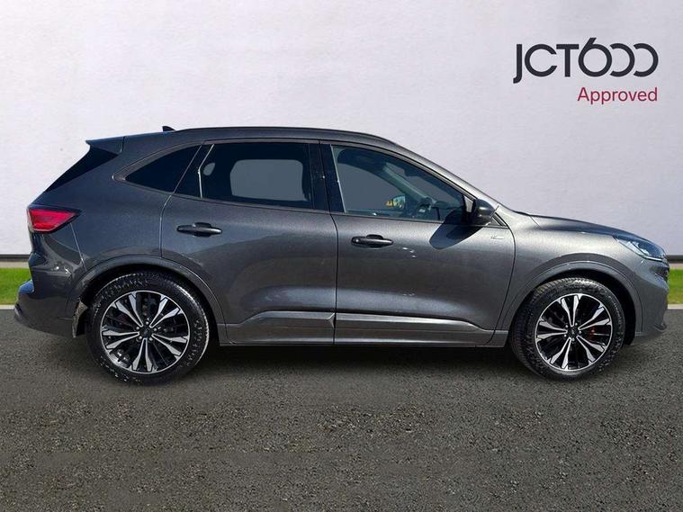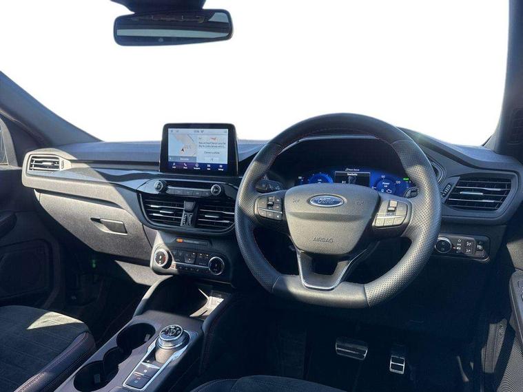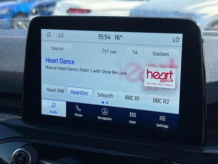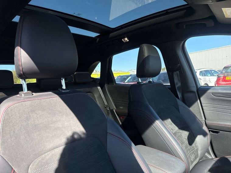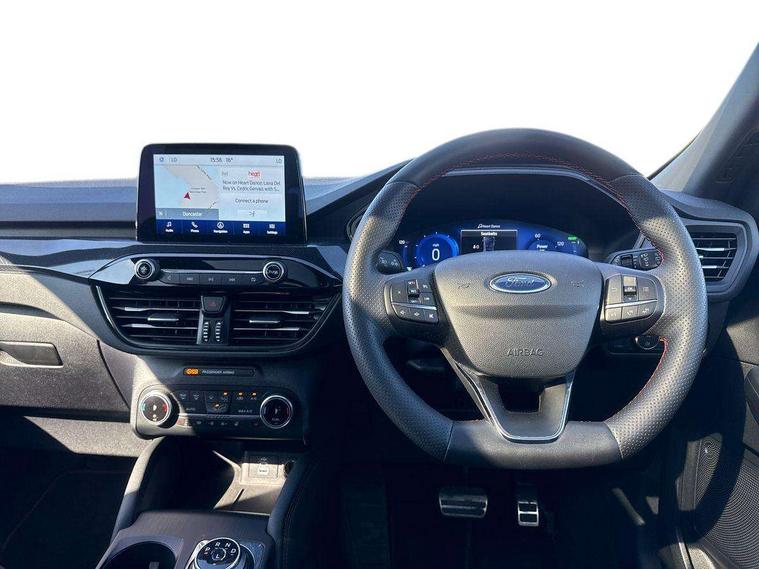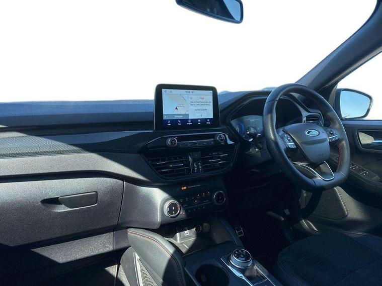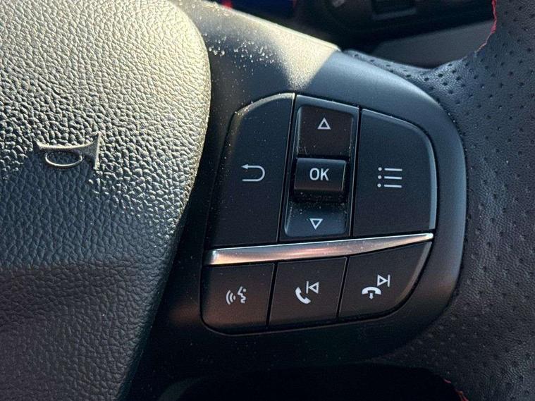 12.3" digital colour instrument cluster, Ford easy fuel, Ford SYNC 3 with 8" TFT LCD touchscreen, App Link, andriod auto/apple carPlay, emergency assistance and navigation with Ford pass connect, Front and rear parking sensors, Hands free power tailgate, Lane keeping aid with lane departure warning, Power assist steering, Rear view camera, Selectable drive modes, Service interval indicator, Sports suspension, Twist beam rear suspension, B&O premium audio system with 10 speakers and subwoofer, 2 USB ports, DAB radio/CD, Auto headlamps with high and low beam, Black roof rails, Day/night rear view mirror, Front LED fog lamps, Large rear spoiler, LED daytime running lights, LED rear lights, Power folding heated door mirrors with puddle lights, Power front/rear windows with global close, Power opening panoramic roof, Privacy glass, Quickclear heated windscreen, Rear side wing doors, Rear wiper, ST Line body styling kit with unique front and rear fascia and bumper, rear painted diffuser, front painted skid plates, dark mesh upper grille, ST Line front scuff plates, Third brake light, Twin exhausts, 10 way power adjustable drivers seat, 2nd row sliding seats with 60:40 split, 8 way manual passenger seat including lumbar support and height adjust, Alloy pedals, Centre console with electronic parking brake, Dark headlining and pillars, Electronic automatic temperature control (EATC), Flat bottomed leather steering wheel in sensico with red stitching, Front and rear head restraints, Heated passenger and driver seats, Heated rear seats, Heated steering wheel, Partial premium touch sensico leather upholstery with black cloth inserts and red stitching, Rear charging point, Single front passenger seat, Sports seats, ST Line front and rear floor mats, 3x3 point rear seatbelts, Airbags - front driver/passenger, front and rear curtain, Drivers knee airbag, Electronic stability control (ESC) and ABS, Ford MyKey Gen 2 safety system, Manual child proof rear door locks, Post collision braking, Pre collision assist with autonomous emergency braking, Rear seat Occupancy alert, Red brake calipers, Tyre pressure monitoring system, Engine immobiliser, Keyless entry and Ford power start button (Keyless start), Locking wheel nuts, Remote powered central double locking doors, Thatcham category 1 alarm,