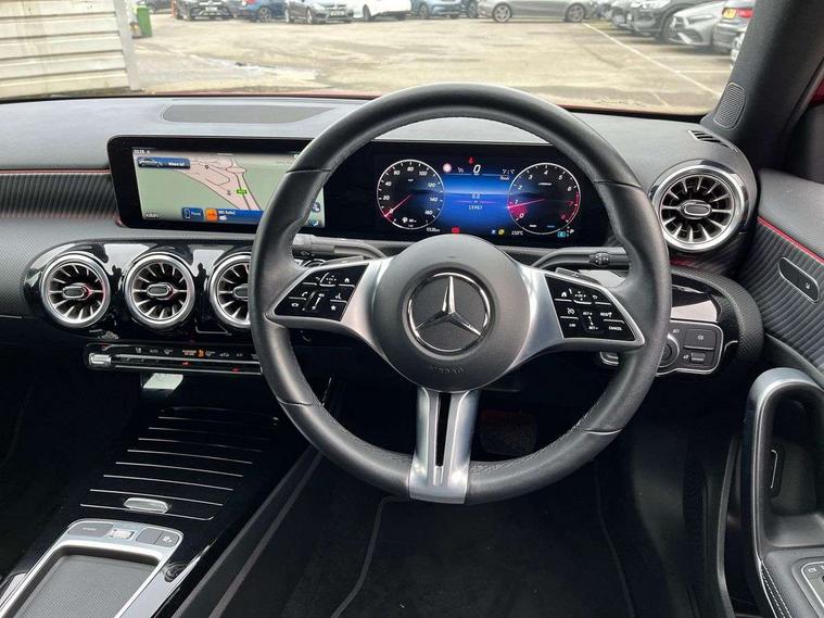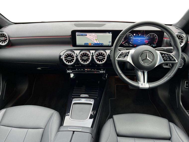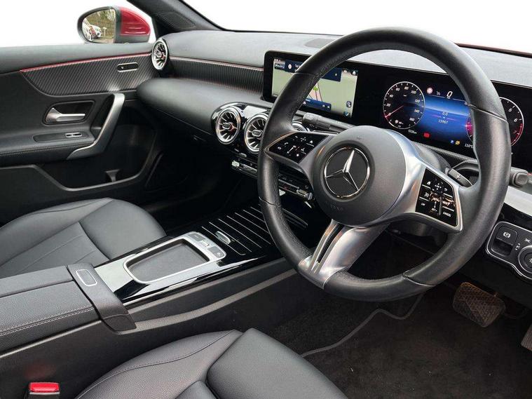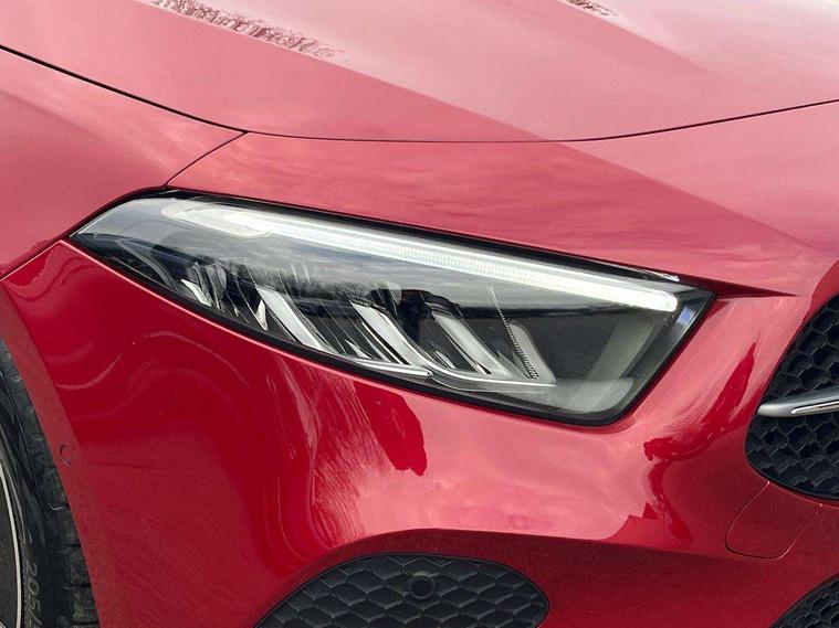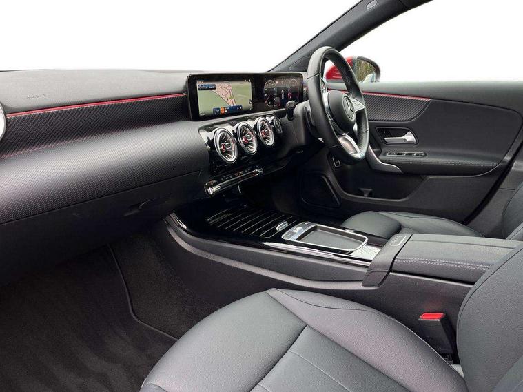 10.25 inch touchscreen central media display, 10.25" Digital instrument cluster display screen, Attention assist, Brake pad wear indicator warning light, Car wash mode, Cruise control + speed limiter, Direct steering, Direction indicators with lane change function, Dual bluetooth interfaces, DYNAMIC SELECT with a choice of driving modes (ECO, Comfort, Sport and Individual), ECO start/stop function, Engine start/stop button, Fingerprint scanner, Fluid level warning indicator for fuel, oil, coolant and washer fluid, Hard-disk navigation, Hey Mercedes Voice activation, Lamp failure indicator, Lane keeping system, Mercedes me connect including emergency call system, accident recovery, breakdown and maintenance management, Mercedes me remote services, Outside temperature gauge, Owners manual in English, Pre-installation of private car share, Preinstallation for Mercedes Benz link, Remote boot closing, Service indicator (ASSYST), Smartphone integration with Apple CarPlay and Android auto, Speed limit assist, Speed sensitive power steering, Trip computer in multifunction display with current consumption indicator, Wireless charging, Lowered comfort suspension, DAB Digital radio, MBUX multimedia system, Mercedes Benz sound system (100 W) with 6 speakers, 4 Electric Front and Rear windows, Adaptive brake lights, Body colour bumpers, Body colour door handles with chrome inserts, Body colour side skirt, Body coloured door mirrors, Chrome beltline strips, Diamond radiator grille with pins in fine star pattern, Electric adjustable and heated door mirrors with integrated LED side indicators, Exhaust system with 2 visible tailpipe trim elements and rear apron, Headlamp assist automatic headlamp activation, Heat insulating dark tinted rear and rear side windows, Heated glass rear windscreen + timer control, LED High Performance headlamps including integral LED daytime running lamps and adaptive highbeam assist, LED tail lamp, Privacy glass, Radio aerial, Rain sensing windscreen wipers with two sensitivity settings, Rear boot, Rear fog lights, Rear side wing doors, Third brake light featuring LED technology, Window line trim strip in chrome, 3 seat bench in 2nd row, 3 Spoke leather multi function steering wheel, 4 way lumbar support, 40:20:40 split folding rear seats, Air conditioning - One zone THERMATIC automatic climate control with automatically controlled air distribution, Artico man-made leather upholstery, Automatic child seat recognition sensor, Black air vents with surround in silver chrome, Black roof lining, Front centre armrest with stowage, Front comfort seats with adjustable head restraints, Front door sills with Mercedes Benz lettering, Front seat backs luggage nets, Gearshift paddles on steering wheel, Heated front seats, Height/reach adjustable steering column, Interior lighting - 64 colour Ambient lighting, Interior mirror with reading lamps in black and frameless, Rear armrest with 2 cupholders, Rear head restraints, Seat occupancy sensor for front passenger seat, Single front passenger seat, Stowage compartment in centre console with retractable cover, Sunvisors with illuminated vanity mirrors, Twin front cupholders, Velour floor mats, Keyless go comfort pack - A Class, Light and sight pack - A Class, Mirror package - A Class, Parking pack - A Class, Seat comfort pack - A Class, USB pack plus - A Class, 3 rear 3 point seatbelts, ABS with Brake Assist, Active bonnet, Active brake assist includes forward collision warning system with autonomous braking, Adaptive brake assist with hold function and hill start assist, Bonnet with power domes, Childproof locks manually operated for rear doors and electrically operated for rear power windows, Crash responsive emergency lighting, Driver and passenger head and side airbags, Drivers knee airbag, Dual stage driver/passenger airbags, Electronic parking brake, ESP curve dynamic assist, ESP with ASR, Front and rear seatbelt reminder, ISOFIX and top tether child seat fixing points in two outer rear seats, Tyre pressure monitoring system, Warning triangle and first aid kit, Window airbags, Alarm system/interior protection/immobiliser, Guard 360 degree vehicle protection, Remote central locking and crash sensor with emergency opening function, Black seatbelts, Dark carbon fibre interior trim, 17" 5 spoke light alloy wheels, aerodynamically optimised, painted in black with high sheen finish, Summer tyres, Tirefit sealant kit,