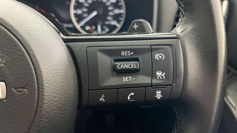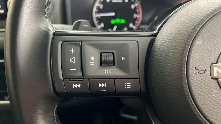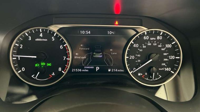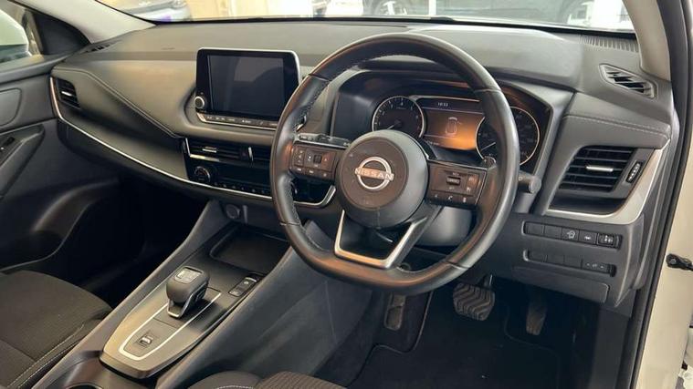 7" High definition full colour TFT screen combimeter, Android auto/Apple CarPlay (Wired), Blind spot warning, Drive modes (sport, normal, eco), Electric speed sensitive power steering, Emergency and breakdown call, Idle stop/start system, Intelligent Cruise control (ICC), Intelligent driver alert system, Intelligent forward collision warning, Intelligent lane intervention, Lane departure prevention, Lane departure warning system, Maximum speed limiter, Nissan connect 8" touchscreen infotainment system, Push button starter, Rear cross traffic alert, Rear parking sensors, Rear view camera, Traffic sign recognition with legal speed adjustment, Trip computer, 6 speakers, AM/FM audio system with DAB, Bluetooth audio streaming, Front USB connections (Type-A and Type-C), Auto dimming rear view mirror, Auto rear wiper when reversing, Automatic hazard signal with emergency stop signal, Body colour mirror caps, Body coloured door handles, Bodyside mouldings, Chrome side window finisher, Door handle with button, Electric auto folding door mirrors, Electrically adjustable and heated door mirrors with LED turn indicator, Follow me home headlights, High beam assist, Intelligent auto headlights, LED 3rd brake light, LED daytime running lights, LED Headlights, LED rear lights, One touch front and rear electric windows with remote opening and closing, Partially body coloured bumpers, Rear reversing light (bulb lighting), Rear roof spoiler, Rear side wing doors, Shark fin antenna, Splash free rain sensing wipers, Three blink turn signal, 12v power socket in dashboard and luggage, 2x Rear coat hooks, 3 bench rear seats in 2nd row, 3 rear headrests, 4 folding assist grip, 6-way manually adjustable driver's seat, 60/40 split folding rear seat bench, Centre console storage tray, Chrome interior door handles, Cloth monoform upholstery, Driver and front passenger sunvisors with illuminated vanity mirrors, Driver seat back pocket, Dual zone automatic climate control with pollen filter, Electrically adjustable lumbar support for driver, Front and rear door storage, Front centre console and armrest, Front cupholders x 2, Front door with bottle holders, Glovebox with light, Hard trunk cover, Height adjustable driver's seat, Height adjustable front headrests, Height adjustable passenger seat, Leather steering wheel, Luggage space lighting, Manually adjustable passenger (slide recline + lifter), Multifunction steering wheel, Passenger seat back pocket, Rear armrest with 2 cupholders, Rear door bottle holders, Single front passenger seat, Steering wheel gearshift paddles, Steering wheel switches, Sunglasses holder, Tilt/telescopic adjustable steering wheel, Two rear isofix child seat anchorage points with top tether, 3x3 point rear seatbelt pretensioners + load limiters, ABS with EBD and brake assist, Active brake limited slip, Auto hold function, Child locks on rear doors, Curtain and front side, far side airbags, Driver and passenger airbags, Driver, passenger and 2nd row rear seat belt reminder, Electronic parking brake, Front seatbelt pretensioners + load limiters, Height adjustable front seatbelts, Hill start assist, Intelligent blind spot intervention, Intelligent front emergency braking with pedestrian, cyclist recognition and junction assist, Intelligent rear automatic braking, Tyre pressure monitoring system, Vehicle dynamic control, Capless fuel filler, Engine immobiliser, Intelligent Key, Remote central door locking with deadlocking, Thatcham Cat.1 alarm, Interior instrumental panel A finisher, 17" Alloy wheels, Tyre puncture repair kit,