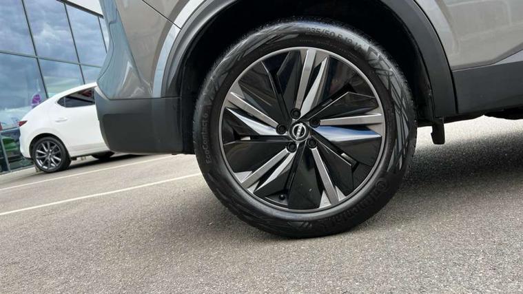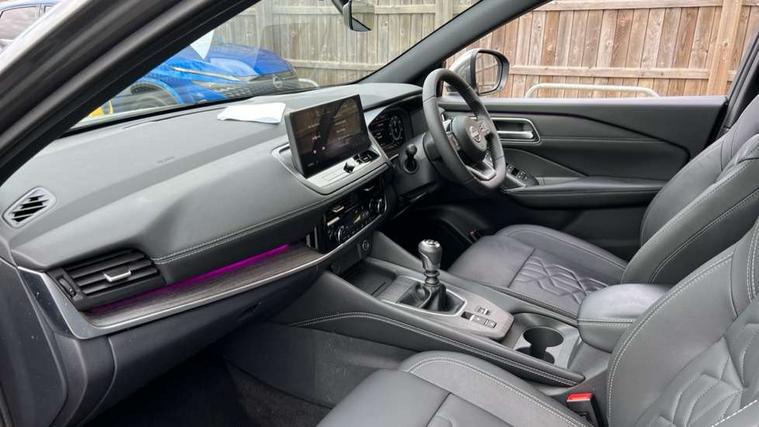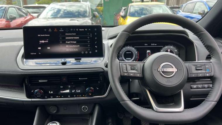 360 degree Intelligent around view monitor with moving object detection, Advanced windscreen head up display, Blind spot warning, Drive assist custom mode, Drive modes (sport, normal, eco), Driver drowsiness and attention warning, Electric speed sensitive power steering, Emergency and breakdown call, Emergency lane keep assist, Emergency Stop Signal (ESS), Engine start/stop button, Event data recorder, Front and rear parking sensors, Full Digital 12.3" TFT Digital Combimeter, Google virtual personal assistance, Hands free power tailgate, Idle stop/start system, In-car WIFI hotspot, Intelligent Cruise control (ICC), Intelligent driver alert system, Intelligent forward collision warning, Intelligent lane intervention, Intelligent speed assist, Lane departure warning system, Nissan connect 12.3 inch touchscreen infotainment system, Nissan connect navigation with google maps, Nissan connect services 2.0 (Google Automotive System), Outside temperature sensor, Rear cross traffic alert, Remote control services - door locks, lights, horn and car locator, Reversing detection, Traffic jam pilot, Traffic sign recognition with legal speed adjustment, Trip computer, Wireless Apple CarPlay/Android Auto, Wireless charging pad, Limited slip differential, 2 front USB-C ports, 2 rear USB-C ports, 6 speakers, AM/FM audio system with DAB, Bluetooth audio streaming, Auto dimming frameless rear view mirror, Auto rear wiper when reversing, Body coloured door handles, Bodyside mouldings, Chrome side window finisher, Electric auto folding door mirrors, Electrically adjustable and heated door mirrors with LED turn indicator, Follow me home headlights, Gloss black mirror caps, High beam assist, Intelligent auto headlights, LED 3rd brake light, LED daytime running lights, LED headlights with adaptive driving beam, LED rear lights, LED sequential turn lights, One touch front and rear electric windows with remote opening and closing, One touch passenger window, Partially body coloured bumpers, Rain sensing wipers, Rear privacy glass, Rear roof spoiler, Rear side wing doors, Rear styling plate, Reverse tilting door mirrors, Shark fin antenna, Silver roof rails, Splash free rain sensing wipers, Super RED rear LED lights, Super UV and infrared cut glass, Thermaclear heated windscreen, 12v power socket in dashboard and luggage, 3 bench rear seats in 2nd row, 3 rear headrests, 60/40 split folding rear seat bench, Chrome interior door handles, Dark headlining, Driver and passenger sunvisors with illuminated vanity mirrors, Driver seat back pocket, Dual zone automatic climate control with pollen filter, Electrically adjustable driver seat, Electrically adjustable lumbar support for driver, Fixed Glass roof with electric sunshade, Front centre console and armrest, Front cupholders, Front door with bottle holders, Heated front seats, Heated steering wheel, Height adjustable front headrests, Height adjustable passenger seat, Leather shift knob, Luggage board system, Luggage space lighting, Manual adjustable lumbar support for passenger, Multifunction steering wheel, Passenger seat back pocket, Quilted/PVC upholstery, Rear door bottle holders, Rear seat armrest with 2 cupholders, RGB ambient light (Extended area coverage), Single front passenger seat, Smooth leather steering wheel, Tilt/telescopic adjustable steering wheel, Two rear isofix child seat anchorage points with top tether, 3x3 point rear seatbelt pretensioners + load limiters, ABS with EBD and brake assist, Autonomous emergency braking, Child locks on rear doors, Curtain and front side, far side airbags, Driver and passenger airbags, Driver, passenger and 2nd row rear seat belt reminder, Electric handbrake with auto hold function, Front seatbelt pretensioners + load limiters, Height adjustable front seatbelts, Hill start assist, Intelligent blind spot intervention, intelligent front emergency braking, Intelligent rear automatic braking, Tyre pressure monitoring system, Vehicle dynamic control, Engine immobiliser, Intelligent key with walk away lock and approach unlock functions, Remote central door locking with deadlocking, Thatcham alarm, 19" Diamond cut alloy wheels, Tyre puncture repair kit,