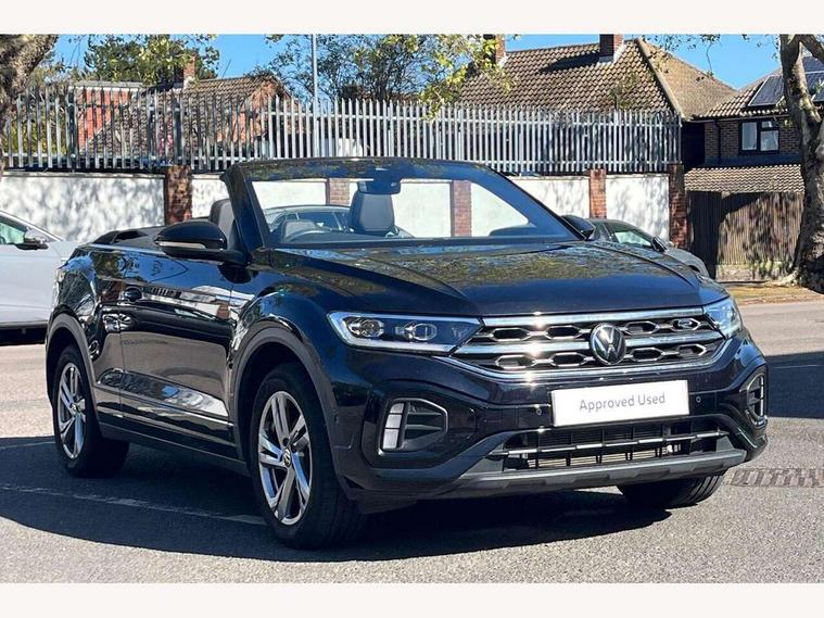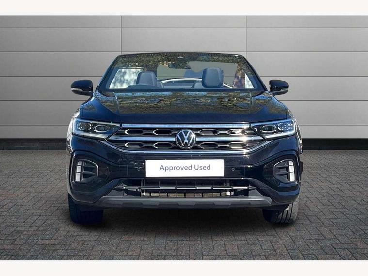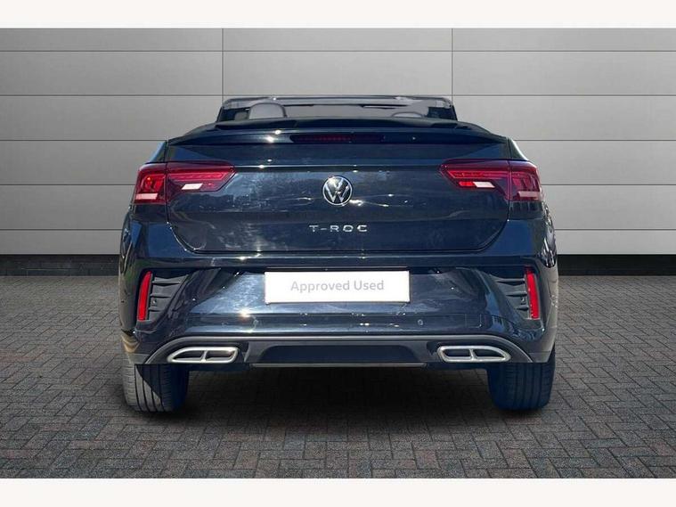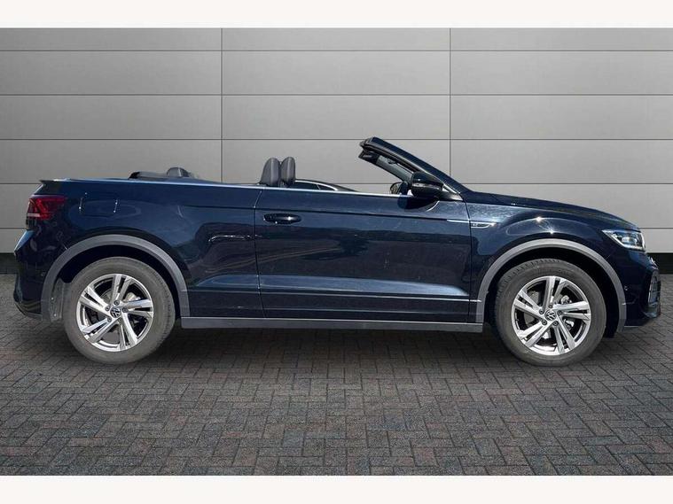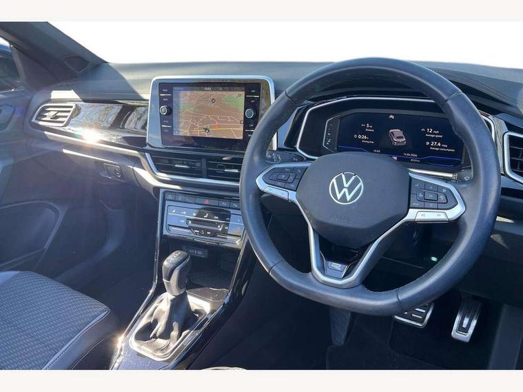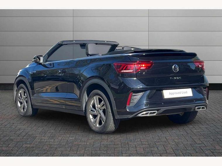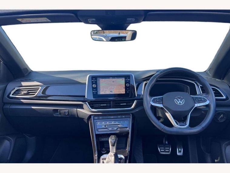 Adaptive cruise control and speed limiter, Bluetooth mobile phone interface, Brake pad wear indicator, Car information display, Digital Cockpit Pro with 10.25" Display, Driver alert system with fatigue detection, Driver tips and journey analysis, Emergency call service, Modified key software - reduce switch off time for key status change to Long no motion, Multifunction computer with visual gear change recommendation for fuel consumption, Multifunction front facing camera, Park assist including front and rear parking sensors, Speedo and rev counter, electronic odometer, trip, service interval display and exterior temperature gauge, Start/stop system with brake energy recovery, Tailgate/trunk lid release from outside, Warning sound and light for front seatbelts unfastened, Shock absorption in front, Diversity antenna for FM reception, Music playback - MP3, WMA and AAC files, SMS functionality - read, compose and send SMS messages using touch-screen display, Title and cover art display, USB-C Interface and USB charging socket, We Connect and We Connect Plus functionality, Ambient lighting with logo projection, Auto dimming interior rear view mirror, Automatic hazard lights activation under emergency braking, Automatic headlight control with LED separate daytime running lights with coming/leaving home function, Black roof, Body colour door handles, Body colour rear spoiler, Chrome effect left and right trapezoid exhaust tailpipe fascia surround, Chrome trim on upper and lower radiator grille, Dark red rear combination lamps in LED technology, Dusk sensor, Exterior mirrors aspherical on driver side, convex on front passenger side, Heat insulating glass windscreen, High level 3rd brake light, Inserts of front seats and outer rear seats in ArtVelours titan black, LED rear number plate lights, Power operated canvas convertible top, Power windows with comfort operation and circuit breaker, R-Line design body coloured bumpers, Rain sensor, Rear boot, Rear exhaust tailpipe, Rear fog light on one side and reversing lights on both sides, Remote electrically foldable door mirrors, puddle lights and reverse activated passenger door mirror, Volkswagen roundel, Windscreen wiper with intermittent wipe light, Without exterior ambient lighting, 12V socket in centre console storage area, 2 LED front reading lights, 2 seat bench in 2nd row, 50:50 Split folding rear seat backrests with fixed rear seat bench, Air care climatronic air conditoning system with active combination filter and 2-zone temperature control, Black door lower parts with chrome trim, Chrome plated surround to light, mirror and window switch, Door and side trim panel with leatherette insert, Easy entry backrest release, Front and rear carpet mats with black stitching, Front centre armrest, Front cupholders x 2, Front door pockets, Front seat back storage pockets, Front sports comfort seats with manual height adjustment, Heated leather wrapped multi function sports steering wheel with tiptronic, Height/reach adjust steering wheel, Instrument lighting, white adjustable panel illumination, Interior light delay, Interior light in footwell, Interior lighting with switch off delay and contact switches on all doors, Interior white ambient lighting and surround lighting, Isofix child seat preparation, Lockable glove compartment with light, Luggage compartment lighting, Power adjustable lumbar support in front, Rear head restraints, Single front passenger seat, Stainless steel pedals, Sun visors with illuminated vanity mirrors, Unique R Line door sill protectors, Driver assistance pack without proactive passenger protection - T-Roc Cabriolet DSG, Sports pack - T-Roc cabriolet, 2 x 3-point seatbelts/outer rear seats with ECE label, Driver and front passenger airbag with front passenger airbag deactivation, Driver and front passenger safety-optimised head restraints, Drivers seatbelt reminder, Electronic parking brake, Electronic Stability Control (ESC) including ABS, ASR and EDL, Front and rear disc brakes, Front assist with autonomous emergency braking, Pedestrian monitoring, Predictive pedestrian protection, Rigid safety cell with front and rear crumple zones, Side airbag/thorax airbag system, for front passengers, Single tone horn, Three point height adjust front seatbelts + pretensioners, Tyre pressure loss indicator, Volkswagen roadside assistance, Anti-theft alarm system with interior protection and central locking system with SAFELOCK, radio remote control and 2 remote control folding keys, Electronic engine immobiliser, Trims for alloy wheels,