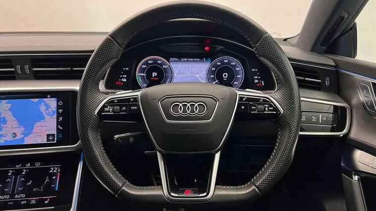 Amazon alexa Integration, Audi connect safety and service (e-call), Audi drive select, Audi parking system plus - acoustic and visual park assist system for front and rear, Audi phone box with wireless charging, Audi smartphone interface, Audi virtual cockpit - 12.3" high resolution LCD digital instrument cluster display, Automatic start/stop system with coasting functionality, Colour driver's information system display, Electric boot lid release, Lane departure warning system, MMI nav plus with MMI touch + 10.1" and 8.6" HD haptic touch screen/3D city models/country information/online map/route info and personal route assist, Operating buttons in black gloss, Power operated tailgate, Rear view camera, Service indicator, Voice control system, 3 pin 10 amp domestic charging cable, 52 litre fuel tank, Hybrid propulsion system, Quattro on demand, Type 2 mode 3 32 amp charging cable, Type 2 socket for AC charging, Audi music interface - 2 USB ports with charger and data functions, Audi sound system with 6 channel amplifier, 180 watt amplifying capacity and 10 loudspeakers including subwoofer, Auxiliary input socket, DAB digital radio module, Audi Beam uses LEDs to project the Audi Sport logo, Coming/leaving home animations in front and rear, Electrically adjustable heated and folding + automatically dimming exterior mirrors with memory function, Frameless auto dimming interior rear view mirror, Front and rear electric windows, Gloss black exterior mirror housings, Gloss black highlights on the exterior area of the Audi Single frame, Gloss black highlights on the front and rear bumpers, Gloss black highlights on the radiator grille, Gloss black highlights on the side windows trim strips, HD Matrix LED headlights with dynamic front and rear indicators, Headlight washers, Heat insulating darkened glass in side and rear windows, High gloss black radiator grille with chrome single frame surround, LED rear lights, Privacy glass with dark tinting on rear side windows and rear window, Rain and light sensors, Retractable rear spoiler, S line air inlet design with inlay in high gloss black, S Line badge on front fender, S line badge on front grille, S Line Black rear diffuser with chrome inlays and rear grille, S Line side skirts, Signature LED daytime running lights, Towbar preparation, Windscreen with acoustic glazing, 3 spoke flat bottom high multi-function leather steering wheel, 4 zone deluxe automatic climate control, 4-way electric lumbar support, 40/20/40 split folding 3 seater rear seat bench with rear centre armrest, Aluminium gear knob, Black cloth headlining, Electrically adjustable front seats - driver seat with memory, Front and rear headrests, Front centre armrest, Heated front seats, Height/reach adjust steering wheel, Illuminated door sill trims with S logo, Illuminated sun visors with vanity mirrors, ISOFIX child seat mounting and Top Tether with front passenger airbag deactivation, Leatherette upper instrument panel and door shoulders, S line front and rear floor mats with contrast stitching, Stainless steel pedals and foot rest, Tool kit and car jack, Valcona leather upholstery with diamond stitching and super sport seats S embossed logo, LED interior ambient lighting pack - A7, Non smoking pack - A7, Storage pack - A7, 3 point seatbelts on all seats, Audi pre-sense front, Driver and passenger airbags, Electromechanical parking brake, Electronic stabilisation control including ABS, ASR and EDL, Extended pedestrian protection measures, Hill hold assist, Red brake callipers, Seatbelt monitoring, Tyre pressure warning light, Warning triangle and first aid kit, Anti theft alarm with tow away protection, Anti-theft wheel bolts and wheel loosening detection, Immobiliser, Keyless Go, Preparation for tracking system, Remote central locking, Tyre repair kit,