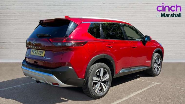 Advanced 10.8" head up display, Android auto/Apple CarPlay (Wired), Blind spot warning, Drive modes (sport, normal, eco, snow, off-road), e-Pedal step, Electric speed sensitive power steering, Emergency and breakdown call, Front and rear parking sensors, Full Digital 12.3" TFT Digital Combimeter, Google maps services - search, weather, 3D maps and Google street view, Hands free power tailgate, Idle stop/start system, Intelligent around view monitor, Intelligent driver alert system, Intelligent forward collision warning, Intelligent lane departure warning, Intelligent lane intervention, Intelligent lane keep assist, Lane departure prevention, Maximum speed limiter, Moving object detection, Nissan connect 12.3 inch touchscreen infotainment system, Nissan connect nav with TomTom traffic, Pro pilot and head up display, ProPilot park, Push button starter, Rear cross traffic alert, Rear view camera, Remote control services - door locks, lights, horn and car locator, Telematics - notifications and connectivity services, TomTom live traffic services, Traffic jam pilot, Traffic sign recognition with legal speed adjustment, Trip computer, Virtual personal assistant and firmware over the air capability, Wireless apple carplay, Wireless charging pad, 6 speakers, AM/FM audio system with DAB, Bluetooth audio streaming, Front USB connections (Type-A and Type-C), Rear USB charging only ports (Type-A and Type-C), 3rd brake light, Auto dimming rear view mirror, Auto rear wiper when reversing, Body colour mirror caps, Body coloured door handles, Bodyside mouldings, Chrome side window finisher, e-4ORCE badging, e-POWER badging, Electric auto folding door mirrors, Electrically adjustable and heated door mirrors, Follow me home headlights, Headlights auto levelling system, High beam assist, Intelligent auto headlights, LED daytime running lights, LED headlights with adaptive driving beam, LED rear lights, One touch front and rear electric windows with remote opening and closing, Openable glass roof with electric sunshades and roof rails, Partially body coloured bumpers, Rain sensing wipers, Rear privacy glass, Rear reversing light (bulb lighting), Rear roof spoiler, Rear side wing doors, Rear styling plate, Shark fin antenna, Splash free wipers, Super UV and infrared cut glass, Thermaclear heated windscreen, Three blink turn signal, 12v power socket in dashboard and luggage, 3 bench rear seats in 2nd row, 3 rear headrests, Butteryfly console, Chrome interior door handles, Driver and front passenger sunvisors with illuminated vanity mirrors, Driver seat back pocket, Electric adjustable 2 way lumbar support for driver, Electric adjustable 2 way lumbar support for passenger seat, Electrically adjustable driver seat, Front and rear heated seats, Front centre console and armrest, Front cupholders, Front door with bottle holders, Heated steering wheel, Height adjustable driver's seat, Height adjustable front headrests, Height adjustable passenger seat, Leather shift knob, Leather steering wheel, Luggage board system, Luggage space lighting, Multifunction steering wheel, Passenger seat back pocket, Rear armrest with 2 cupholders, Rear door bottle holders, Single front passenger seat, Sliding second row seats, Split folding 2nd row - 40/20/40, Steering column mounted gear shift paddles, Synthetic leather monoform upholstery, Tilt/telescopic adjustable steering wheel, Tri zone automatic climate control with pollen filter, Two rear isofix child seat anchorage points with top tether, 3x3 point rear seatbelt pretensioners + load limiters, ABS with EBD and brake assist, Active brake limited slip, Auto hold function, Child locks on rear doors, Curtain and front side, far side airbags, Driver and passenger airbags, Driver, passenger and 2nd row rear seat belt reminder, Electronic parking brake, Front seatbelt pretensioners + load limiters, Height adjustable front seatbelts, Hill start assist, Intelligent blind spot intervention, Intelligent front emergency braking with pedestrian, cyclist recognition and junction assist, Intelligent rear automatic braking, Tyre pressure monitoring system, Vehicle dynamic control, Engine immobiliser, Intelligent Key, Remote central door locking with deadlocking, Thatcham Cat.1 alarm, 19" Diamond cut alloy wheels, Tyre puncture repair kit,