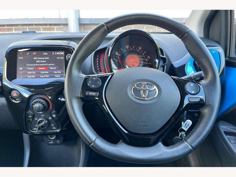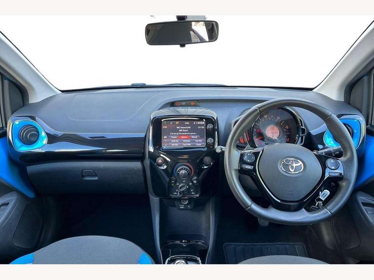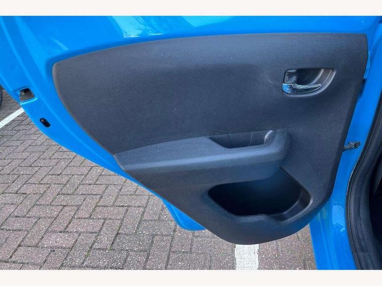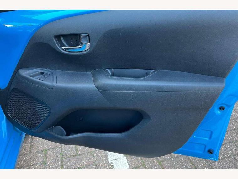 7" touch screen, Bluetooth system, Digital clock, Fuel indicator with low level warning, Lights on warning, MirrorLink, Rear view camera, Speed sensitive power steering, Tachometer, Vehicle Stability Control (VSC), 4 speakers, Auxiliary input socket, Bluetooth audio streaming, DAB Digital radio, Multimedia System, Stereo radio, USB connection, 2 speed wipers/variable intermittent/mist function, Body colour bumpers, Electric adjustable door mirrors, Electric front windows, Front fog lights, Gloss black door handles, Gloss black door mirrors, Gloss black rear diffuser, Green tinted glass, Headlamp levelling, Heated door mirrors, Heated rear windscreen, LED daytime running lights, Metallic paint, Rear spoiler, Rear wiper, Roof mounted aerial, 12V Accessory socket, 50/50 split folding rear seat, Air recirculation system, Centre console storage, Chrome interior door handles, Driver and passenger sunvisors, Driver's seat height adjuster, Driver/passenger seat recline/slide adjust, Driver/passenger vanity mirrors with covers, Fabric upholstery, Front cupholder, Front map reading lights, Glossy black centre console and gear shift surround, Glovebox, Height adjustable front head restraints, Isofix system on outer rear seats, Leather steering wheel/gearshift knob, Pollen filter, Rear cupholders, Rear headrests, Steering wheel mounted radio/phone controls, Stepless tilt adjustable steering column, Storage bins on all doors, Tonneau cover, ABS, Driver and passenger airbags, ESP, Fasten seatbelt reminder, Front side airbags, Height adjustable front seatbelts with pre-tensioners and load limiters, Hill start assist, Passenger airbag deactivate switch, Rear child proof door locks, Side curtain airbags, Tyre pressure warning, Engine immobiliser, Lockable fuel cap, Remote central locking, Cyan burst air vent surrounds, Gloss black dashboard, 15" Twin spoke alloy wheels in gloss black, Tyre repair kit,
