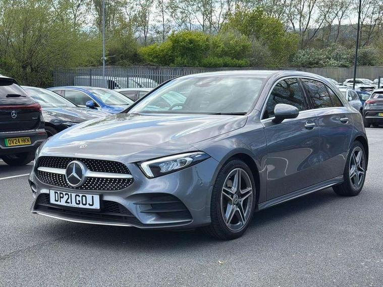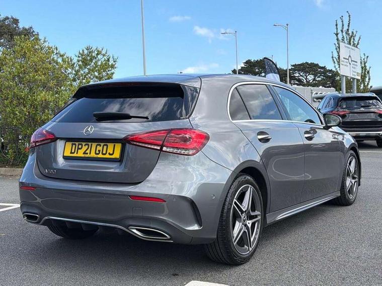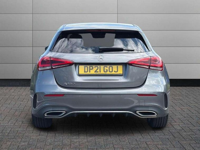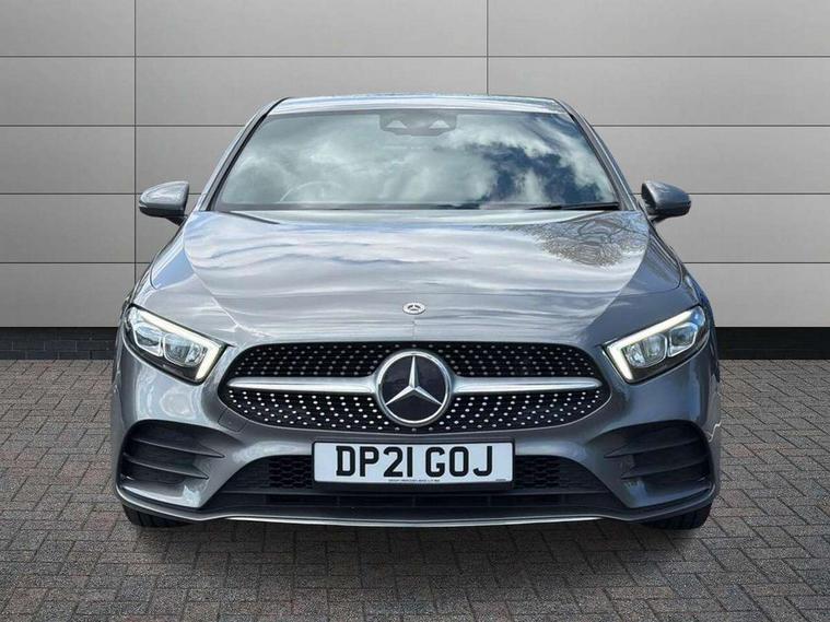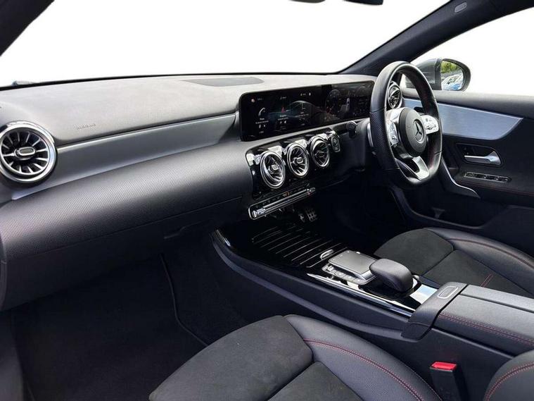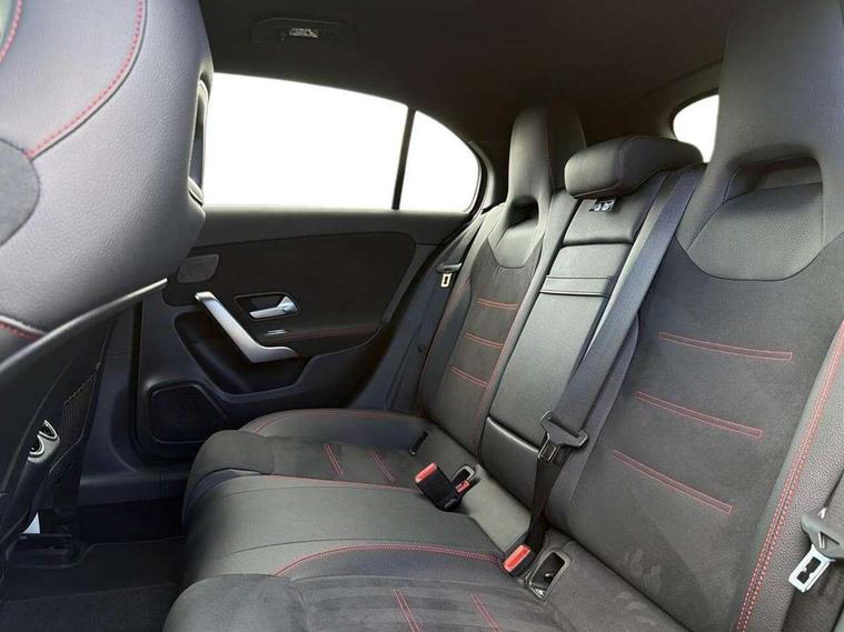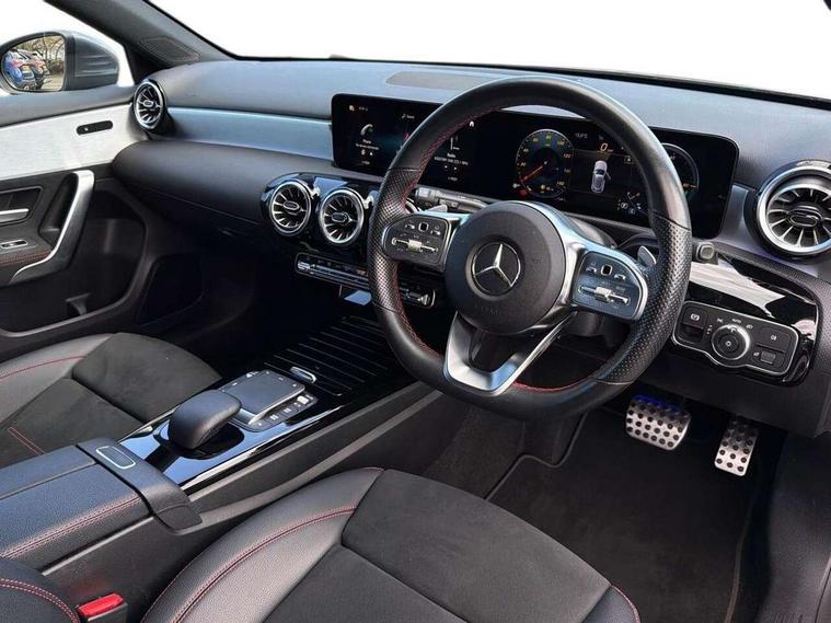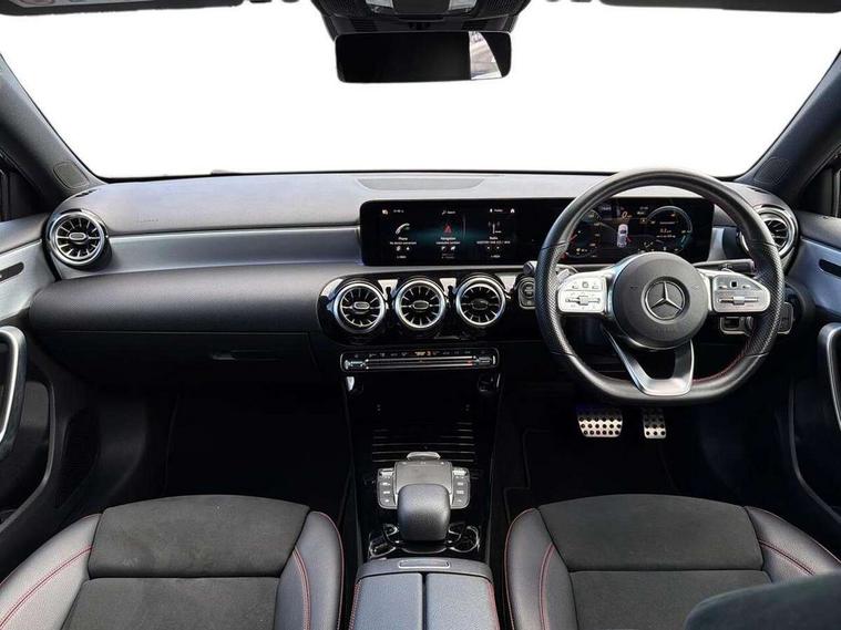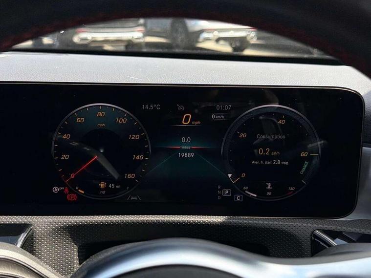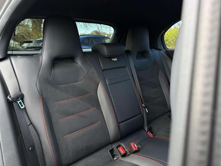 10.25" Digital instrument cluster display screen, 10.25" media display, 180 degree rear view camera with parking guidelines, Active parking assist with visual and audible warning of detected obstacles, Attention assist, Brake pad wear indicator warning light, Car wash mode, Cruise control + speed limiter, Direct steering, Dual bluetooth interfaces, DYNAMIC SELECT with a choice of driving modes (ECO, Comfort, Sport and Individual), ECO start/stop function, Fluid level warning indicator for fuel, oil, coolant and washer fluid, Hard-disk navigation, Hey Mercedes Voice activation, Lamp failure indicator, MBUX augmented reality for navigation, Mercedes me connect including emergency call system, accident recovery, breakdown and maintenance management, Mercedes me remote services, Outside temperature gauge, Owners manual in English, Pre-installation for private car sharing, Preinstallation for Mercedes Benz link, Service indicator (ASSYST), Smartphone integration with Apple CarPlay and Android auto, Speed sensitive power steering, Trip computer, Ultrasonic sensors positioned in the front and rear bumpers, Wireless charging, Lowered comfort suspension, Rear axle torsion beam, 10 speakers, 2 USB ports (type C) in rear stowage compartment and one in front of center console, DAB Digital radio, MBUX multimedia system with DAB digital radio and touchpad including satellite navigation, Mercedes-Benz advanced sound system - 225W, 4 Electric Front and Rear windows, Adaptive brake lights, AMG bodystyling - Front apron with splitter in chrome, rear apron with chrome trim and chrome visible trim elements in tailpipe, Black weather strip, Body colour bumpers, Body colour door handles, Body colour side skirt, Body coloured door mirrors, Chrome beltline trim, Diamond radiator grille with chrome pins and silver louvre + chrome insert, Electric adjustable and heated door mirrors with integrated LED side indicators, Exhaust system - Twin visible tailpipes in polished stainless steel, Headlamp assist automatic headlamp activation, Heated glass rear windscreen + timer control, LED high performance headlamps with integrated LED daytime running lights, LED tail lamp, LED third brake light, Privacy glass, Radio aerial, Rain sensing windscreen wipers with two sensitivity settings, Rear fog lights, Rear wiper, Window line trim strip in chrome, 3 Spoke flat bottom leather multi function steering wheel with perforated leather in grip area, 40:20:40 split folding rear seats, Artico man-made leather/Microfibre Dinamica upholstery with red contrast stitching, Auto Mercedes-Benz child seat recognition sensor, Black air vents with surround in silver chrome, Black roof lining, Brushed stainless steel sports pedals with rubber studs, Controller on centre console with chrome surround, Floor mats with stitched edging and AMG lettering, Front centre armrest with storage compartment, Front seat backs luggage nets, Front seat cushion length adjustment, Galvanished gear shift paddles on steering wheel, Heated front seats, Height/reach adjustable steering column, Illuminated front door sills with changeable cover, Interior lighting - 64 colour Ambient lighting, Interior mirror with reading lamps in black and frameless, Manual height adjustable front seats, Rear armrest with 2 cupholders, Rear head restraints, Seat occupancy sensor for front passenger seat, Sports seats with integrated headrests, Stowage compartment in centre console with retractable cover, Sunvisors with illuminated vanity mirrors, Touchpad on center console, Twin front cupholders, Two zone thermotronic luxury automatic climate control, Light and sight pack - A Class, Mirror package - A Class, Seat comfort pack - A Class, 3 rear 3 point seatbelts, ABS with Brake Assist, Active bonnet, Active brake assist includes forward collision warning system with autonomous braking, Adaptive brake assist with hold function and hill start assist, Childproof locks manually operated for rear doors and electrically operated for rear power windows, Crash responsive emergency lighting, Driver and passenger head and side airbags, Drivers knee airbag, Dual stage driver/passenger airbags, Electronic parking brake, ESP curve dynamic assist, ESP with ASR, Front and rear seatbelt reminder, Front brake callipers with Mercedes Benz lettering, ISOFIX and top tether child seat fixing points in two outer rear seats, Tyre pressure monitoring system, Warning triangle and first aid kit, Window airbags, Alarm system/interior protection/immobiliser, Keyless entry lock/unlock, Keyless Go, Remote central locking and crash sensor with emergency opening function, Urban guard vehicle protection system with immobiliser and interior protection, Black seatbelts, Light aluminium with longitudinal grain interior trim, 18" AMG 5 twin spoke light alloy wheels in titanium grey with highsheen finish, Summer tyres, Tirefit sealant kit,