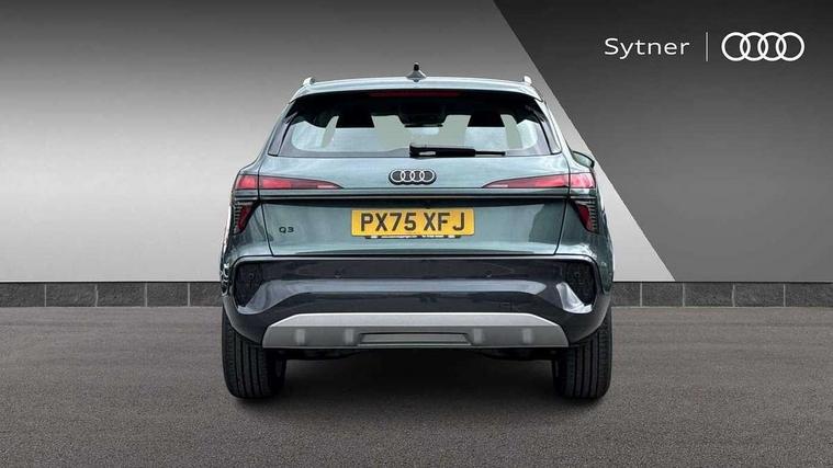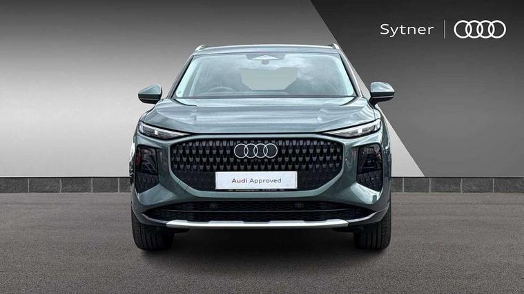 Adaptive cruise control, Audi connect emergency call and service, Audi connect remote and controls, Audi drive select (Balanced/Individual, effeciency, comfort and dynamic), Audi virtual cockpit plus - 11.9" display, Bluetooth interface, Camera based traffic sign recognition, Driver attention and fatigue monitor with driver monitoring, Electromechanical power steering, Front cross traffic assist, Lane departure warning with emergency assist, Panoramic curved display with 12.8" MMI navigation plus and MMI touch, Park assist plus with parking system and 360 display, Phonebox light with wireless charging, Reversing camera, Smartphone interface includes wireless Apple carplay/Android Auto, Start/stop system, Swerve assist and turn assist, Traffic sign based speed limiter, Voice control system with natural language interaction, Comfort suspension, Petrol Particulate Filter, 2 USB-C ports with charge and data functions, Audi sound system with 10 loudspeakers, subwoofer, 8 channel amplifier with 260 watts, DAB digital radio module, Acoustic glass for front door windows, Acoustic windscreen, Aluminium roof rails, Aluminium window trim, Audi Q3 lettering on the B-pillars, Auto dimming door mirrors, Auto dimming rear view mirror, Body colour door mirrors, Contrasting finish in volcano grey, Electrically folding, adjustable and heated door mirrors with integrated LED side indicators and kerb view function for passenger side, LED daytime running lights, LED Headlights, LED rear lights, LED third brake light, Loading sill protector in stainless steel, Main beam assist, Projection light in the exterior mirrors - Projects a graphic element onto the ground, Q3 badging on the rear, Rain and light sensors, Rear side wing doors, Rear window, rear door windows and rear side windows in clear glass, Rear wiper, Sports bumpers, 2 spoke multi-function leather steering wheel with paddle shift, 3 seat bench in 2nd row, 3-zone deluxe automatic air conditioning, 4 way lumbar support for the front seats - electric with horizontal and vertical adjustment in four directions, Door sill trims with aluminium inlay, Front and rear floor mats, Front and rear headrests, Front centre armrest, Heated front seats, Height and reach adjustable steering wheel, Impressum cloth upholstery + front sports seats, Interior elements in cloth, Interior storage compartment, Luggage compartment lid, electrically opening and closing, Manual front seats with height adjustment, Rear seat bench plus with split folded 40:20:40, Single front passenger seat, Steering wheel operating unit in matt black, Storage compartment in front centre console, Ambient lighting package plus - Q3, 3x3 point rear seatbelts, Convenience key with safelock, Driver and front passenger airbag with passenger airbag deactivation, Electromechanical parking brake, Electronic stabilisation control including ABS, ASR and EDL, First aid kit with warning triangle and high visibility vests, Front emergency brake assist, Hill hold assist, i - Size child seat mounting on the front passenger side and i - Size and top tether on the outer rear seats, Power operated child locks, Seatbelt monitoring, Three point automatic belts with belt tensioner and height adjustment, Tyre pressure loss indicator, Anti theft wheel bolts, Remote central locking, Thatcham approved category 1 anti theft alarm, Interior trims in aluminium look, Matt cross brushed aluminium inlay, Tool kit and Jack,