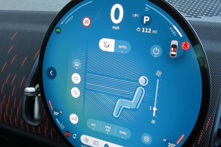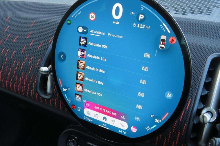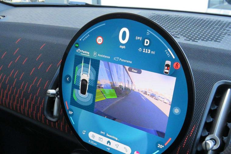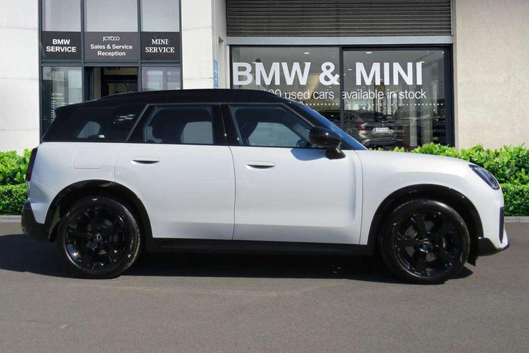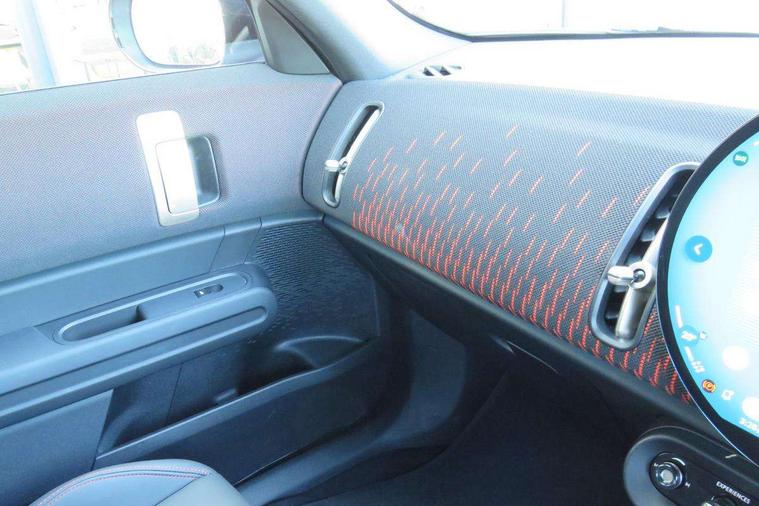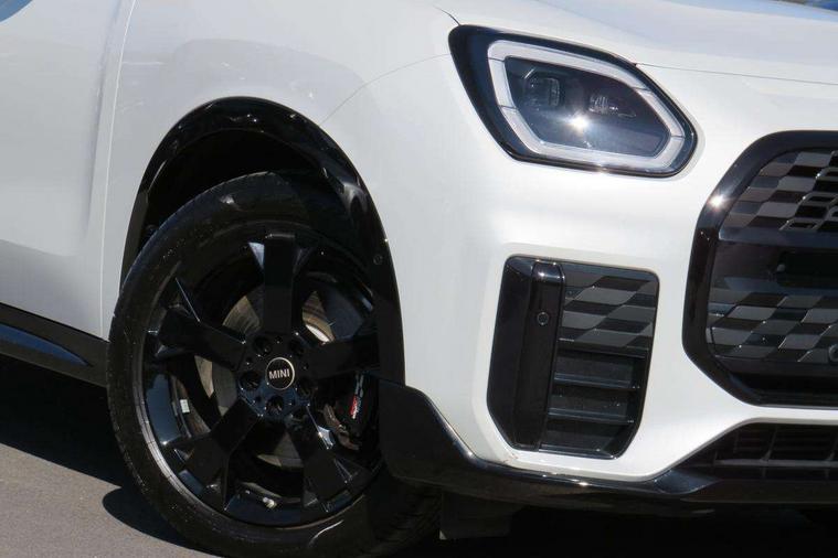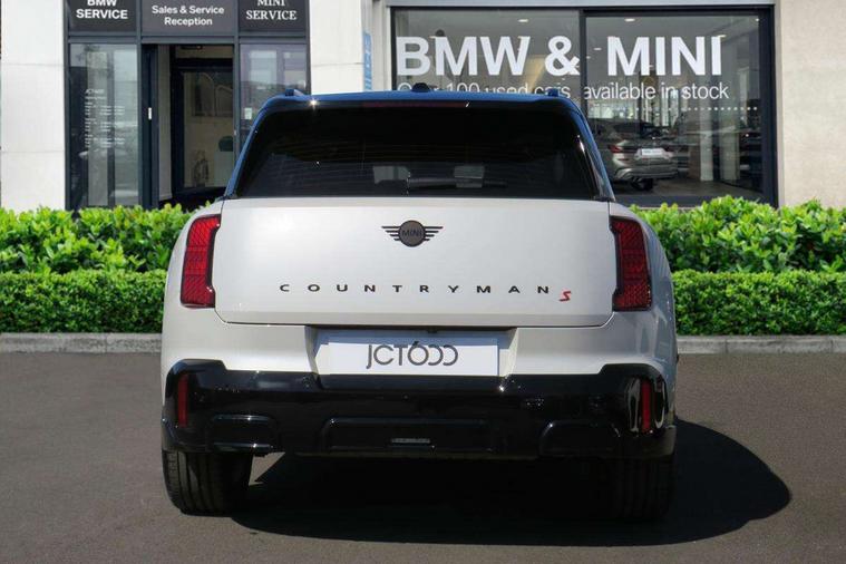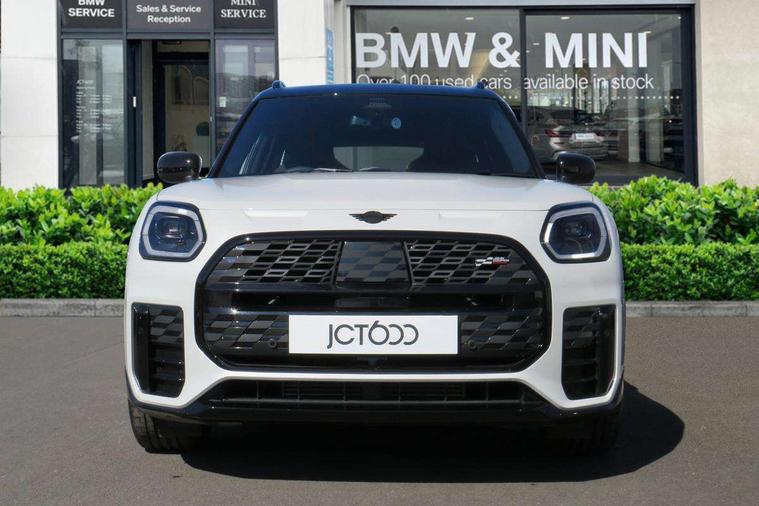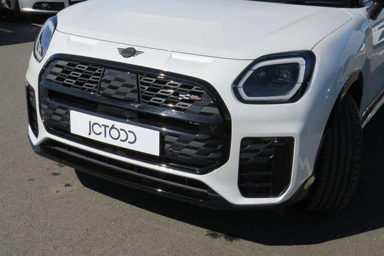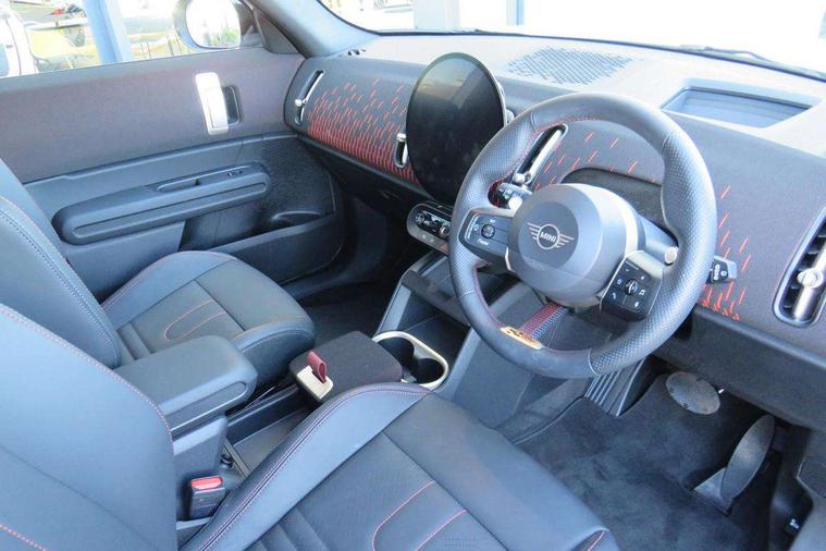 Bluetooth connection, Circular OLED Screen, Compatible mobile phone bluetooth with audio streaming, Cruise Control (DCC), Digital dashboard display, Driving assistant, Driving Assistant Plus Preparation, E-call, Electro-mechanical speed dependant steering assistance, MINI Experience Modes, MINI Head up display, Mini navigation system, MINI TeleServices, Parking assistant in camera and ultrasound based assistance system, rear view camera, parking aid and distance control, Adaptive suspension, Double clutch sports transmission, Larger capacity fuel tank, 6 speakers, DAB Digital radio, Personal eSim, Auto tailgate, Electric adjustable heated door mirrors, Front and rear apron, Front and rear electric windows, Heated rear window, High beam assistant, High gloss hexagonal patterned grille surround, Interior rear-view mirror with automatic anti-dazzle function, LED daytime running lights, LED headlights with extended contents including Adaptable light signatures, LED rear lights, LED third brake light, Rain sensor with auto headlights, Rear roof spoiler with airblades, Rear side wing doors, Rear window wiper, Roof rails, 3 Seat sliding rear bench in 2nd row, Anthracite headliner, Auto air conditioning, Driver and front passenger seat heating, Floor mats, Front armrest, Front headrests, Heated steering wheel, Height and length steering column adjustment, JCW Front sports seats, Lidded storage box in Black/Red knit, Luggage compartment separating net, Perforated Vescin steering wheel, Rear headrests, Seat adjustment for rear seats, Single front passenger seat, Sunvisors with vanity mirrors, Vescin/Cloth upholstery, Wireless charging tray, Interior and exterior mirror package - Mini Countryman, 3x3 point rear seat belts, 6 Airbags - front, side, head and seat belt tensioners, ABS, Brake calipers in Black with JCW badge, DSC - Dynamic Stability Control, Electronic handbrake, Electronic Stability Programme (ESP), Front ISOFIX (iSize), Hill descent control, Hill hold assist, Hill start assist, JCW Sport Brakes, Manual rear child locks, Traction control, Tyre pressure monitoring system, Warning triangle, Alarm system with tilt sensor, monitoring doors, bonnet interior and tailgate, Auto drive away locking, Comfort access system, Deadlocking function, Electronic vehicle immobiliser, Locking wheel bolts, Remote control locking, Start/stop toggle with keyless go, JCW Black/Red dashboard knit, MINI Mobility Kit,