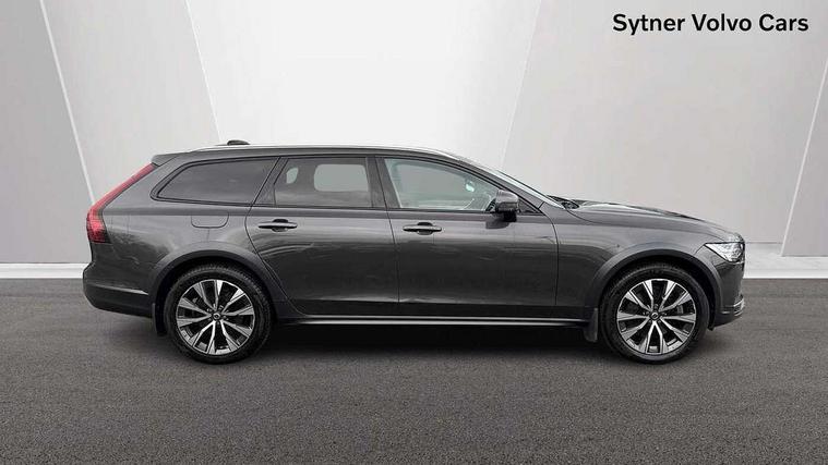 12.3" Progressive Driver Display, 9" centre console touch screen, Adjustable steering wheel force, Bluetooth Handsfree Phone Connection, Drive mode settings, E-call, Google automotive services enabled entertainment apps, navigation with google maps, voice recognition with google assistant, Lane keep assist with driver alert control, Oncoming Lane Mitigation, Power operated tailgate, Speed limiter, Speed sensitive steering, Volvo on call, Wireless/Inductive Mobile Phone Charging, 65mm additional ground clearance, 8 speed automatic transmission with start/stop + manual change functions, DAB Radio (Digital Audio Broadcasting), Steering wheel remote infotainment controls, Adaptive brake lights with high level LED brake lights, Auto dimming interior + exterior mirrors, Automatic headlamp levelling, Automatic LED Headlights + Active high beam incorporating daytime running lights, Charcoal lower grille, Charcoal wheel arch extensions, Colour coordinated auto folding and heated power door mirrors, Cross Country embossed rear bumper, Enlarged door mirrors, Front and rear power windows, High gloss black front grille with chrome details, High gloss black window trim, Home safe and approach lighting, Integrated roof rails in silver, Puddle lights in exterior door handles, Rain sensor with automatic windscreen wiper activation, Rear LED lights with sequential indicators, Rear side wing doors, Rear wiper, Roof antenna, Roof spoiler, Silver front and rear skid plate, Visible VIN plate, 3 seat bench in 2nd row, 3 spoke leather steering wheel with chrome trim, A-pillar parking ticket holder, Ambient door and instrument panel lighting, B Pillar ventilation, Blond headlining, Bright metal luggage threshold, Cargo divider with grocery bag holder, Center Console Cupholders and Storage, Driver's side lower dashboard storage compartment, Extended front seat cushions, Floor mats, Front 12V socket tunnel console and cargo area, Front centre armrest storage illumination, Front footwell and side step illumination, Front head restraints, Front/rear door pockets and front cupholder illumination, Front/rear reading lights, Heated front seats, Height/reach adjustable steering column, Illuminated front and rear tread plates, Illuminated glovebox, Illuminated luggage compartment, Illuminated tailgate, Illuminated vanity mirrors + ticket holder, Integrated sun curtains in rear doors, Isofix system on outer rear seats, Leather upholstery with unique stitching, Load cover, Load protection net, Off-black finish in steering wheel, Power driver seat with memory for seat and exterior mirrors, Power Folding Rear Seat Backrests and Headrests, Rear armrest with storage + cupholders, Rear footwell and side step illumination, Single passenger seat, Ski hatch, Underfloor cargo storage, Versatile split folding rear seat - 60/40, Driver assist pack - V90, 3x3 point rear seatbelts, Active bonnet, City safety with steering support with Pedestrian + cyclist + front collision warning with full auto brake and rear auto brake, Drivers knee airbag, Dual stage driver/passenger airbags, Front seats SIPS airbags, Hill descent control, Hill start assist, IC (Inflatable Curtains) - Full Length, Passenger airbag cut-off device, Power parking brake with auto hold function, Road sign information display, Run off Road Mitigation, Run off Road Protection, Seatbelt reminder and pretensioners for all seats, SIPS (Side Impact Protection System), Slippery road and hazard light alert, Stability and Traction Control with Spin control, Engine Drag Control and Corner Traction Control, Tyre pressure monitoring system, Vehicle deceleration control with Anti-lock Brake System, Electronic Brake Distribution and Emergency Brake Assist, Warning triangle and first aid kit, WHIPS whiplash protection system - front, Anti-theft alarm including immobiliser/volume sensor + level sensor, Care key with user defined top speed, Key integrated remote control central locking + fuel flap with deadlocking system and auto open/close power windows, Keyless drive with Keyless entry and start, Locking wheel nuts, Private locking for tailgate, Tailored Instrument Panel and Door Tops with Contrast Stitching,