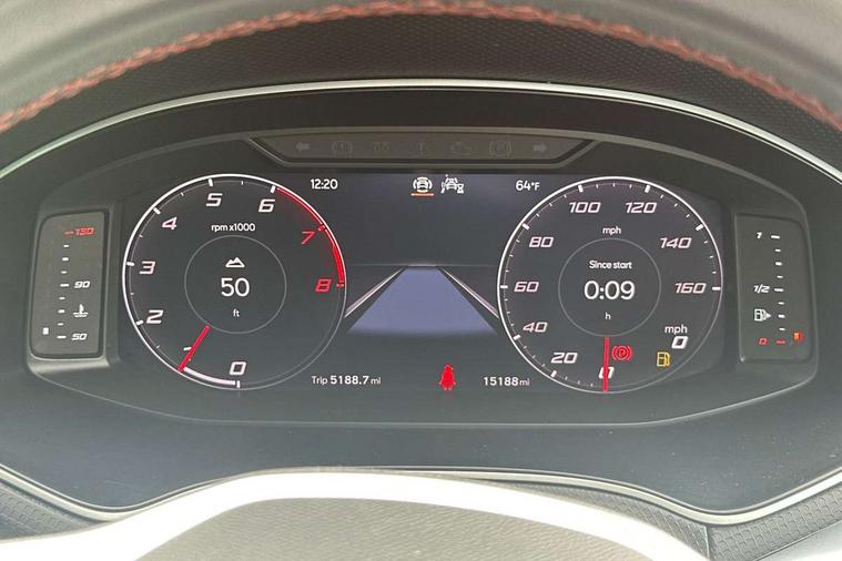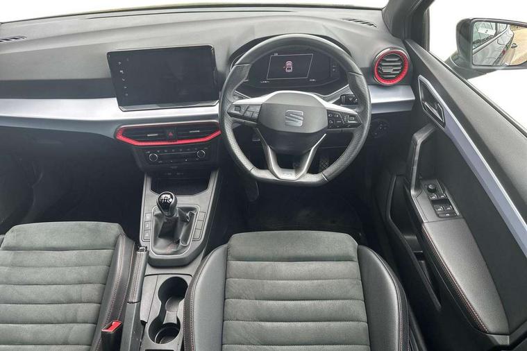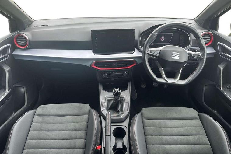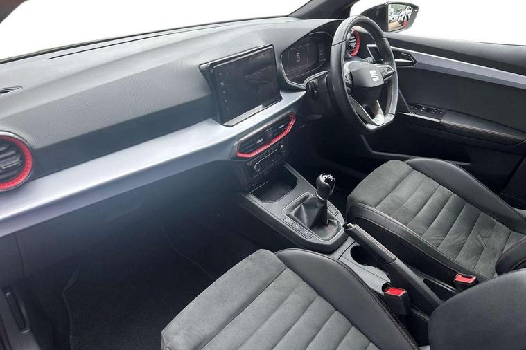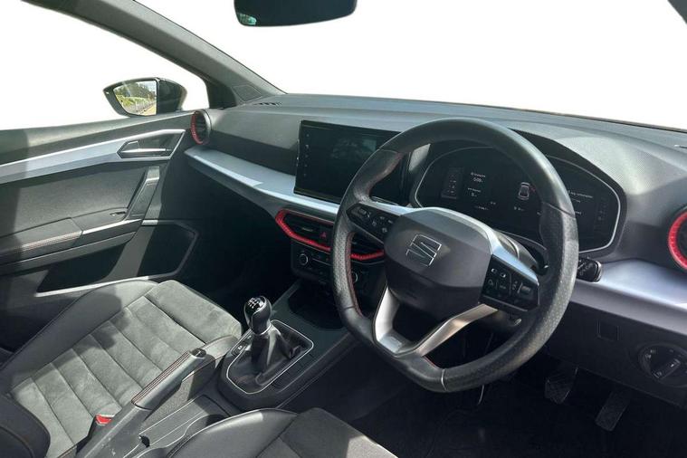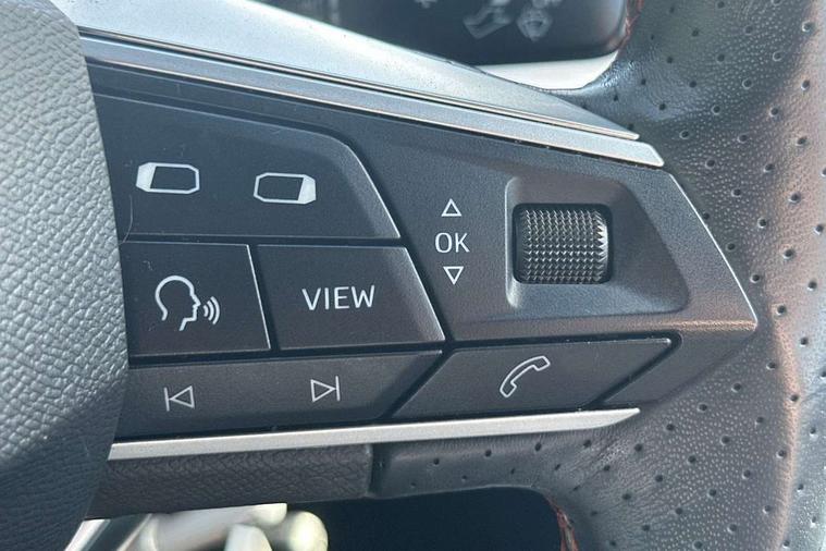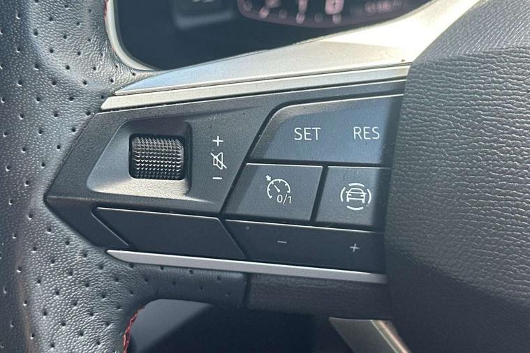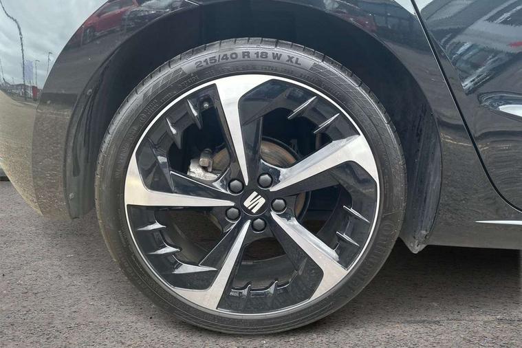 'Lights On' Reminder warning buzzer, 10" Digital cockpit, 9.2" touchscreen navigation system with type C USB socket, Voice control and DAB/AM/FM radio, Auto start and stop system, Bluetooth audio streaming with handsfree system, Digital clock, E-call, Full link smartphone integration with mirror link, wireless apple carplay, Google android auto + USB Type C cable for apple and android devices, Lane assist, Low fuel warning light, Outside temperature gauge, Power Steering, Seat connect with safety, service, remote and online, SEAT drive profiles and ECO function, SEAT logo boot release, Speed limiter, Trip computer, Sports suspension, Auxiliary input socket, Radio/MP3 player, SD card slot, Steering wheel mounted controls, Anti theft roof antenna, Auto dimming rear view mirror, Automatic rain sensing wipers, Black door mirrors, Body colour bumpers, Body colour door handles, Brilliant black window surrounds, Dark tinted rear windows, Electric adjustable/heated/folding door mirrors, Electric front windows, Electric headlight adjustment, Electric rear windows, Front/rear fog lights, FULL LED automatic headlights with dynamic headlight range control, coming and leaving home, LED daytime running lights, LED tail lights, Rear roof spoiler with FR twin exhausts, Rear side wing doors, Rear wiper, Third brake light, 3 seat bench in 2nd row, 60/40 split folding rear seat, Ambient interior lighting, Chrome detailing and black headlining, Comfort seats, Dual zone climate control with combination filter, Front courtesy lights, Front cupholders x 2, Front reading lights, Gear shift indicator, Glovebox, Height adjustable front and rear headrests (five), Height adjustable front seats, Height/reach adjust steering wheel, Illuminated air vent surrounds, Illuminated boot, Instrument lighting with brightness control, Isofix, Leather multifunction flat bottomed sports steering wheel, Microsuede cloth upholstery, Passenger sunvisor, Single front passenger seat, Storage pockets on back of front seats, Sunvisors with mirror and driver side card holder, 3 point seatbelts on all 3 rear seats, ABS, Active front headrests, Child locks on rear doors, Electronic stability control, Energy recovery system, Front assist forward collision warning and autonomous emergency braking, Front driver and passenger side airbags with curtain airbag and front passenger airbag deactivation, Hill hold control, Multi-Collision braking, Seat belt reminder for front and rear seats, Tiredness recognition system, Tyre pressure monitoring system, Electronic engine immobiliser, Locking wheel bolts, Perimeter alarm and interior monitoring with backup horn and tow away protection, Remote central locking + deadlocks, 18" Performance machined alloy wheels in black and grey,