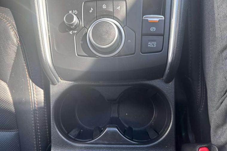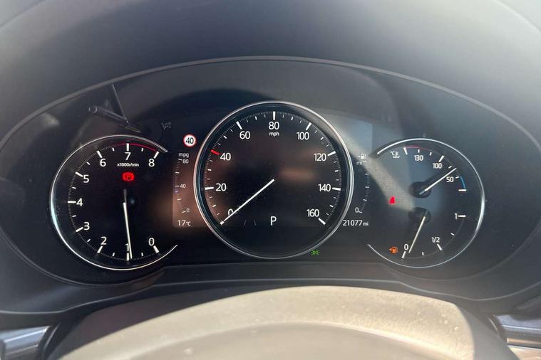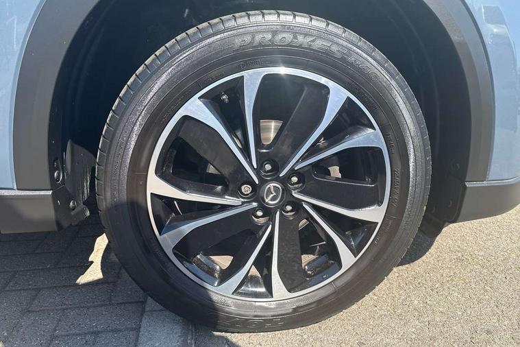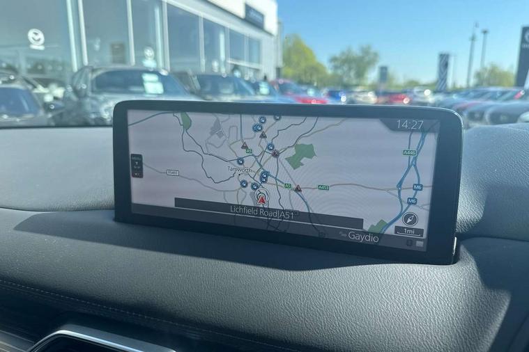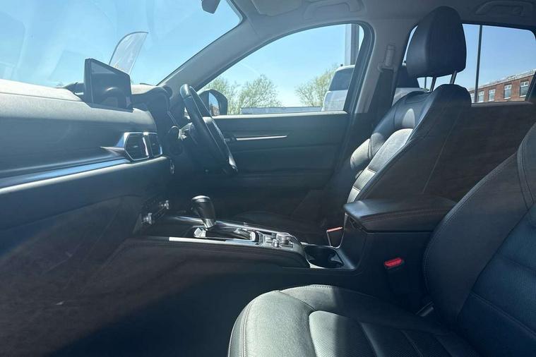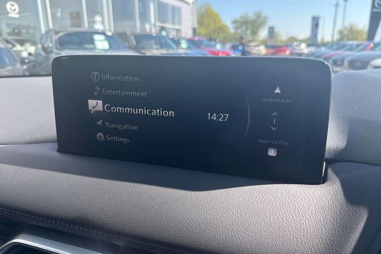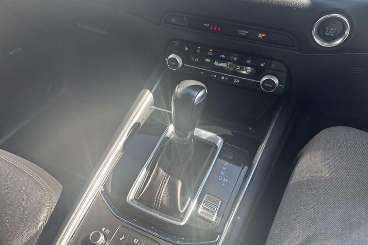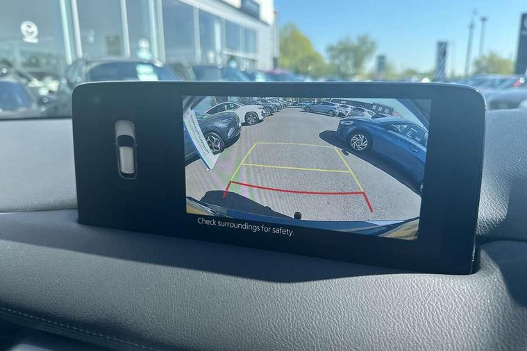 10.25" display with Mazda Connect infotainment, 7" colour TFT display, Advanced blind spot monitoring, Bluetooth connectivity with voice control, Collision prevention assist, Connected services, Cruising Traffic Support, Drive mode selector, Electric power steering, Emergency stop signalling system, Engine start/stop button, Forward collision warning, Front and rear parking sensors, Integrated navigation system, Intelligent speed assist, Lane departure warning system, Lane keep assist, Power liftgate, Qi wireless phone charging, Radar cruise control with Stop and Go, Rear cross traffic alert, Reversing camera, Service indicator, Traffic sign recognition (TSR), Trip computer, Windscreen projected colour active driving display (HUD) with memory, Wireless apple car play/android Auto, Cylinder Deactivation, i-stop, AM/FM radio, Bluetooth audio streaming, Bose premium sound system with 10 speakers, DAB Digital radio, Multimedia Commander including separate volume dial, Steering wheel mounted audio controls, Adaptive front lighting system, Auto dimming rear view mirror, Automatic headlights, Black inlay dashboard panel, Body colour door mirrors, Body colour roof spoiler, Body coloured front and rear black lower bumper mouldings, Coming/leaving home lighting function, Door mirror integrated indicators, Dual chrome tailpipes, Dusk sensitive headlamps, Electric front/rear windows with one touch auto up/down, Front grille in gloss black finish, Front grille in gloss black finish with chrome signature wing, Gloss black B and C pillars garnish, High beam assist, Intermittent rear wash/wipe, LED auto levelling, LED daytime running lights, LED front fog lights, LED Headlights, LED third brake light, Power folding and heated door mirrors, Power tilt/slide sunroof, Privacy glass (rear side windows only), Rain sensing front wipers, Rear side wing doors, Satin black side mouldings, Scuff plates, Shark fin antenna, Signature LED rear combination lights, Variable intermittent front wash/wipe, Vinyl with wood grain metal inlay door trim panel, Windscreen wiper de-icer, 12v electrical power outlet, 3 seat bench in 2nd row, 3 stage heated front seats, 40:20:40 Karakuri fold-flat seat system, 6 way electric adjustable passenger seat, 8 way electric driver seat with lumbar support + memory, Cargo room flat floor board with waterproof undertray, Driver seat power slide, recline and height adjustment, Driver, Front passenger and two rear grab handles with coat hooks, Driver/passenger front seatback pockets, Driver/passenger sunvisors + illuminated vanity mirrors (drivers with ticket holder), Dual zone climate control, Folding centre armrest with 2 cup holders, Front and rear door pockets, Front centre storage with two cupholders, Front passenger seat power slide, recline and height adjustment, Heated steering wheel, Humidity sensor, Illuminated glovebox, Interior dome light with integral spotlight, ISOFIX child seat anchorage points attached on outer rear seats, Karakuri tonneau cover, Leather upholstery, Leather wrapped steering wheel and gear knob, Light roof lining, Luggage compartment LED lighting, Luggage compartment power outlet, Paddle shifts, Rear air vents, Rear headrests, Rear seat recline, Roof mounted sunglasses holder, Single front passenger seat, Three height adjustable head restraints, Tilt/height adjustable steering wheel, USB Connectivity (2x front Type-C, 2x rear Type-B), White interior LED illumination lighting, 3 point front seatbelts with pre-tensioners, 3 rear 3 point seatbelts, ABS, Advanced Smart City Brake Support - SCBS, Child locks on rear doors, Driver and front passenger side airbags, DSTC-Dynamic Stability and Traction Control, Dual front airbags, Electronic brake force distribution, Electronic parking brake with auto hold, ESP, Front and rear curtain airbags, Front passenger airbag deactivation, G-Vectoring control, Hill hold assist, Seatbelt reminder front and rear, Single stage passenger airbags, Smart brake support with forward obstruction warning, Tyre pressure monitoring system, Automatic door locking when moving off, Deadlock, Immobiliser, Power door locks, Remote central locking, Smart keyless entry, Thatcham Cat.1 alarm, 19" diamond cut black alloy wheels, Tyre repair kit,
