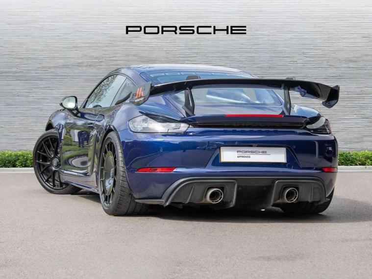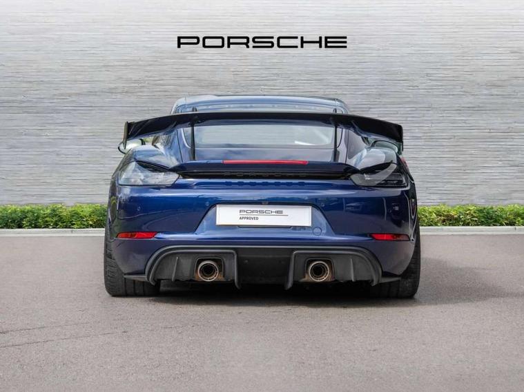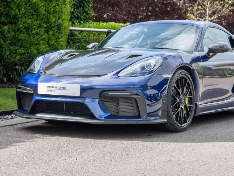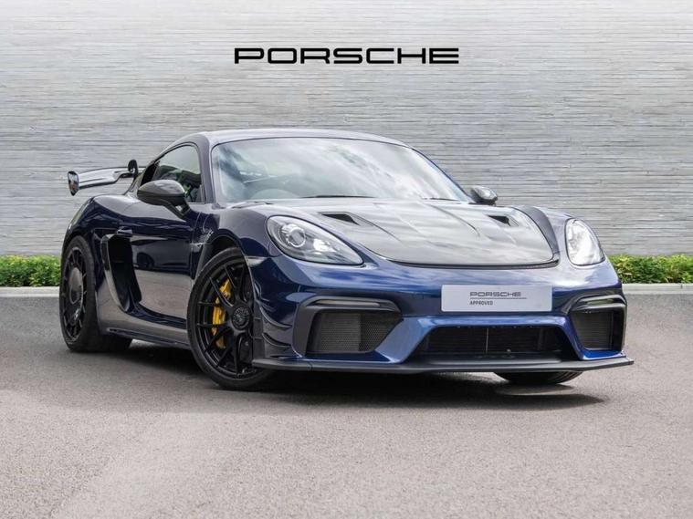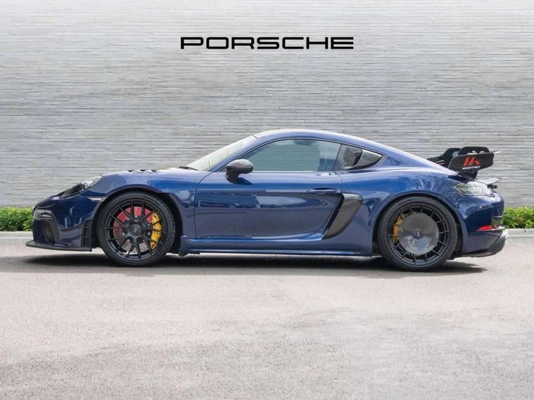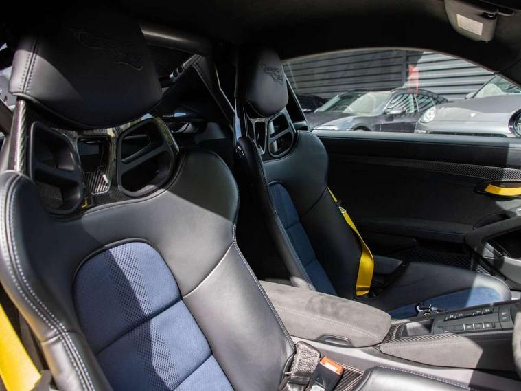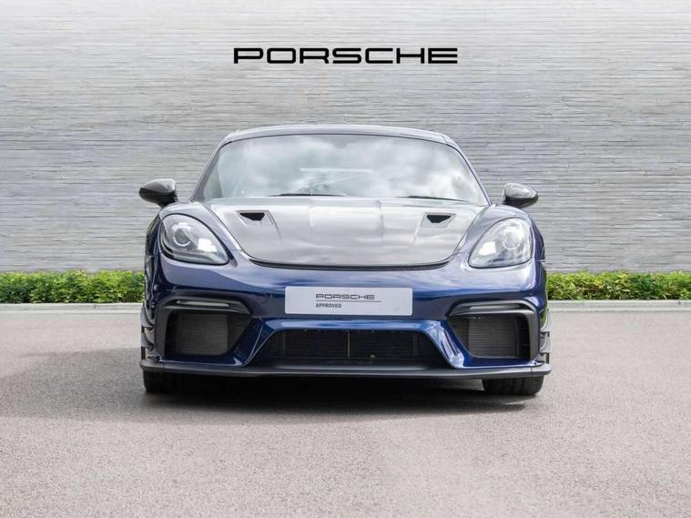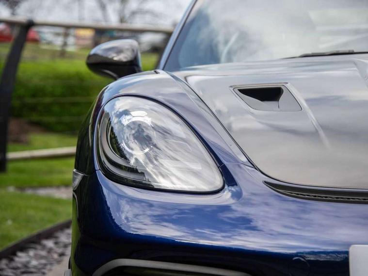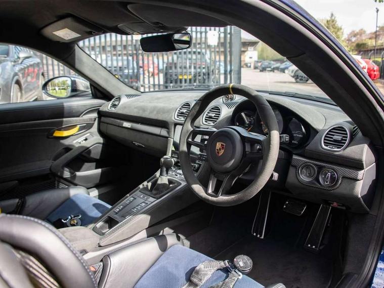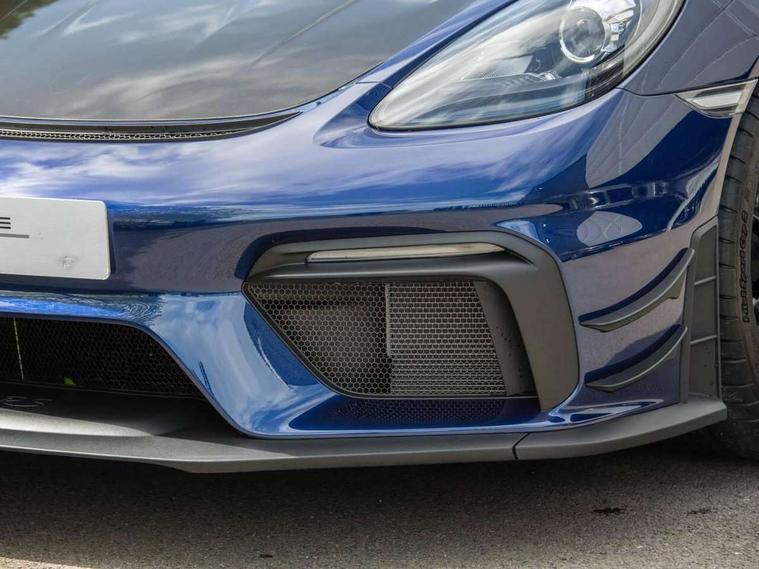 Auto start and stop system, Cruise control, Digital displays for vehicle speed, chosen gear, odometer, trip odometer and clock, eCall emergency call system, Electromechanical power steering with variable steering ratio and speed dependent steering assistance, Instrument cluster with central rev counter and high-resolution 4.6 inch colour display, Porsche track precision app, 64 litre fuel tank, Adjustable chassis for race track use (toe, camber, anti-roll bars), Adjustable race track chassis with RS specific spring rates and shock absorber tuning, Aluminium block and cylinder heads, Closed underbody panelling, Direct fuel injection (DFI), Dry sump lubrication with separate engine oil tank, Dynamic gearbox mount system, Electronically control damping system with 2 manual selectable Normal and Sport modes, Forged titanium connecting rods, Gasoline particulate filter, Oil supply with fully variable pressure oil pump, 7 suction stages, oil centrifuge and additional oil supply via crankshaft, Porsche Active Suspension Management (PASM) sport suspension with lowered 30mm ride height, Porsche Doppelkupplung (PDK) - 7 speed dual clutch transmission with manual control by steering wheel gearshift paddles and GT specific gear selector, Porsche stability management (PSM) including ABS with two switchable stages (ESC OFF and ESC+TC OFF), Porsche TORQUE Vectoring (PTV) with mechanical rear differential lock, Rear wheel drive, Two seater vehicle with mid mounted engine, Two three-way catalytic converters and on-board diagnostics for monitoring emission control system and coated particulate filter, Variable intake manifold with two switchable resonance valves, VarioCam Plus variable valve timing and switchable valve lift, Water cooled with thermal management, DAB Digital radio, Integrated 4G/LTE compatible SIM including data for the Porsche Connect Services, Integrated compatible SIM including Porsche Connect Services, Navigation incl porsche + Apple Carplay, connect module, wireless internet access, carfinder, remote vehicle status, remote service and vehicle track, USB interface in central storage compartment, Wifi and music streaming, Automatic headlight activation including welcome home lighting, Black side window trim, Body colour bumpers, Bonnet made of carbon fibre reinforced plastic (CFRP) in exterior colour with black NACA air inlets for brake cooling, Centre wheel bolts in black including wheel hub cover with RS logo in silver, Electrically adjustable heated exterior mirrors on door waist rails, aspherical on driver's side, Exclusive design fuel filler cap, Fixed rear spoiler, Flow optimized stainless steel lightweight sports exhaust system with 2 tailpipes made of stainless steel in high gloss black, Front apron with large cooling intakes with grilles and spoiler lip with recessed GT4 RS logo in black and central air outlet, Front wheel arches made of carbon fibre reinforced plastic (CFRP) in exterior colour including wheel arch ventilation in black, Green tinted heat insulating glass, Grey top tinted windscreen, Heated rear windscreen, Intelligent lightweight body in Aluminium/Steel composite construction, LED 3rd brake light, LED tinted taillights and integral 4-point brake lights and reversing lights, Porsche logo in accent trim on rear apron painted in satin black, Power windows with one touch operation and door seal protection, Rain sensor, Rear apron lower part in black with diffuser including fins, Rear boot, Separate tinted auxiliary lights in the front end with LED indicators and position lights, Side air intakes with one grille, sideblades including GT4 RS logo in black synthetic, Variable intake system with two switchable resonance flaps and six individual throttle valves, Wide opening rear hatch with rear screen made of lightweight glass, Windscreen washer system with aero wiper blades and washer jets, 12V sockets in passenger footwell, Adjustable fan with air recirculation and defroster functions, Airbox cover with GT4 RS logo in silver and black, Ascending centre console with uncovered storage compartment and closed storage compartment, Footwell illumination, Front and rear luggage compartments, Front headrests, Heated seats, LED reading lights, orientation, ignition lock, additionally luggage compartment and glove compartment lighting, Lightweight door panels with storage net in black and opening loops in arctic grey, Lockable glovebox, PDK gear changer lever with manual alley, grip area and shiift gaiter in Race tex, shift pattern in racing yellow, Race-Tex roof lining and A pillar trims, RS sport steering wheel, Single front passenger seat, Sports look pedal and footrest with stainless steel surround in matt brushed, Storage compartments in each doors, Two individual cup holders (Passenger side, integrated into dashboard trim strip), Two zone automatic climate control, Carbon interior pack in satin finish - Cayman, Interior pack with items in leather and Race-tex - Cayman, ASR, Electrically controlled parking brake, Front seatbelt pretensioners + load limiters, Full size driver and passenger airbags, Lightweight spring strut axle front/rear, McPherson front axle + lightweight springs incl helper, anti-roll bar, all suspension mountings ball jointed, Passenger airbag deactivate switch, Porsche side impact protection doors with thorax airbag in outer backrest side bolster and head airbag for driver/passenger in door panel, Tyre pressure monitoring system (TPM) with track mode, Alarm system with interior surveillance, Dashcam preparation, Engine immobiliser with in key transponder, central locking and remote control, Tyre repair kit,