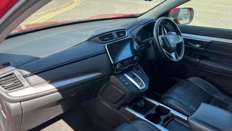 Adaptive cruise control, Agile handling assist, BLIS (Blind Spot Information System) with dual power heated blind spot mirrors, Bluetooth hands free telephone connection, Economy mode, Electric power steering, Emergency stop signalling system, Forward collision warning, Front and rear parking sensors, Hands free tailgate, Head up Display, Honda CONNECT with GARMIN Navigation + 7" touchscreen, DAB radio, Apple CarPlay, Android Auto, Aha app integration and internet browsing, Intelligent multi info display, Lane departure warning system, Lane keep assist system, Low speed following, Rear view camera, Road departure mitigation, Speed limiter, Traffic sign recognition, Vehicle stability assist, 2 USB sockets in rear, 2x USB sockets in front, 8 Speakers, DAB Digital radio, Steering wheel mounted controls, Subwoofer, Aspheric door mirrors, Auto dimming rear view mirror, Automatic headlights with dusk sensor, Body colour bumpers, Body colour door handles, Cornering light, Door mirrors tilt when reversing, Electric front windows/one touch facility, Electric rear windows + one touch facility, Electrically adjustable and heated door mirrors, Electrically retractable door mirrors, Front windscreen de-icer, High beam assist, LED daytime running lights, LED front fog lights, LED Headlights, LED rear lights, Panoramic opening glass sunroof, Rain sensor, Rear privacy glass, Rear wiper, Roof rails, Shark fin roof aerial, Welcome home function, 60/40 split folding rear seat, 8 way electrically adjustable drivers seat + mirror memory, Accessory sockets, Ambient interior lighting, Ambient light in roof, AWD emblem rear, Cargo hooks, Courtesy lights, Driver's electric adjustable lumbar support, Driver/passenger front seatback pockets, Driver/passenger sunvisors with illuminated vanity mirrors, Dual zone automatic climate control, Electric lumbar adjustment on passenger's seat, Footwell ambient lighting, Front centre armrest, Front map lights, Front passenger seat height adjust, Heated front seats, Heated rear seats, Heated steering wheel, Hybrid emblem, Illuminated glovebox, Instrument panel with garnish wood film, Isofix child seat preparation, Leather steering wheel, Leather upholstery, Paddle shift controls, Rear air vents, Rear centre armrest, Rear headrests, Rear reading lights, Silver interior door handles, Sunglasses holder with mirror, Tilt/telescopic adjustable steering wheel, Tonneau cover, Trunk light, 5 x 3 point seatbelts, ABS/EBD, Anti-whiplash front headrests, Brake assist function, Collision mitigation braking system, Deflation detection system, Driver airbag, Electronic parking brake with auto hold, Front and rear curtain airbags, Front side airbags, Hill start assist, Passenger airbag deactivate switch, Honda super locks, Immobiliser, Remote keyless entry, Security alarm, Ultrasonic sensor and tilt sensor, Tyre repair kit,