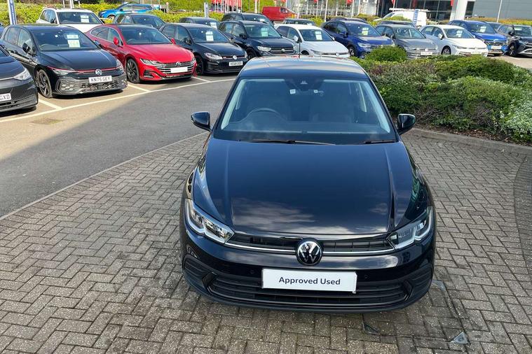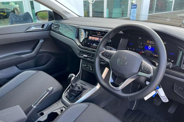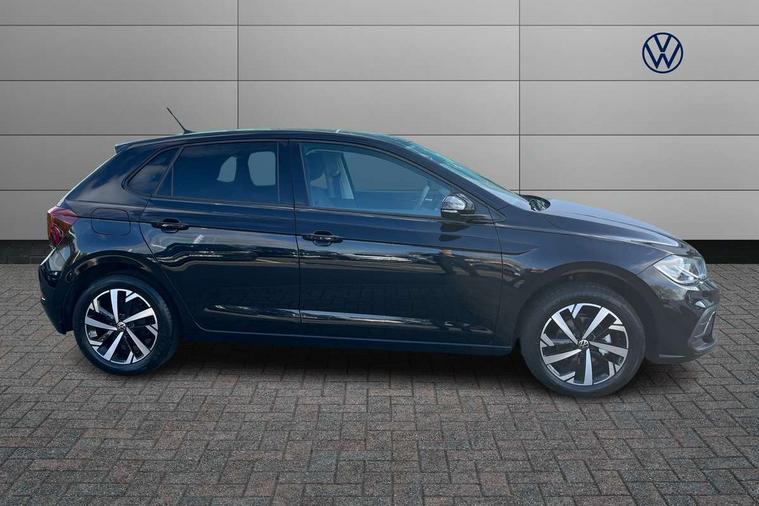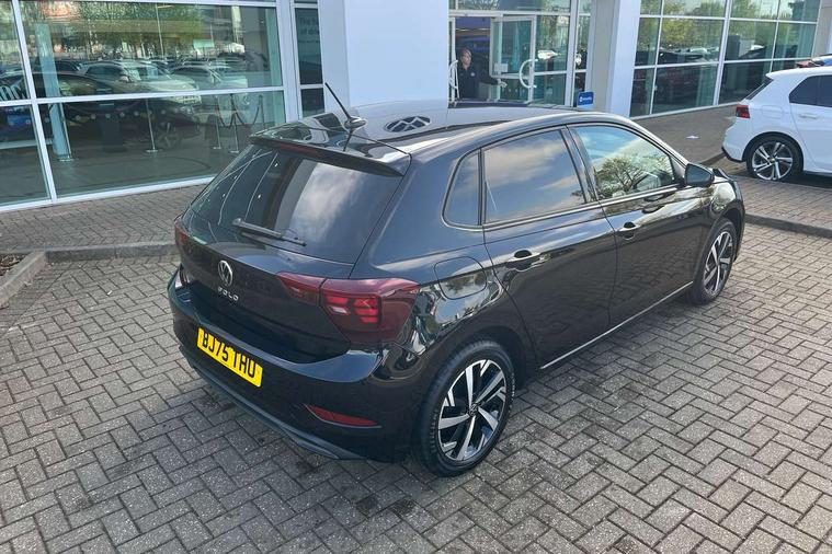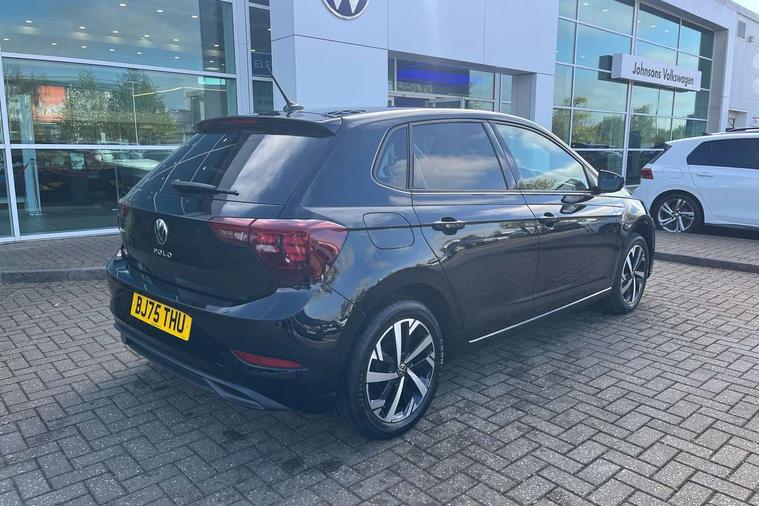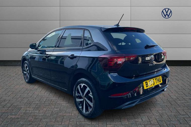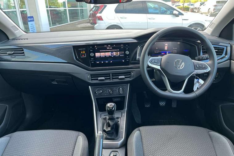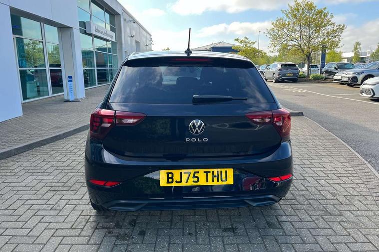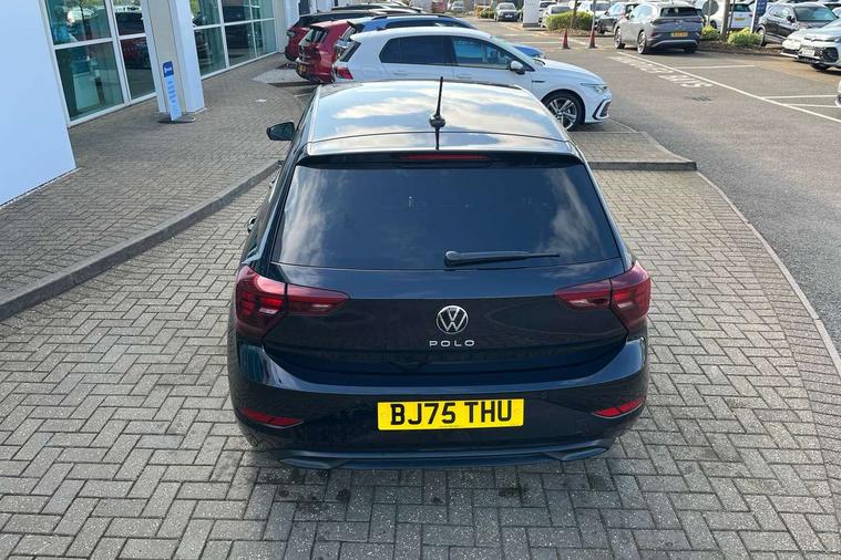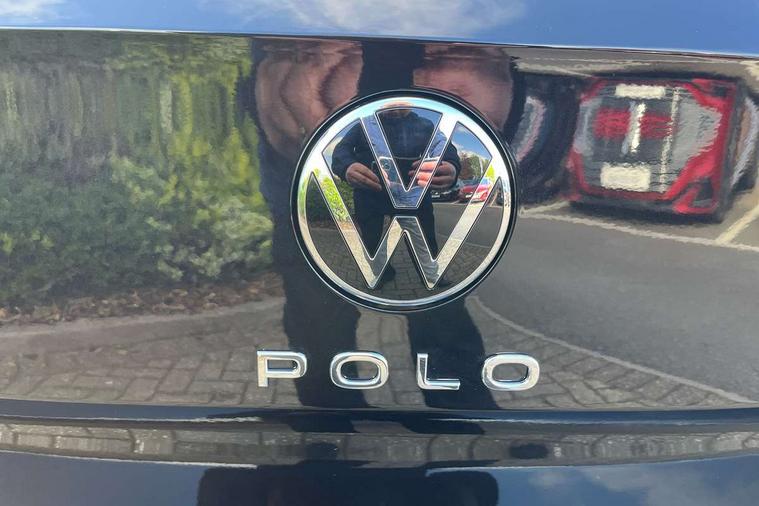Adaptive cruise control without follow-to-stop and speed limiter, Advanced driver attention and drowsiness monitor, Bluetooth mobile phone interface, Dynamic road sign display, Emergency call service, Mobile phone preparation with inductive charging function, Multifunction front facing camera for distance control, Power assisted speed sensitive steering, Preparation for navigation system with media and internet package, Preparation for We connect and We connect plus, Rear view camera, Speedo and rev counter, electronic odometer, trip, service interval display and exterior temperature gauge, Standard rear axle, Travel Assist - Lane keeping system and traffic jam assist, Travel assist including emergency assist, Trip computer, Warning signal and warning light for front and rear seatbelts not fastened, Washer fluid level indicator, Wireless app connect, Front wheel drive, Rear shock absorpion, Start-stop system with battery regeneration (recuperation - energy recovery during braking), DAB Digital radio, Diversity antenna for FM reception, Automatic dimming interior rear view mirror, Automatic headlight control with LED separate daytime running lights with coming/leaving home function, Body colour bumpers with chrome inserts, Body colour door handles, Body colour door mirrors, Electric front windows, Engine badge deletion, Headlight range adjustment, Heat insulating and laminated safety glass windshield, LED Headlights, LED rear combination lamps, Power folding adjustable/heated exterior mirrors and front passenger exterior mirror lowering function, Rain sensor, Rear electric windows, Rear fog light, Rear side wing doors, Rear tinted glass from B-pillar backwards approx 65% tinted, Rear windscreen washer and wiper with interval delay, Third brake light, 12V power socket in centre console, 2 front and 2 rear reading lights with switch off delay and dimmer, 2 USB-C ports in the front, 2 USB-C charging sockets on the center console in the rear, 3 rear head restraints, 60/40 split folding rear seat and rear seat bench not split, Carpet mats, front and rear, Ceramique roof lining, Chrome plated radiator grille inserts, air vent surrounds and light switch surrounds, Door and side trim panel, Driver and front passenger seat height adjustment, Driver/passenger sunvisors with illuminated vanity mirrors, Front centre armrest, Front seat backrest storage pockets, Front standard seats, Handbrake lever handle in leather, Hartley/Thomas cloth upholstery, Headliner in recycled material, Isofix child seat preparation easy-fit (for two outer rear seats, and front passenger seat) compatible with I-size, Leather trimmed gear knob, Luggage compartment cover, Luggage compartment lighting, Removable luggage compartment floor, Single front passenger seat, Standard climatic zones, Standard pedal cluster, Three spoke leather wrapped multifunction steering wheel, Light and vision pack - Polo, 3 point height adj front seatbelts + pretensioners, 3 point seat belt for centre rear seat, 3 point seatbelts, outer rear with ECE lable, ABS, Driver and front passenger airbag with front passenger airbag deactivation, Drivers and front passengers safety optimised head restraints, ESC (Electronic stability control) + EDL (Electronic Differntial lock) and ASR (Traction control), Extended and predictive pedestrian/ cyclist protection, Front assist with autonomous emergency braking (for Adaptive Cruise Control ACC up to 130 mph), Front curtain and side airbags with center airbag, Front disc brakes, Hill hold control, Manual child lock in rear doors, Rear drum brakes, Single tone horn, Tyre pressure loss indicator, Alarm with interior protection, Anti-theft alarm system with interior monitoring, backup horn, and towing protection, Anti-theft wheel bolts, Electronic engine immobiliser, Lava stone black gloss/matt decorative inserts in dash and front door panels, 16" Torsby alloy wheels, Low rolling resistance tyres,