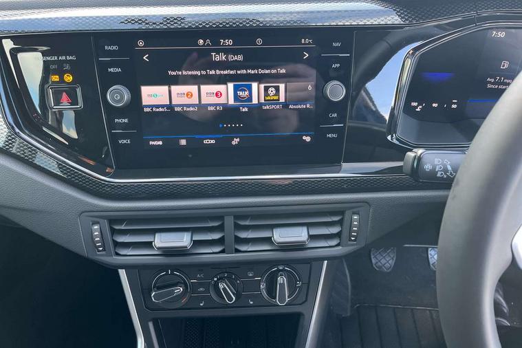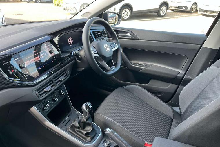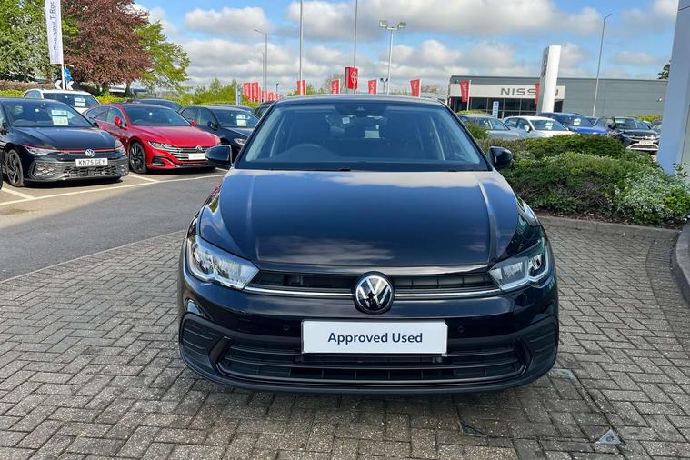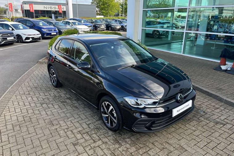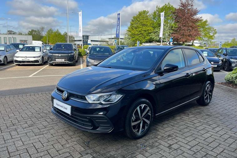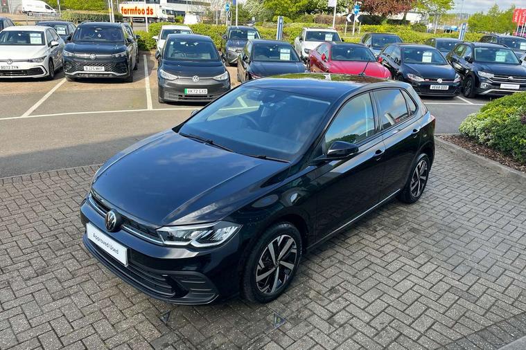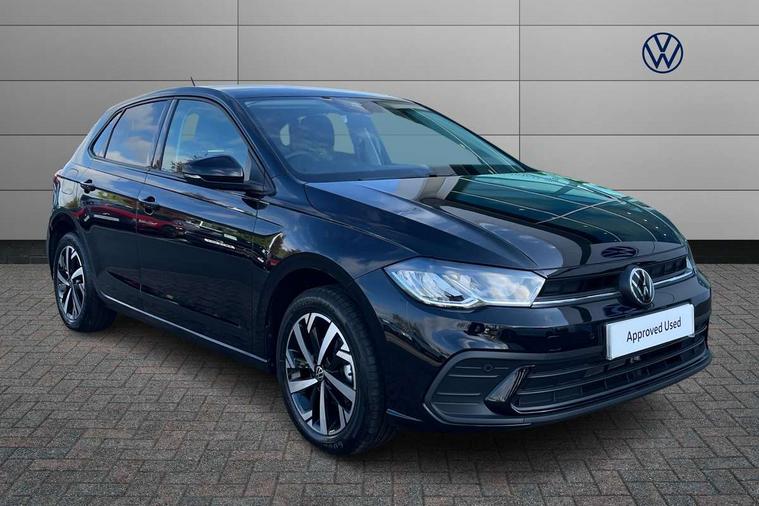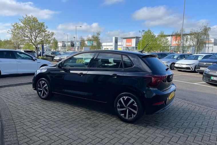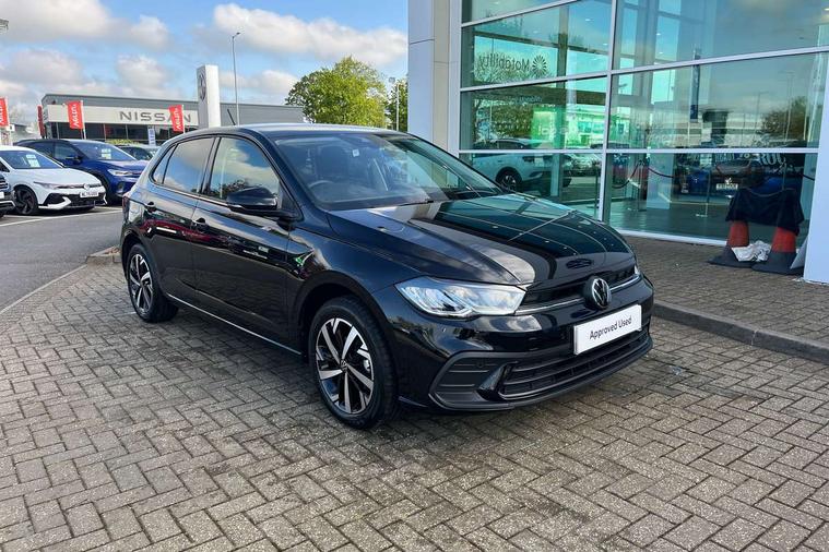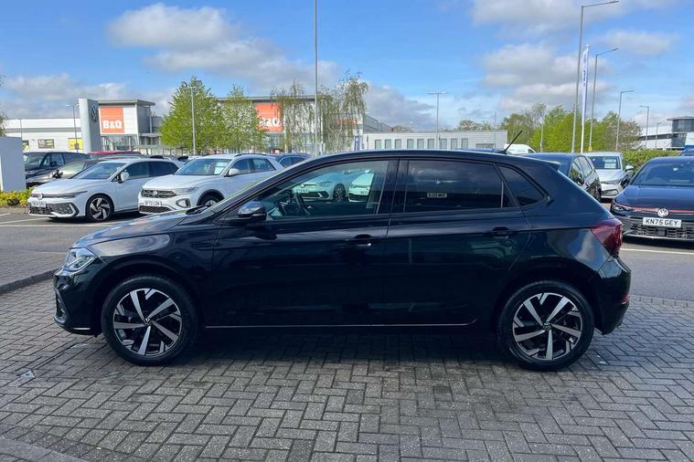Adaptive cruise control without follow-to-stop and speed limiter, Advanced driver attention and drowsiness monitor, Bluetooth mobile phone interface, Dynamic road sign display, Emergency call service, Mobile phone preparation with inductive charging function, Multifunction front facing camera for distance control, Power assisted speed sensitive steering, Preparation for navigation system with media and internet package, Preparation for We connect and We connect plus, Rear view camera, Speedo and rev counter, electronic odometer, trip, service interval display and exterior temperature gauge, Standard rear axle, Travel Assist - Lane keeping system and traffic jam assist, Travel assist including emergency assist, Trip computer, Warning signal and warning light for front and rear seatbelts not fastened, Washer fluid level indicator, Wireless app connect, Front wheel drive, Rear shock absorpion, Start-stop system with battery regeneration (recuperation - energy recovery during braking), DAB Digital radio, Diversity antenna for FM reception, Automatic dimming interior rear view mirror, Automatic headlight control with LED separate daytime running lights with coming/leaving home function, Body colour bumpers with chrome inserts, Body colour door handles, Body colour door mirrors, Electric front windows, Engine badge deletion, Headlight range adjustment, Heat insulating and laminated safety glass windshield, LED Headlights, LED rear combination lamps, Power folding adjustable/heated exterior mirrors and front passenger exterior mirror lowering function, Rain sensor, Rear electric windows, Rear fog light, Rear side wing doors, Rear tinted glass from B-pillar backwards approx 65% tinted, Rear windscreen washer and wiper with interval delay, Third brake light, 12V power socket in centre console, 2 front and 2 rear reading lights with switch off delay and dimmer, 2 USB-C ports in the front, 2 USB-C charging sockets on the center console in the rear, 3 rear head restraints, 60/40 split folding rear seat and rear seat bench not split, Carpet mats, front and rear, Ceramique roof lining, Chrome plated radiator grille inserts, air vent surrounds and light switch surrounds, Door and side trim panel, Driver and front passenger seat height adjustment, Driver/passenger sunvisors with illuminated vanity mirrors, Front centre armrest, Front seat backrest storage pockets, Front standard seats, Handbrake lever handle in leather, Hartley/Thomas cloth upholstery, Headliner in recycled material, Isofix child seat preparation easy-fit (for two outer rear seats, and front passenger seat) compatible with I-size, Leather trimmed gear knob, Luggage compartment cover, Luggage compartment lighting, Removable luggage compartment floor, Single front passenger seat, Standard climatic zones, Standard pedal cluster, Three spoke leather wrapped multifunction steering wheel, Light and vision pack - Polo, 3 point height adj front seatbelts + pretensioners, 3 point seat belt for centre rear seat, 3 point seatbelts, outer rear with ECE lable, ABS, Driver and front passenger airbag with front passenger airbag deactivation, Drivers and front passengers safety optimised head restraints, ESC (Electronic stability control) + EDL (Electronic Differntial lock) and ASR (Traction control), Extended and predictive pedestrian/ cyclist protection, Front assist with autonomous emergency braking (for Adaptive Cruise Control ACC up to 130 mph), Front curtain and side airbags with center airbag, Front disc brakes, Hill hold control, Manual child lock in rear doors, Rear drum brakes, Single tone horn, Tyre pressure loss indicator, Alarm with interior protection, Anti-theft alarm system with interior monitoring, backup horn, and towing protection, Anti-theft wheel bolts, Electronic engine immobiliser, Lava stone black gloss/matt decorative inserts in dash and front door panels, 16" Torsby alloy wheels, Low rolling resistance tyres,