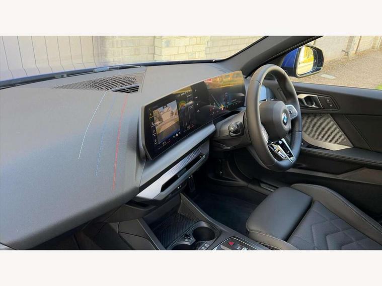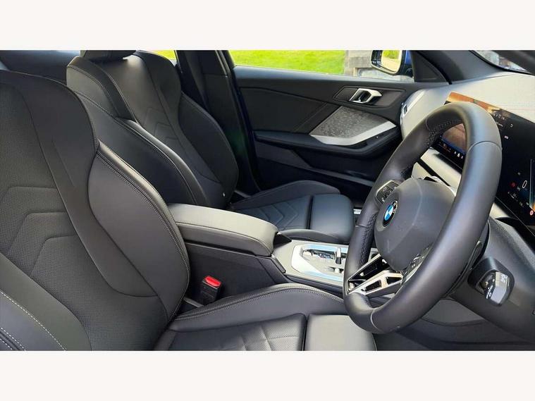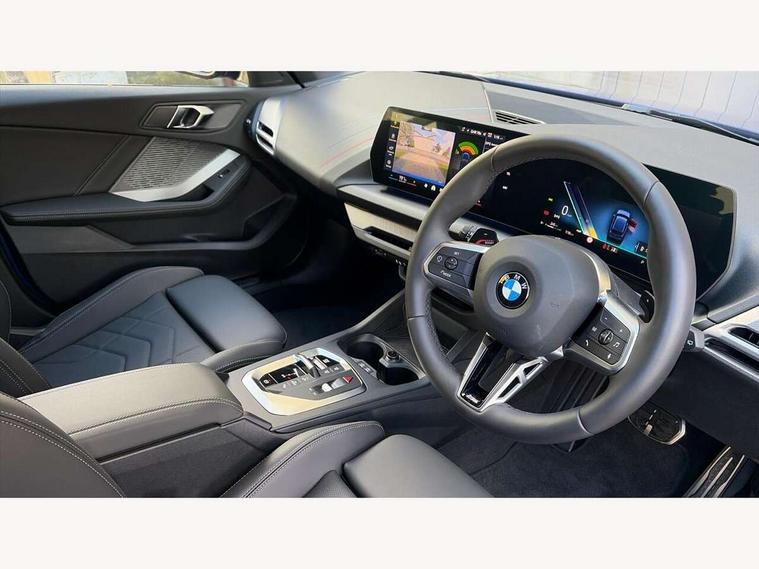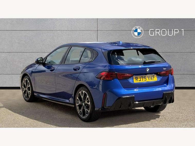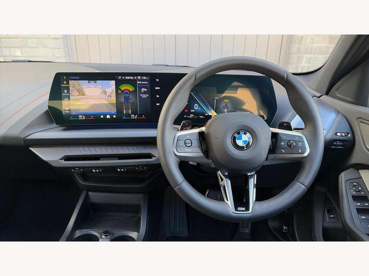 Active guard plus, Attentiveness assist, Bluetooth / WiFi interface for wireless connection of mobile terminal devices and audio streaming, BMW ConnectedDrive online services, BMW Live cockpit plus, BMW Teleservices, Check Control warning system for monitoring of lights and door/luggage compartment open warning, Eco pro mode, Electric power steering with Servotronic steering optimised at all speed ranges, Evasion assistant, Flat airvents in instrument panel with adjustable slats, Front and rear parking sensors, Front axle single joint with specific axle kinematics to minimise drive influences on steering + provide increased rigidity agile driving behaviour, Gearshift time display in manual mode, Integrated owners handbook, Left turn warning with brake function, My modes (Personal / Efficient / Sport), Oil sensor for level and grade, On board computer, Optimum shift indicator, Park assist including reversing assistant, lateral parking aid and reversing assist camera, Personal e-SIM, Personal Profile, Pull away assistant, Rigidly mounted rear subframe - Multi link construction with separate spring / damper configuration and excellent driving characteristics, Speed limit Info including no-overtaking indicator, Speed limiter, 49 litre fuel tank, Aluminium lightweight construction, Anti roll bar front and rear, Balancer shaft, Double VANOS twin scroll turbocharging system, Drive Performance Control, Electronic differential lock, Electronic selector lever, High precision injection, M Adaptive suspension, Petrol Particulate Filter, Steptronic transmission with double clutch, Twin tube gas filled shock absorbers with degressive characteristic curve, VALVETRONIC engine management, DAB Digital radio, Auto dimming rear view mirror, Automatic windscreen wipers and automatic headlight, Body colour door handles, Body colour roof trims, Chrome 'M' logo side designation, Chrome exhaust twin tailpipes round 90mm in left, Chrome kidney grille frame with Satin Aluminium struts, Direction indicator side lights in exterior mirrors, Electrically adjustable exterior mirror with mirror adjustment switch on drivers armrest and aspheric on driver side, convex on passenger side, Exterior M sport design elements, Fading support, Folding side mirrors with auto dimming/folding wing mirrors with auto dimming, Follow me home headlights, Front and rear bumper system with replaceable deformation elements, Front and rear electric windows with open and close fingertip control, anti trap facility and comfort closing, Front bumper panel with M specific design in vehicle colour with inserts in black high gloss, Front door sill finishers in black plastic with M designation in metallic look, Green tinted heat protection glazing, Heated rear window, High gloss black exterior mirrors, High gloss shadowline window frame, Recess cover mirror frames and B/C pillar embelisher trim, High level third brake light, Integrated front windscreen with washer jets, LED daytime running lights, LED eyebrow turn indicators, LED front fog lights, LED Headlights, Lightweight engineering, Matt black air guide grilles, Matt black wheel arch trim, Model badge on tailgate right, Nearside reverse light in rear light cluster, Preparation for high beam assistant, Rain sensor, Rear bumper panel with M-specific design in vehicle colour with inserts in black high gloss, Rear fog lights, Rear side wing doors, Rear window wiper, Shark fin antenna, Side sill covers with M specific design in body colour, Trailer stabilisation logic, Visible VIN plate, Welcome lighting, 12V power socket in front centre console with blanking plug, 3 rear seat head restraints, 3 seat bench in 2nd row, 3 spoke sports leather steering wheel with black leather and stitching, pearl chrome decorative finish, specific M Badge, Anthracite front and rear floor mats, Anthracite headlining, Black boot net with lashing eyes, Cargo function on 2nd seat row, Child seat ISOFIX attachment for two outer rear seats and front passenger seat with anchorage points, Conditioned based service, Driver and front passenger backrest net on rear, Driver and front passenger seat heating, Driver side folding compartment in instrument panel, Dual zone automatic air conditioning with extended contents, Folding rear clothes hook, Footrest and pedals in black plastic, Four grab handles integrated in roof lining, Front and rear door pockets with bottle holders, Front and rear side armrest integrated into door trim, Front armrest with storage compartment, Gearshift paddles on steering wheel, Glove compartment, Height adjustable front head restraints, Luggage compartment for bag hooks on left and right, foldable luggage compartment liner and four lashing eyelets, Manual adjust steering wheel, Multi-function controls for steering wheel, Rear seat backrest with manual 60:40 split folding with 3 top tether clips integrated on rear of seat panels, Single front passenger seat, Storage compartment in centre console, Storage compartment in luggage compartment, Stowage of the parcel shelf in luggage compartment trim, Sun visors with vanity mirrors and insert tab, Two front centre console cupholders, Type C two USB ports in rear centre console, Upper retaining strap integrated into backrest rear panels, Connected pack professional - 1 Series, Interior lights pack - 1 Series, M Sport exterior styling aerodynamics pack - 1 Series, 2 tone horn, 3 point seatbelts on all seats, front pyrotechnic belt tensioners, stopper and belt force limiters, rear coded belt buckles, Airbags - Front driver/passenger, front and rear curtain head protection, front side, manual deactivation of front passenger airbag, Anti lock braking system (ABS) with brake assist, BMW emergency call, Brake drying, Braking readiness, Child proof locking system in rear door, Comfort modes, Cornering brake control, Crash sensor activating of airbags, Unlocking doors, hazard warning lights, interior light, safety battery terminal, Driver and front passenger seat bel