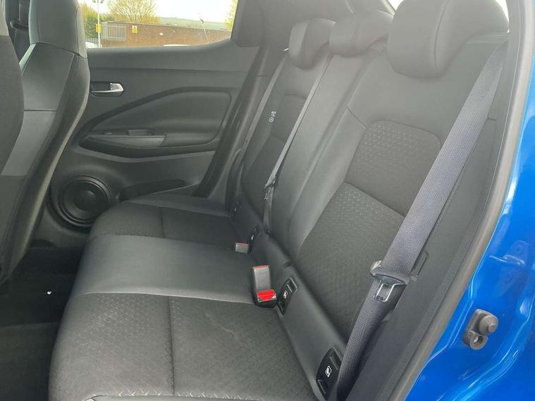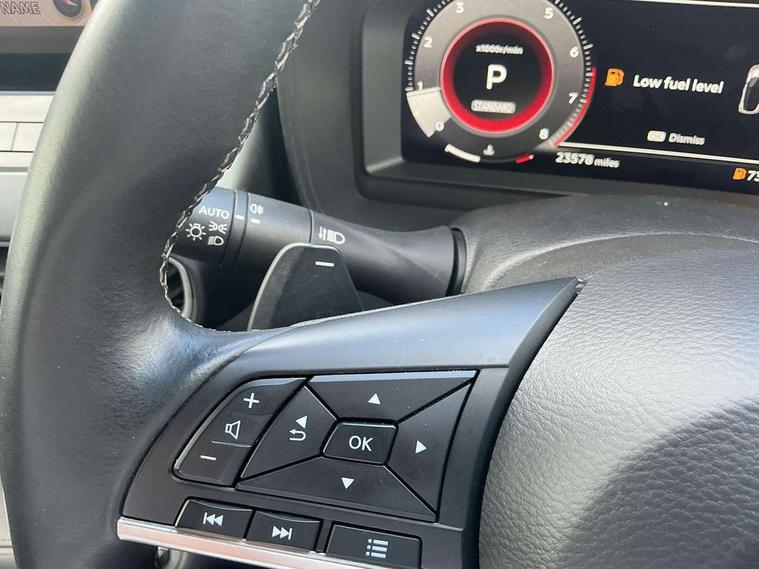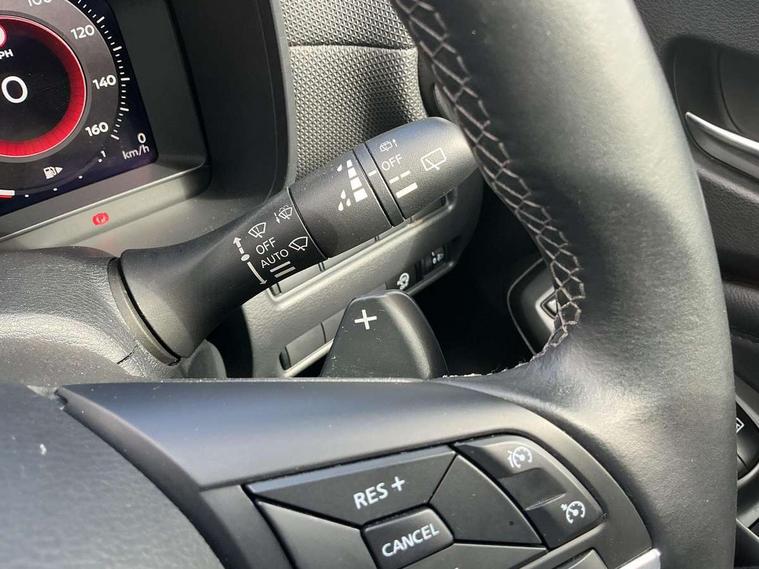 12.3" full colour TFT screen combimeter, Drive modes select (Eco, normal and sport), Emergency and breakdown call, Front parking sensor, Idle start/stop system, Intelligent driver alert system, Intelligent lane intervention, Lane departure warning system, Nissan connect 12.3" touch screen entertainment system, Nissan connect nav with TomTom traffic, Nissan connect services and Wifi connection, Outside temperature sensor, Power Steering, Rear parking sensor, Stop/start button, Traffic sign recognition, Trip computer, Voice recognition, Wireless Apple CarPlay and Google Android auto, Wireless Smartphone charger, 2 X Rear console USB port, 6 speakers, Bluetooth system, USB, Aux-in and 12V socket, DAB Digital radio, Auto dimming frameless rear view mirror, Automatic hazard signal with emergency stop signal, Body colour door handles, Electrically adjustable door mirrors with integrated indicators, Follow me home headlights, Front and rear electric window with one touch driver window, Heated and auto folding door mirrors, High beam assist, LED 3rd brake light, LED daytime running lights, LED headlamps, LED rear fog lamp, LED rear lamps, One touch passenger window, Rain sensor windscreen wipers, Rear privacy glass, Rear side wing doors, Rear wiper, Roof spoiler, Shark fin roof antenna in solid Black, Three blink turn signal, 3 height adjustable rear headrests, 3 seat bench in 2nd row, 60/40 split folding rear seat, Automatic climate control, Card holder on driver sunvisor, Cloth/Synthetic leather with melange fabric inserts, Driver side rear coat hanger, Driver/passenger sunvisors and vanity mirrors, Front and rear cabin lights, Front armrest, Front door pockets with bottle holders, Front head restraints, Front/rear passenger grab handles, Height adjustable driver's seat, Internal chrome door handles, Leather gearshift knob, Leather steering wheel, Luggage board, Luggage space lighting, Monoform sporty seats, Multifunction steering wheel, Rear door bottle holders, Single front passenger seat, Steering wheel mounted gearshift paddles, Synthetic leather kneepad, Telescopic steering wheel adjustment, Two cupholders in front centre console, Two rear isofix child seat anchorage points with top tether, Welcome light and console tray ambient lighting, ABS with EBD and brake assist, Active ride control, Active Trace Control, Driver and passenger airbags, Driver and passenger side airbags, Electric handbrake with auto hold function, Electronic Stability Programme (ESP), Front and rear curtain airbags, Height adjustable seatbelts, Hill start assist, Intelligent emergency braking with pedestrian and cyclist recognition, Rear door child safety locks, Seatbelt reminder for driver/front passenger and rear seats, Three 3 point rear seatbelts, Traction control, Tyre pressure monitoring system, VDC Dynamic Vehicle Control, Alarm, Immobiliser, Intelligent key and start push button with walk away lock and approach unlock functions, Remote central locking, 17" Alloy wheels,