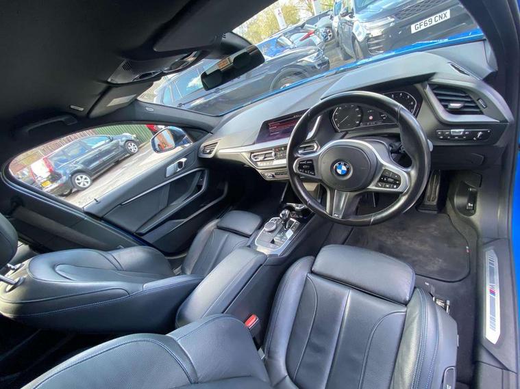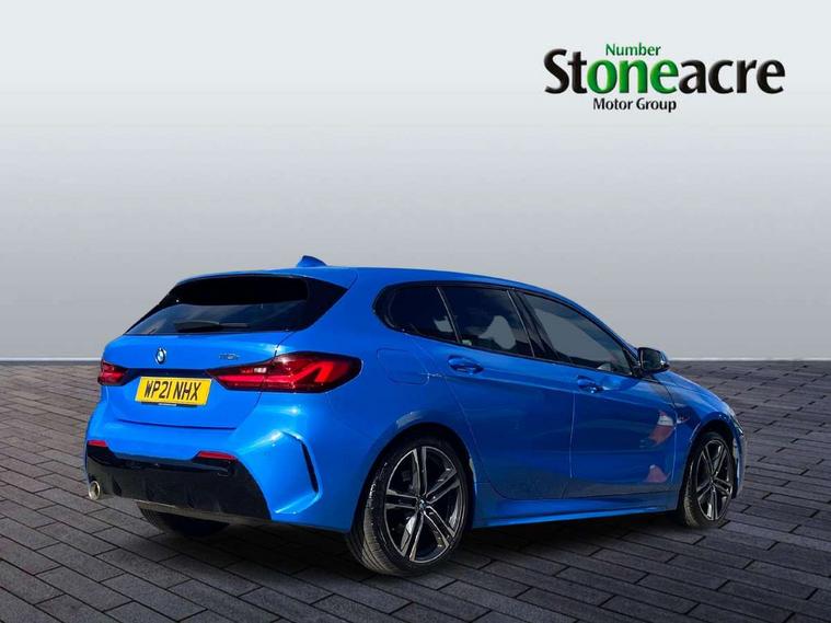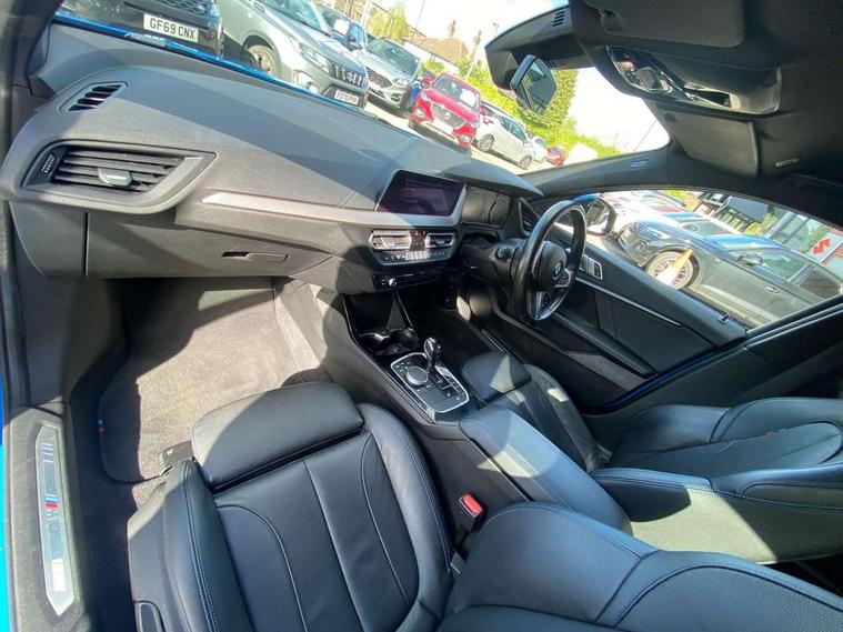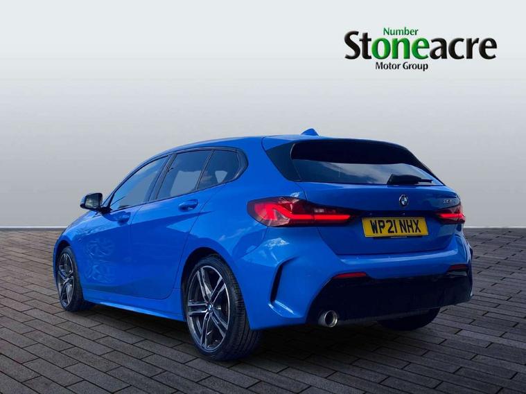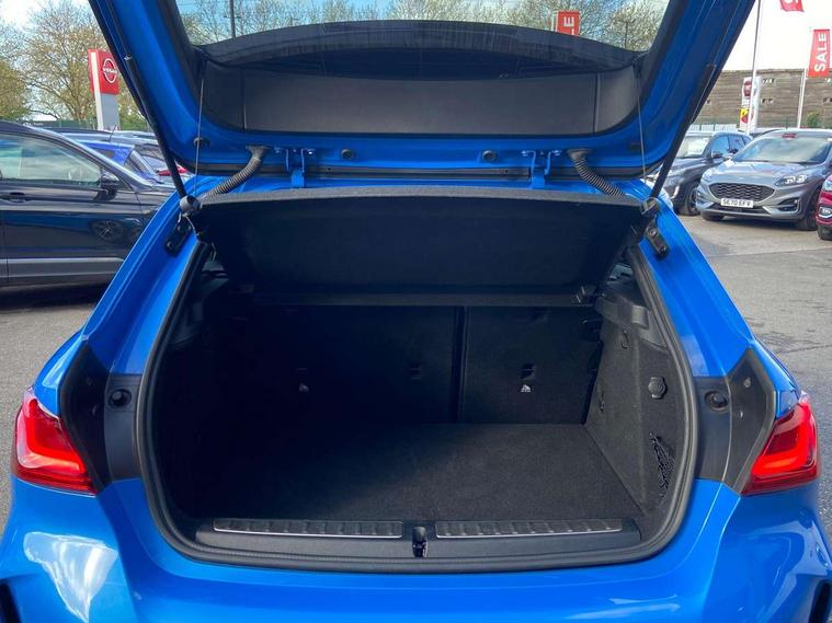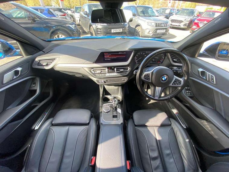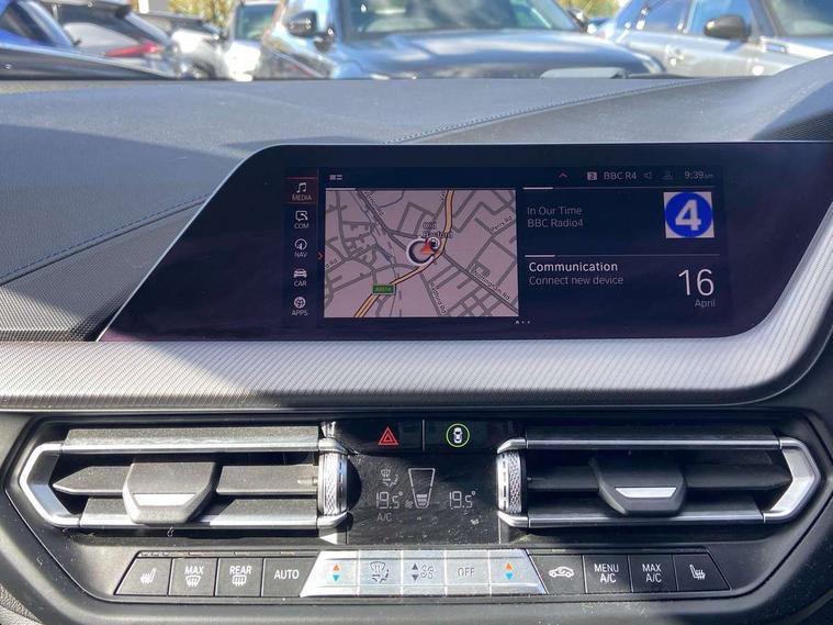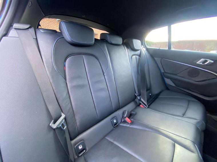 Active guard plus, Attentiveness assist, BMW Online services, BMW Teleservices, Check Control warning system for monitoring of lights and door/luggage compartment open warning, Connected eDrive Services, Eco pro mode, Electric power steering with Servotronic steering optimised at all speed ranges, Integrated owners handbook, Oil sensor for level and grade, On board computer, Optimum shift indicator, Personal Profile, Pull away assistant, Speed limiter, Aluminium lightweight construction, Anti roll bar front and rear, Balancer shaft, Double VANOS, Drive Performance Control, Electronic differential lock, High precision injection, M sports suspension + self levelling, Petrol Particulate Filter, VALVETRONIC engine management, Bluetooth audio streaming, DAB Digital radio, Auto dimming rear view mirror, Automatic headlight beam throw control, Body colour door handles, Body colour mirror caps, Chrome 'M' logo side designation, Chrome exhaust tailpipe in single, round (Exhaust tailpipe, stainless steel - single, round), Chrome kidney grille frame with Satin Aluminium struts, Direction indicator side lights in exterior mirrors, Electric folding and anti dazzle exterior mirrors, Fading support, Follow me home headlights, Front and rear electric windows with open and close fingertip control, anti trap facility and comfort closing, Front door sill finishers in black plastic with BMW designation, Green tinted heat protection glazing, Heated, electrically adjustable exterior mirror aspheric on driver side, convex on passenger side, High gloss shadow line exterior trim, High gloss shadowline window frame, Recess cover mirror frames and B/C pillar embelisher trim, High level third brake light, LED daytime running lights, LED eyebrow turn indicators, LED front fog lights, Lightweight engineering, Matt black air guide grilles, Model designation on right side of tailgate, Nearside reverse light in rear light cluster, Preparation for high beam assistant, Rain sensor including auto headlights activation, Rear fog lights, Rear window wiper, Shark fin antenna, Visible VIN plate, Welcome lighting, Windscreen wipers with integrated washing jets, 12V power socket in centre console, 2 cupholders in front centre console, 3 rear seat head restraints, 3 spoke M sports design leather steering wheel finished in nappa leather with specific M badge, Anthracite headlining, Anthracite Velour floor mats, Child seat ISOFIX attachment for two outer rear seats and front passenger seat with anchorage points, Conditioned based service, Dakota leather upholstery with perforation and contrast stitching, Driver and front passenger seat heating, Driver side folding compartment in instrument panel, Folding rear clothes hook, Folding rear seats, Four grab handles integrated in roof lining, Front and rear door pockets, Front and rear side armrest integrated into door trim, Front Armrest foldable with integrated storage compartment, Front sports seats with electric side bolster adjustment, Glove compartment, Height adjustable front head restraints, Manual adjust steering wheel, Multi-function controls for steering wheel, Rear seat backrest with manual 60:40 split folding with 3 top tether clips integrated on rear of seat panels, Storage compartment in centre console, Sun visors with vanity mirrors and insert tab, Two zone automatic air conditioning, Connected pack professional - 1 Series, Extended Lighting pack - 1 Series, Extended storage pack - 1 Series, Interior lights pack - 1 Series, Luggage compartment pack - 1 Series, M Sport exterior styling aerodynamics pack - 1 Series, 2 tone horn, 3 point seatbelts on all seats, front pyrotechnic belt tensioners, stopper and belt force limiters, rear coded belt buckles, Airbags - Front driver and passenger, front and rear head, front side, curtain head protection, Anti lock braking system (ABS) with brake assist, BMW emergency call, Brake drying, Braking readiness, Crash sensor activating central locking release, hazard warning lights, fuel cut off, interior lighting + activation of safety battery terminal clamp, Driver and front passenger seat belt security check, Dynamic stability control + (DSC+), Dynamic Traction Control - DTC, Electrically operated hand brake, Front and rear disc brakes, Front passenger manual airbag deactivation, Rear child proof door locks, Seatbelt warning, Side impact protection, Tyre pressure monitoring system, Warning triangle and first aid kit, Automatic drive away locking facility, Central locking switch for all doors, fuel filler cap and luggage compartment, Deadlocking function system to all doors, Locking wheel bolts, Remote control with integrated key with High-gloss Black inlay and M designation and 1 button for open/ close lock, window, open luggage compartment, Start/stop button with comfort go keyless engine start and auto start stop deactivation button, Thatcham Cat.1 alarm and immobiliser, Contrast stitching on instrument panel, Reduced rolling resistance tyres,