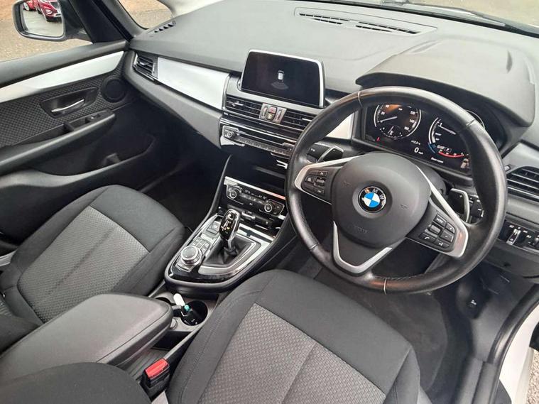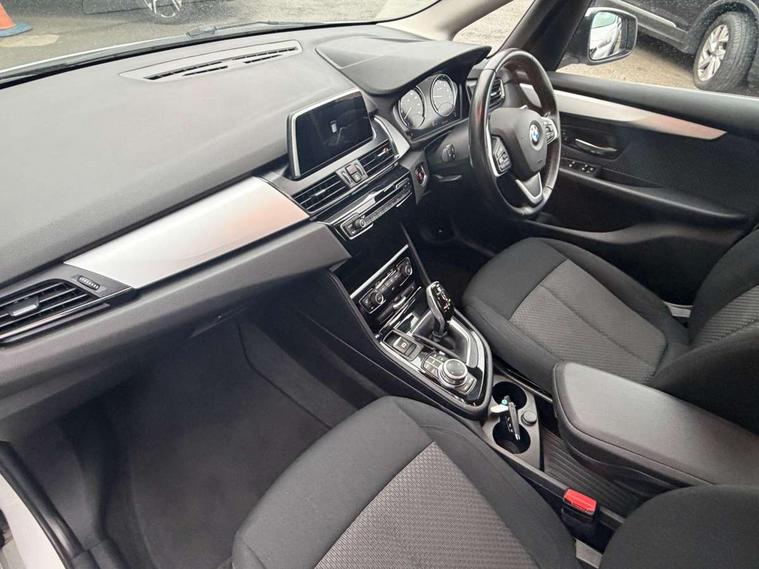 Attentiveness assist, Automatic tailgate operation, BMW Online services, BMW remote services, BMW Teleservices, Check control system, Cruise control with brake assist, Door/boot open warning light, Forward collision warning, Lights on warning, Oil temperature gauge, On board computer, Outside temperature display, Personal Profile, Service interval indicator, Speed limiter, Stop/start button, Drive Performance Control, Electronic differential lock, 2x USB sockets in front, Bluetooth audio streaming, BMW professional radio/CD/MP3, DAB Digital radio, Body colour bumpers, Body colour door handles, Body colour door mirrors, Body colour roof mouldings, Chrome kidney grille with black vertical slats, Door sill finishers, Electric adjustable heated door mirrors, Electric front/rear windows with one touch/auto up/down, Follow me home headlights, Heat insulating tinted glass, Heated windscreen washer jets, High beam assistant, LED daytime running lights, LED front fog lights, Rain sensor including auto headlights activation, Rear wiper, Twin chrome exhaust tailpipes, Welcome lighting, 3 rear headrests, 3 spoke sports leather steering wheel, 4 grab handles, Anthracite Velour floor mats, Dual zone automatic air conditioning, Front armrest, Front head restraints, Front/rear armrests within door panels, Illuminated glovebox, Isofix front passenger and rear seat preparation, Luggage compartment lighting, Multifunction steering wheel, Reach + rake adjustable steering column, Rear centre armrest, Sunvisors, Extended storage pack - 2 Series Active/Gran Tourer, 3 point seatbelts on all seats, ABS, BMW emergency call, Brake assist function, Childproof rear door locks, Collision mitigation braking system, Crash Sensor - activates hazard/interior lighting + unlocks doors, Driver/Front Passenger airbags, DSC+, Dynamic Traction Control - DTC, Front and rear curtain airbags, Front passenger airbag deactivation, Front seatbelt force limiters, Front seatbelt pretensioner, Front side airbags, Hill start assist, Seatbelt warning, Side impact protection, Tyre pressure monitoring system, Warning triangle and first aid kit, Electronic immobiliser, Key integrated remote control central locking, Locking wheel bolts, Remote control Thatcham category 1 alarm,