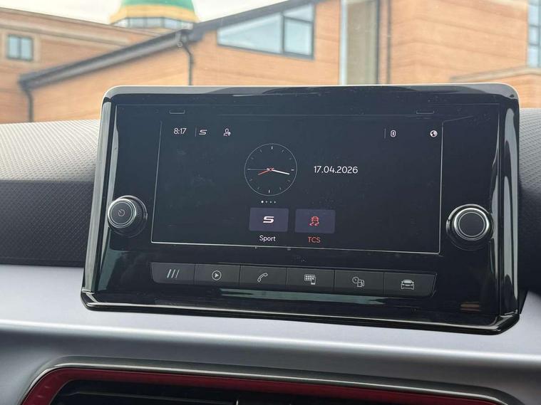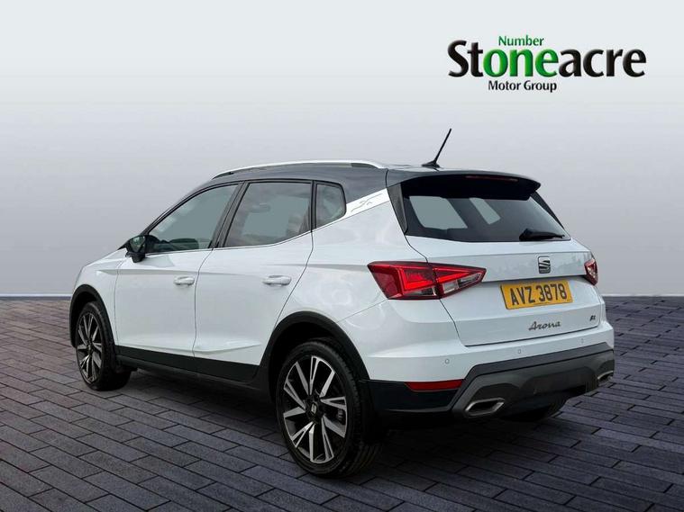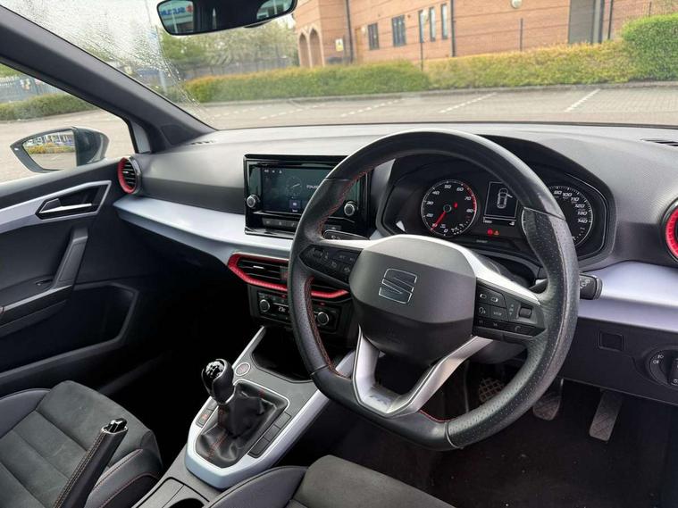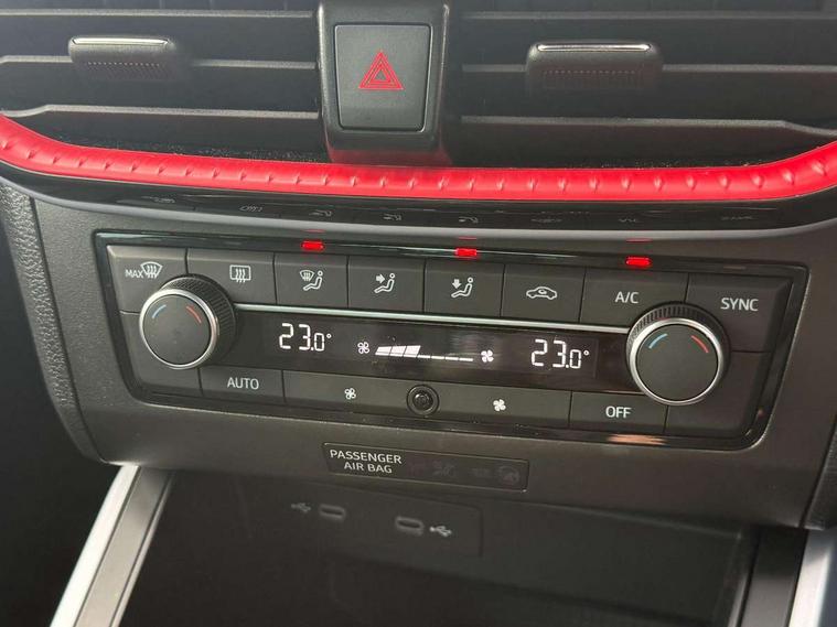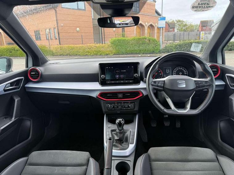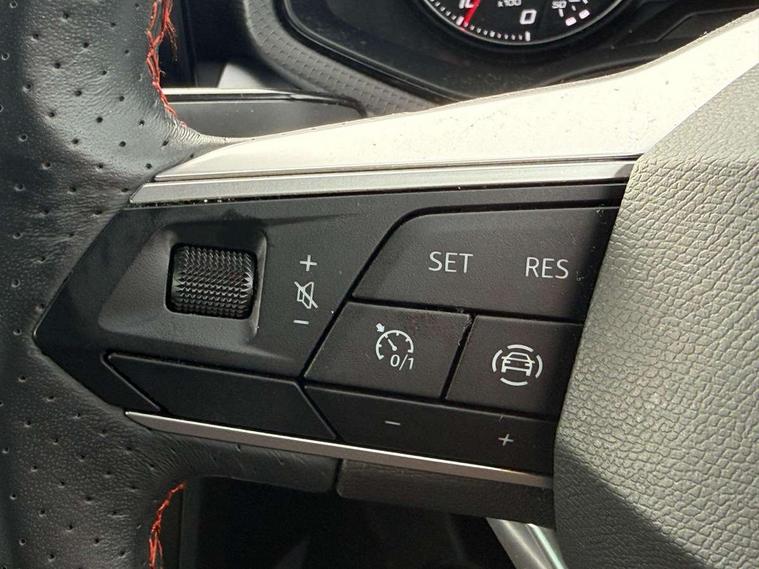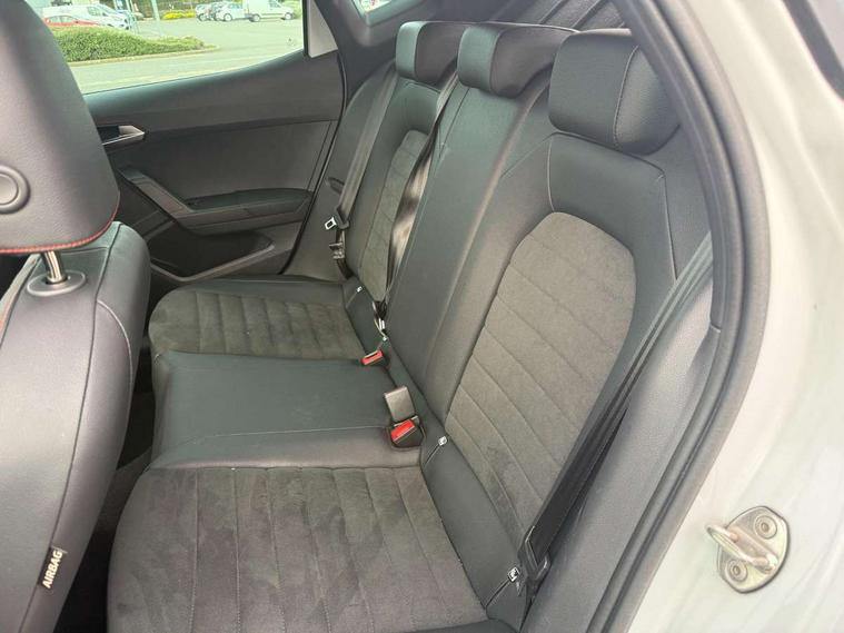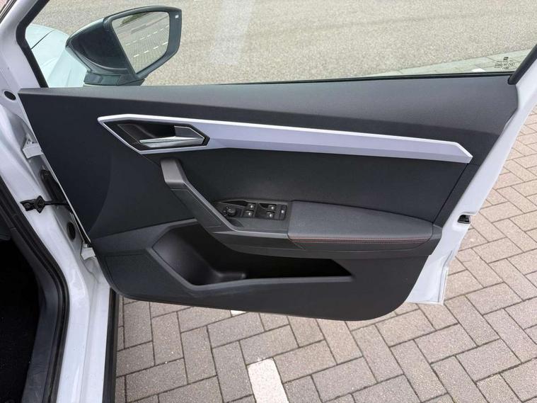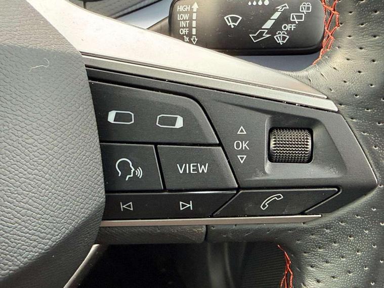 'Lights On' Reminder warning buzzer, Analogue cockpit with physical dials, Digital clock, E-call, Electric speed sensitive power steering, Full Link Smartphone Integration with Mirror Link, Apple Car Play, Google Android Auto with USB Type C cable for Apple and Android compatibility, Lane keeping system, Low fuel warning light, Outside temperature display, Rear parking sensor, RPM counter, Seat connect with safety, service and remote, SEAT Drive profile - Four different models normal-sport-eco-individual, steering response, throttle response, Trip computer, Wireless phone charger, Bluetooth interface for hands free and audio streaming, DAB digital radio and AM/FM radio, Media system with 8.25" colour touchscreen with USB port (type c), Steering wheel mounted audio controls, Anti theft roof antenna, Automatic activation of hazard warning lights, Body coloured bumpers, Body coloured door handle inserts, Chrome roof rails and window surrounds, Dark tinted rear windows, Dimming rear view mirror, Electric front/rear windows, Electrically adjustable and heated door mirrors, Front fog lights with cornering function and rear fog light, FULL LED automatic headlights with dynamic headlight range control, coming and leaving home, LED daytime running lights, LED rear tail lights and licence plate lights, Protective side mouldings, Rear side wing doors, Rear spoiler, Rear window wash/wipe, Roof colour door mirrors, Third brake light, Twin exhaust pipe styling hidden exhaust pipe, Visible VIN plate, Windshield wiper with intermittent control and potentiometer, 2 cupholders, 3 seat bench in 2nd row, 60/40 split folding rear seat, Aircare filter, Black interior roof, Double boot floor, Driver sunvisor with covered mirror + card holder, Dual zone climate control, Front comfort seats, Front courtesy light with 2x front and 2x rear reading lights, Gear shift indicator, Height adjustable front seats, Height/reach adjustable steering column, Illuminated boot, Instrument lighting with brightness control, Interior ambient lighting, Interior light in footwell, central console and door panel, ISOFIX points in outer rear seats with top tether anchorage points, Microsuede cloth upholstery, Passenger sunvisor with vanity mirror, Perforated flat bottomed leather steering wheel/gear knob/handbrake with red stitching and FR logo, Single front passenger seat, Two front and three rear height adjustable headrests, Interior chrome pack - Arona, 3 point seatbelts on all rear seats, ABS, Active front headrests, Child locks on rear doors, Driver and front passenger airbags with front passenger airbag de activation, front side and curtain airbags, Electronic stability control, Emergency Brake Assist (EBA) and front assist, Front and rear seatbelt reminder, Hill hold control, Multi-Collision braking, Tiredness recognition system, Traction control, Tyre pressure monitoring system, Alarm with back-up horn, Electronic engine immobiliser, KESSY Keyless entry and go, Locking wheel bolts, Remote central locking + deadlocks, Tow away protection, Titan black dashboard,