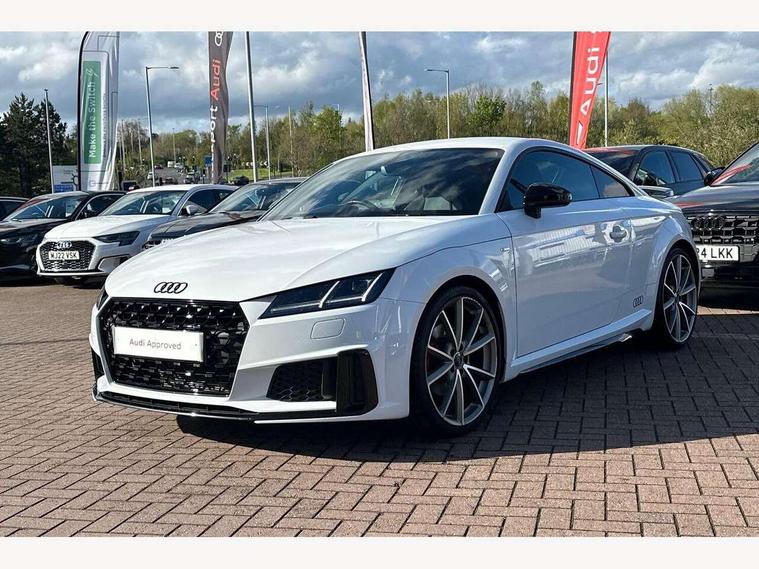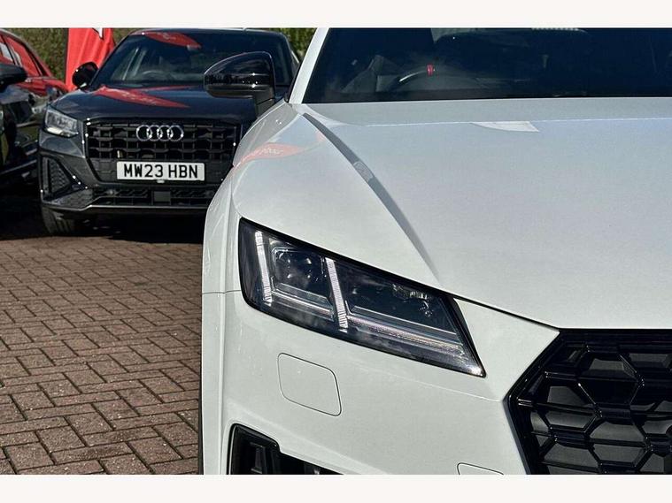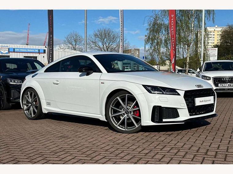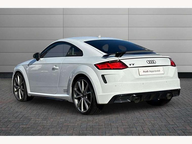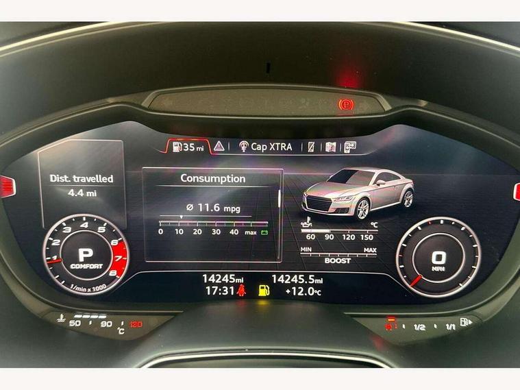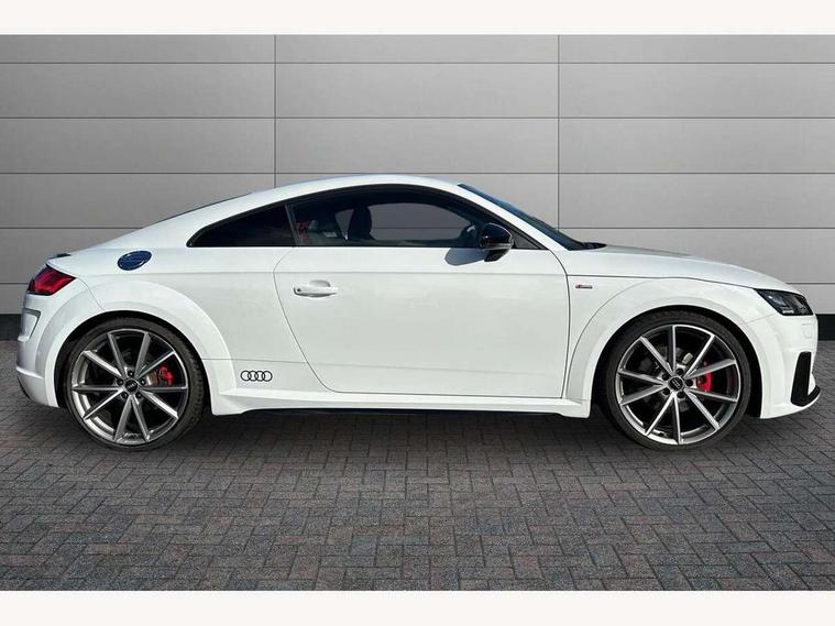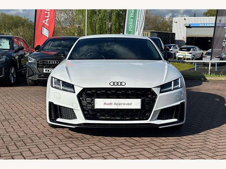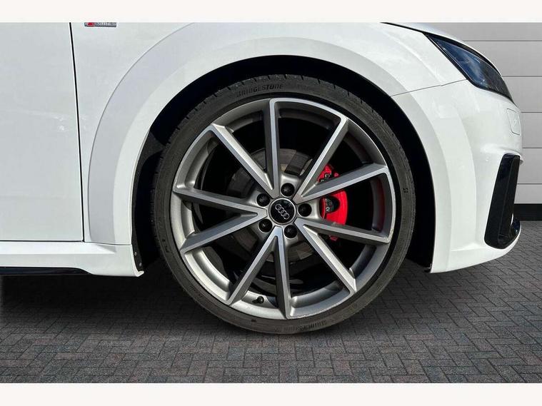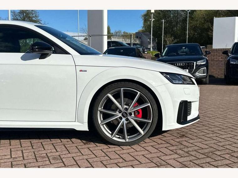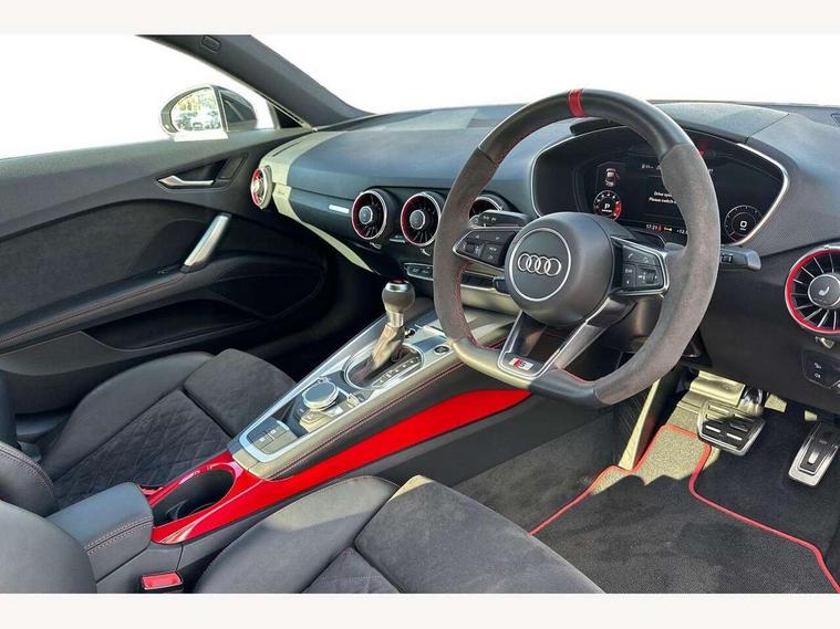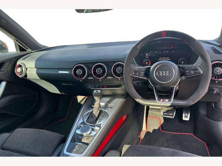 Audi drive select with 4 Pre configured modes, Audi smartphone interface, Audi virtual cockpit - 12.3" high-resolution LCD display with fully customisable instrument cluster, Cruise control + speed limiter, Emergency call service, Mobile phone preparation with bluetooth interface, Progressive power assisted steering, Rear parking sensors, Service interval indicator, Start/Stop system with energy recuperation, TP memo, Sports suspension, 8 Speakers, AM/FM radio, Bluetooth audio streaming, DAB Digital radio, Audi Beam uses LEDs to project the Audi Sport logo, Audi rings decals, Auto dimming rear view mirror, Auto headlight range control, Black chrome tailpipe, Black door mirrors, Dark privacy glass from B-pillar backwards, Electric folding door mirrors, Electric front windows, Electrically adjustable and heated door mirrors with integrated LED side indicators, Heat insulating glass in windshield, Heat reflecting windows, LED 3rd brake light, LED daytime running lights, LED headlights with LED rear lights + dynamic rear indicators, Light and rain sensors, Rear boot, 12V socket, 2 rear seats, 3 spoke flat bottomed high multi-function leather sport steering wheel with gearshift paddles, 4 way electric lumbar support for driver and front passenger, Alcantara leather with 12o'clock marker and express red contrast stitching in steering wheel, Alcantara/leather upholstery with S embossing + contrasting express red stitching on upholstery, Steering wheel and gear knob gaiter, Black headlining, Door sill trims, Extended aluminium look with stainless steel pedals, Front centre armrest, Front passenger seat, Front super sports seats, Heated front seats, Integrated head restraints, ISOFIX child seat mounting for front passenger seat with airbag deactivation, Manual adjustment of seat height, fore/aft position, seat angle, seat depth and backrest angle, Rear head restraints, Rear top tether child seat ISOFIX attachment, Red piped floor mats, Split folding rear seat, Black styling package - TT, Leather pack - TT, Non smoking pack - TT/TT RS, Technology pack without Audi phone box - TT, 3 point front seat belts, ABS, ASR traction control, Curtain airbags, Driver and front passenger airbag with front passenger airbag deactivation, EDL traction control, Electromechanical parking brake, ESP, First aid kit, Front side airbags, Head airbags, Hill hold assist, Red brake callipers, Seatbelt warning, Tyre pressure loss indicator, Warning triangle, Anti theft alarm, Anti theft wheel bolts, Immobiliser, Keyless Go, Remote central locking, Matt brushed aluminium inlays, Tool kit, Tyre repair kit,