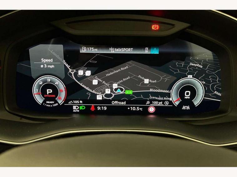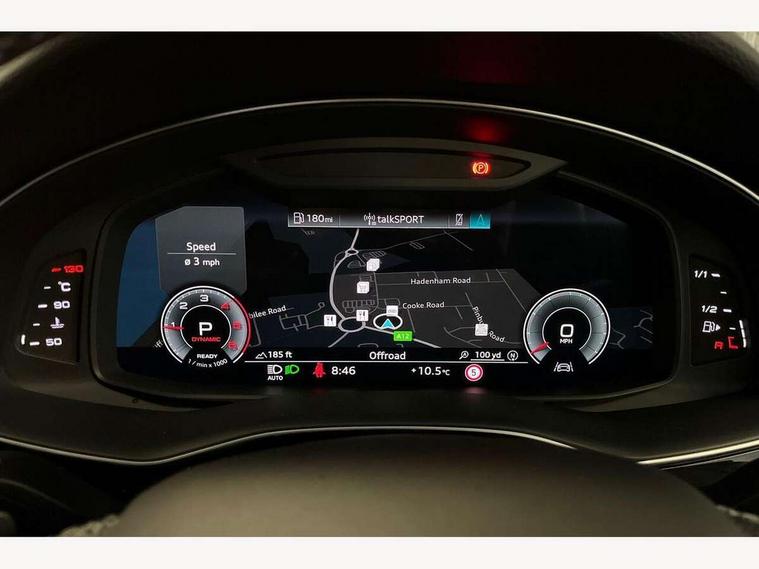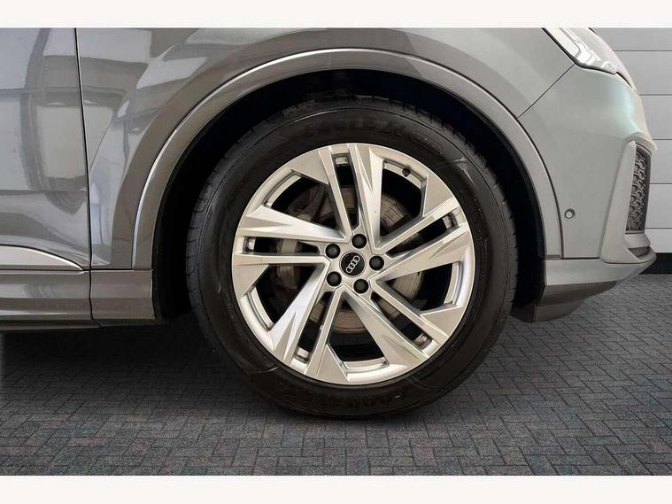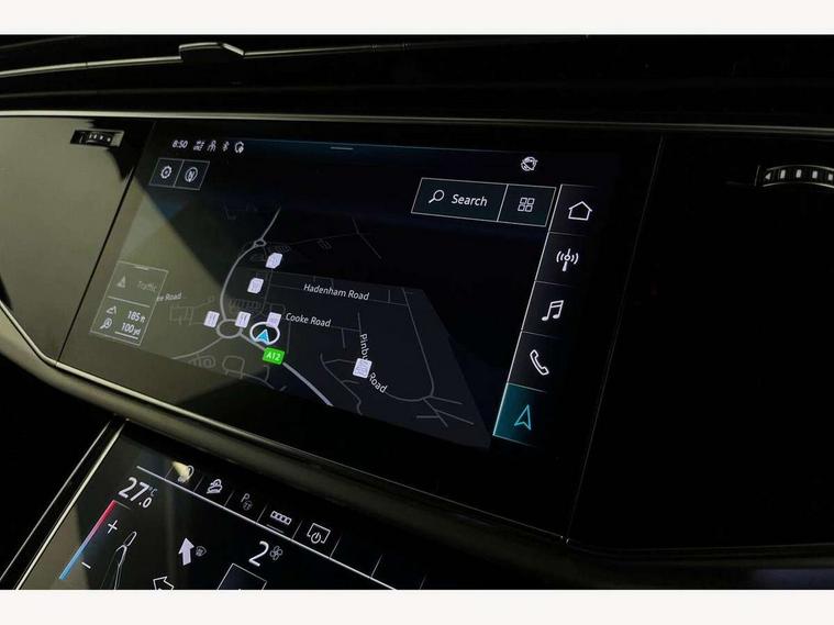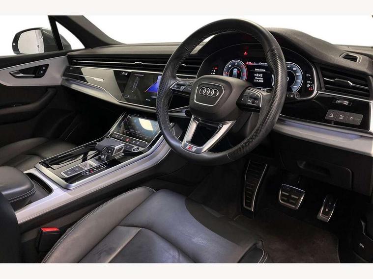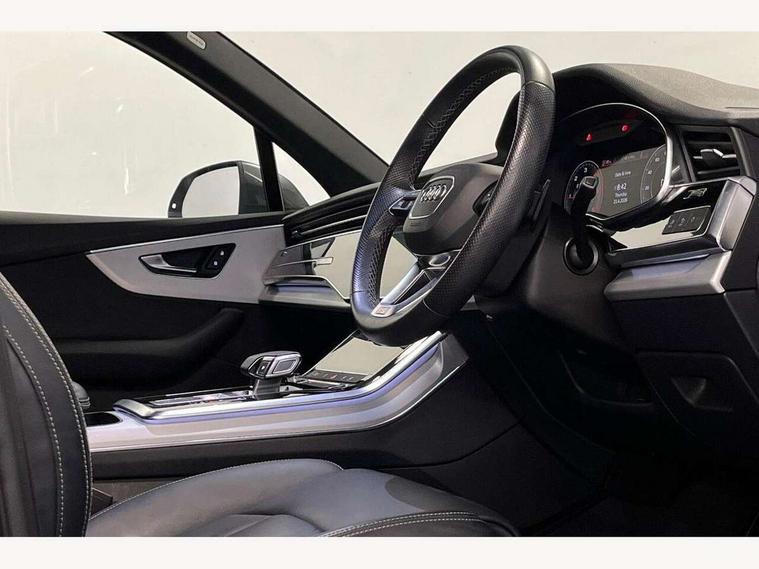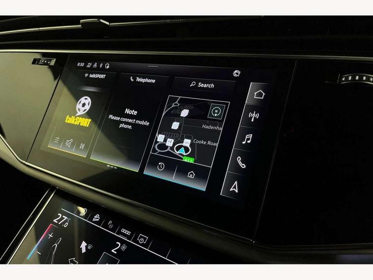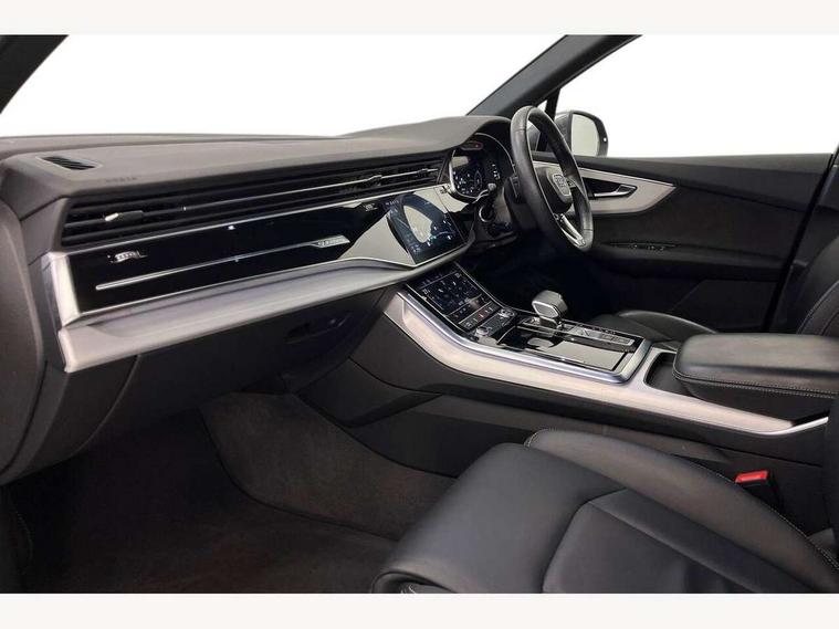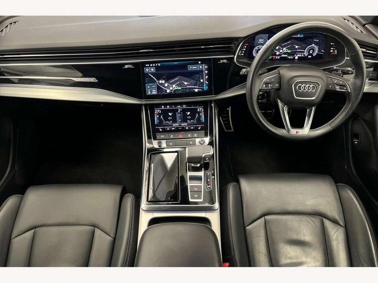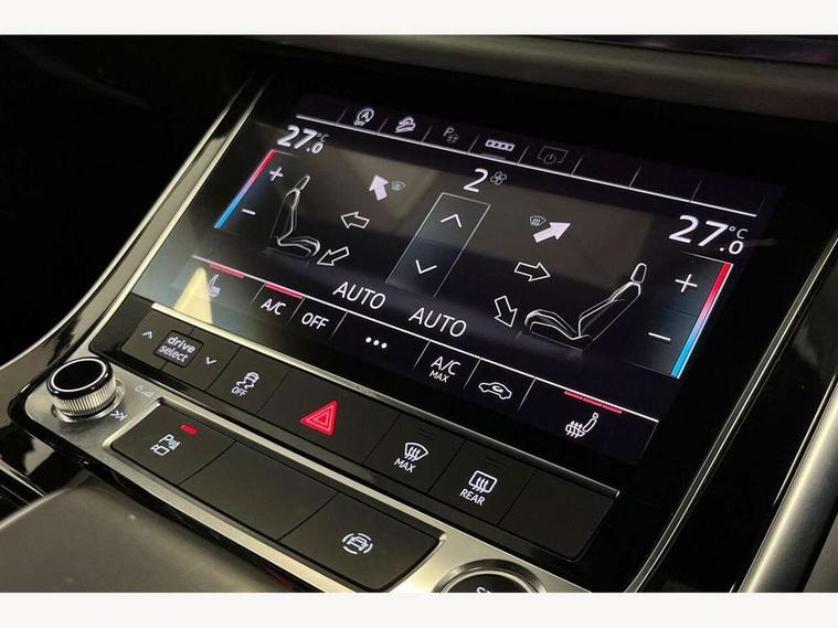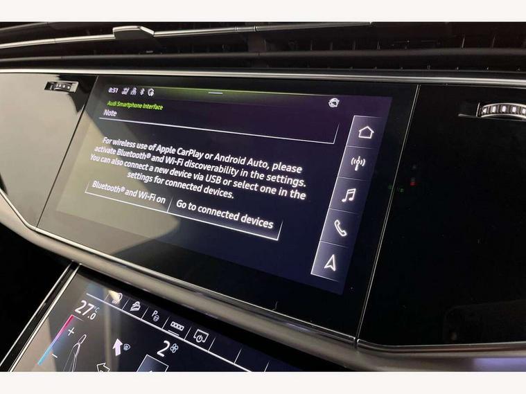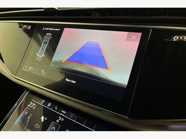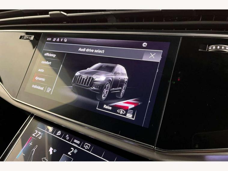 Audi connect safety and service (e-call), Audi connect with Amazon Alexa Integration, Audi drive select (Auto, Comfort, Dynamic, Efficiency, Individual, Off-road and All road), Audi smartphone interface includes wireless Apple carplay/Android Auto, Bluetooth interface, Camera based traffic sign recognition, Electromechanical steering, MMI navigation plus with MMI touch screens includes 10.1" and 8.6" screens with haptic feedback, Natural voice recognition, Parking system plus with 360 degree display (front, rear and side sensors) - acoustic and visual park assist system, Power operated tailgate, Rear view camera, Start/stop system, 48V Mild hybrid technology, Adaptive air suspension, Quattro all wheel drive with self locking centre differential, Audi music interface - front 2 USB-C ports with charger and data functions, Audi sound system with 6 channel amplifier, 180 watt amplifying capacity and 10 loudspeakers including subwoofer, DAB digital radio module, Aluminium roof rails, Aluminium window trim, Audi matrix LED headlights with dynamic front and rear indicators, Auto dimming frameless rear view mirror, Body coloured door mirrors, Electrically adj heated/folding + automatically dimming exterior mirrors with memory + automatic kerb side function for passenger side exterior mirror, Heat insulating glass in windshield, Integrated LED indications in door mirrors, LED daytime running lights, LED rear tail lights, Privacy glass - dark tinted rear and rear side windows from B-pillar backwards, S Line badge on wings, S line bumpers in full body colour paint finish, S line roof spoiler, S line styling side ventilation grilles and side skirts, 2 zone automatic climate control, 7 seat layout with ISOFIX points for the front passenger seat and rear passenger seat, Black cloth headlining, Comfort front centre armrest, Electric adjustable front seat with 4 way lumbar support, driver memory functionality, Folding rear seats, Front head restraints, Front/rear floor mats, Heated front seats, Illuminated door sill trims with S logo, LED interior ambient lighting, Luggage compartment cover, Luggage compartment sill protection in stainless steel, Rear head restraints, Stainless steel pedals, Sunvisors with illuminated vanity mirrors, 3 point seatbelts on all rear seats, Audi pre sense front, Driver and front passenger, front side and curtain airbags, Electromechanical parking brake, Electronic Stabilisation Control (ESC) including ABS, ASR and EDL, Extended pedestrian protection measures, Hill hold assist, Seatbelt monitoring, Tyre pressure loss indicator, Warning triangle and first aid kit, Anti theft alarm, Anti-theft wheel bolts and wheel loosening detection, Keyless Go, Remote central locking, Darkened matt brushed aluminium inlays, Tool kit, Tyre repair kit,