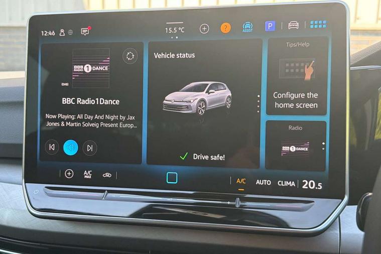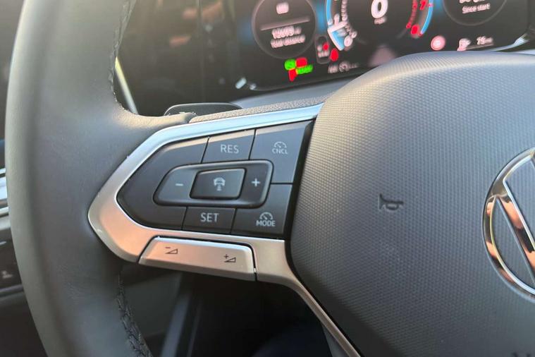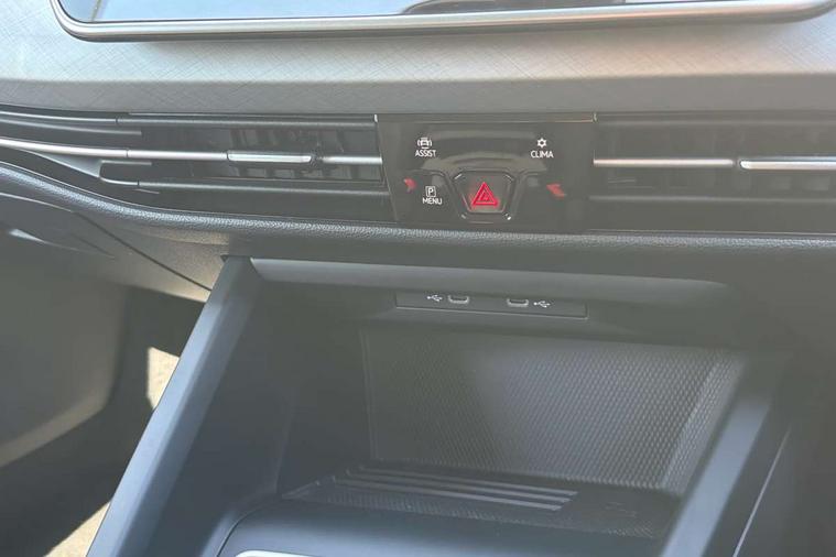 Activated carbon canister, Adaptive cruise control (ACC), Advanced driver attention and drowsiness monitor, Dynamic road sign display, E-Sim card for online connectivity, eCall emergency call system, Multi-color Digital cockpit pro, selection of different info profile possible, Multifunction front facing camera for distance control, Navigation system, Oncoming vehicle braking when turning including swerve support, Speed limiter, Speedo, rev counter, electronic odometer, trip, service interval display, exterior temperature and fuel gauge, Voice enhancer and voice control, Warning signal and warning light for front and rear seatbelts not fastened, We connect plus preparation, We connect preparation, Wireless app connect, Hybrid propulsion system, Petrol Particulate Filter, Start-stop system with battery regeneration (recuperation - energy recovery during braking), XDS electronic differential lock for improved traction and handling, 2 USB C ports in front, 2 USB charging sockets on the centre console in the rear charging capacity upto 45W, Digital radio reception (DAB), Diversity antenna for FM reception, Gaming platform via car app, Infotainment system with 12.9" display, Mobile phone interface with inductive charging feature, 3rd brake light, Automatic headlamp activation with Coming home and Leaving home feature, Body colour door handles, Body colour door mirrors, Exterior mirrors convex on the left and aspherical on the right, Front and rear electric windows, Heat insulating windshield made of laminated glass, LED separate daytime running light, Rear exhaust tailpipe, Rear fog light on one side and reversing lights on both sides, Rear side wing doors, Rear tinted glass 65% light absorbing from B pillar backwards, Rear windscreen washer and wiper with interval delay, Remote electrically foldable door mirrors, puddle lights and reverse activated passenger's door mirror, Standard bumpers, Welcome light with surround lighting, 12V socket in front centre console, 12V socket in luggage compartment, 3 rear head restraints, 3 seat bench in 2nd row, Chrome plated radiator grille inserts, air vent surrounds and light switch surrounds, Front centre armrest, Front head restraints, Front seat lumbar support adjuster, ISOFIX anchors for child seats on outer rear bench seats and on front passanger seat compatible for i-Size, Luggage compartment lighting, Manual height adjustable front passenger seat, Manually height adjustable driver seat, Plastic gear knob, Rear cupholder and loadthough, Single front passenger seat, Soul black instrument panel, Split folding backrest with centre armrest and unsplit rear seat bench, Standard pedal cluster, Storm grey roof lining, Sun visors with illuminated vanity mirrors, Technology park and comfort pro package - Golf Hatchback, 3 point height adj front seatbelts + pretensioners, 3 rear three point seatbelts, ABS, Autonomous emergency braking front assist with pedestrian and cyclist monitoring, Child locks on rear doors, Driver and front passenger airbag with front passenger airbag deactivation, Electronic parking brake with auto hold, ESC (Electronic Stability Control), Extended pedestrian protection measures, Hill start assist, Rear disc brakes, Two tone horn, Tyre pressure loss indicator, Volkswagen roadside assistance, Anti theft wheel bolts, Preparation for alcohol interlock, Nature cross brushed decorative inserts for dashboard and front door panels,