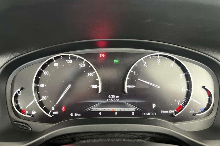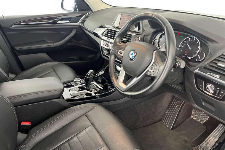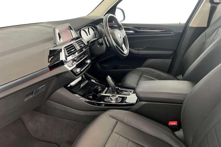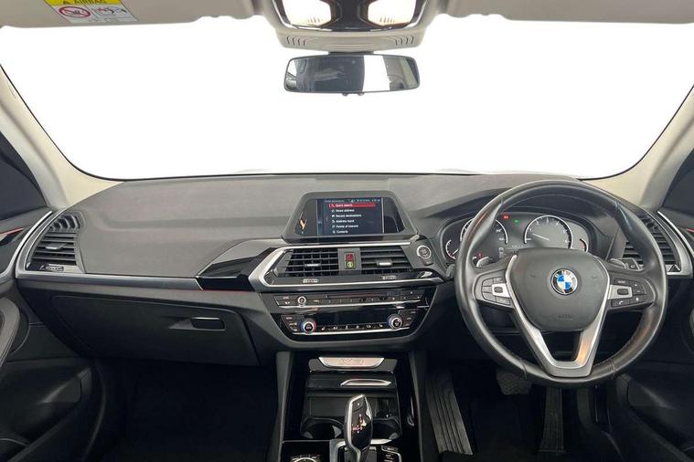 Active Guard incl speed limiting and lane departure functions with auto steering, and front collision warning with brake intervention, Attentiveness assist, Automatic tailgate operation, BMW Live Cockpit Plus with 8.8" central information display + nav function, BMW Online services, BMW Teleservices, Brake pad wear indicator in front and rear, Check Control warning system for monitoring of lights and door/luggage compartment open warning, Control display - 6.5" colour display screen, Electric Power Steering (EPS) with Servotronic, Front/rear Parking distance control, iDrive Controller with 8 favourite buttons, Instrument cluster with speedometer with mph readout, tachometer, fuel gauge and oil temperature gauge, Lights on warning by audio warning signal when ignition is switched off, Oil sensor for level and grade, warning by check control system, On board computer - average speed+fuel consumption, service interval, clock/date, odometer/trip meter, outside temperature display and ice warning, Optimum shift indicator, Personal Profile - automatic lock when driving away selectable, Stop/start system, Automatic transmission with gearshift paddles, Drive performance control with ECO PRO comfort + sport mode, Incorrect fuelling protection, Multi-link rear suspension, Auxiliary socket for external MP3 player, BMW professional radio/CD/MP3, DAB Digital radio, Acoustic glazing, Active AirStream chrome kidney grille with black vertical slats, Black finish on B pillars, Body colour door handles, Body colour electric adjust heated aspherical door mirrors, Body colour roof mouldings, Body coloured bumpers, Direction indicator, side repeaters, integrated in exterior mirrors, Dual chrome exhaust, Dynamic brake lights, Exterior mirrors - electrically folding with anti-dazzle, Fingertip control / anti-trap function on electric window, Follow me home headlights, Front and rear bumper system with replaceable deformation elements, Front and rear electric windows, Front fog lights, Green tinted heat insulating glass, Heated windscreen washer jets, Height adjustable headlamps, High gloss black door sill finishers, High level 3rd brake light incorporating LED Technology, Interior rear view electrochromatic mirror with automatic anti dazzle function, LED tail lights, Lightweight engineering, Matt aluminium roof rails, Model designation, Rain sensor including auto headlights activation, Rear wiper, Shark fin antenna, Visible VIN plate, Welcome lighting, Windscreen wipers with adjustable interval, 12V socket in centre console and luggage area, 3 rear headrests, 3 spoke sports leather multi-function steering wheel, 3 zone automatic air conditioning, 4 lashing points to secure luggage, Ambient lighting, Anthracite Velour floor mats, Driver/passenger sunvisors with ticket holders + illuminated vanity mirrors, Foldable boot floor with storage compartment, Four grab handles integrated in roof lining, Front and rear bottle holders integrated into door trim storage compartments, Front and rear side armrests integrated into door trim, Front centre armrest with storage compartment, Front footwell lights, Front/rear courtesy lights with soft on/off dimming, Front/rear reading lights, Height adjustable front/rear head restraints, Isofix rear child seat preparation, Leather gear knob, Luggage area underfloor compartment, Luggage compartment lighting, Parcel shelf removeable and storable under boot floor, Reach and rake adjustable steering column, Rear centre armrest with 2 cupholders, Rear seat centre armrest with two cupholders, Removable / retractable luggage cover, Slope adjustable rear seats, Storage compartment in rear centre console and front/rear door trims, Through loading system with 40/20/40 split folding rear seat, Toolkit located in luggage compartment, Two front cupholders with removable oddments tray/lid, Vernasca leather upholstery, Connected pack plus - X3, Media pack - Business - X3, ABS/EBD, ADB - Automatic Differential Brake, Automatic Stability Control (ASC), Battery safety cut-off, BMW emergency call, Brake assist, Brake assist function, Brake drying, Brake energy regeneration, Braking pre-tensioning, Child locks on rear doors, Cornering brake control (CBC), Crash Sensor - activation of central locking release, hazard warning light and interior lighting, Deactivation of fuel pump in the event of a crash, Driver and front passenger front and side airbags with passenger deactivation and ITS front and rear head airbags, DSC+, Dynamic brake control, Dynamic Traction Control - DTC, Electromechanical parking brake, Front seat belts warning, Hill descent control, Hill start assist, Seatbelt security check for front seats, Side impact protection, Three point seatbelts to all seats with front and outer rear pyrotechnic belt tensioners and seat belt force limiters, Two tone horn, Tyre pressure monitoring system, Ventilated front and rear disc brakes, Warning triangle and first aid kit, Central locking switch for all doors, fuel filler cap and luggage compartment, Electronic engine immobiliser, Locking wheel nuts, Remote control including two integrated key - one button for open/close all lockable content, windows and separate button for open luggage compartment, Remote control Thatcham category 1 alarm, Start/stop button with Comfort Go keyless engine start and auto Start/stop deactivation button, BMW mobility system, Low rolling resistance tyres,