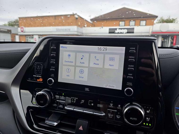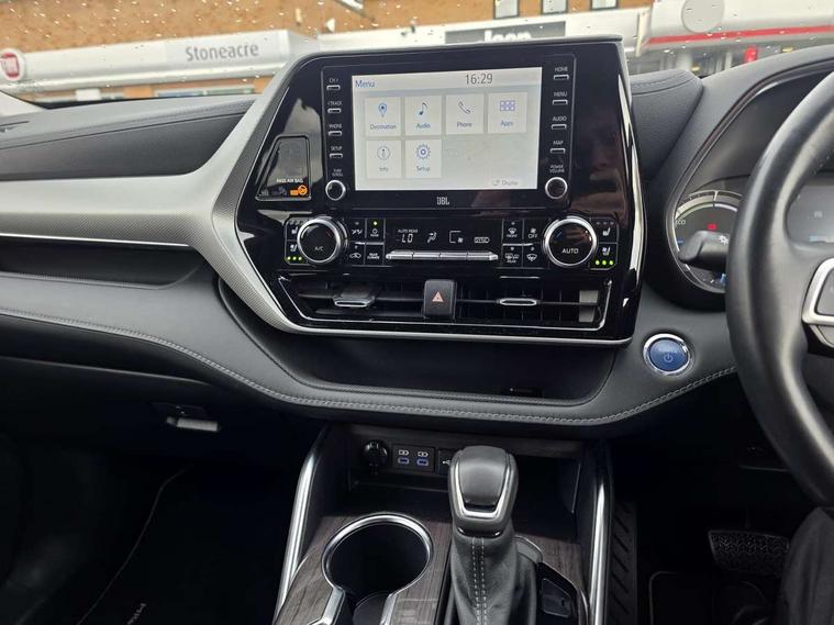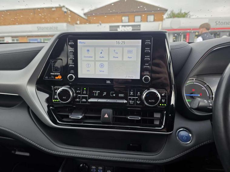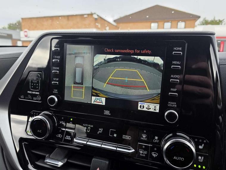 7" Multi information display screen, Blind spot monitor, Bluetooth connectivity, Colour multi information display, Dynamic guide lines on reversing camera, eCall emergency call system, Electric power steering, Emergency steering assist, Head up Display, Intelligent adaptive cruise control, Intelligent front parking sensors with clearance sonar and automatic braking, Intelligent rear parking sensors with clearance sonar and automatic braking, Intersection turn assist, Key reminder warning, Kick activated boot opening, Lane departure alert with steering control, Lane trace assist, Panoramic view monitor, Power boot, Rear cross traffic alert, Remote boot door release in cabin, Remote boot door release on key, Reversing camera with washer function, Smart entry and push button start, Smartphone integration compatible with Apple CarPlay and Android Auto, Telephone switch on steering wheel, Trip computer, Voice recognition, Washer fluid level warning, Wireless Mobile Phone Charger, McPherson strut front suspension, Vehicle Stability Control (VSC), Audio switch on steering wheel, Aux-in connector, DAB digital audio broadcast, JBL Premium sound system with 11 speakers, Mic with (array mic), Rear passenger USB connectors x 2, Toyota touch 2 multimedia system with 8" display, Toyota touch 2 with go navigation system, USB connector x3, Body colured rear spoiler, Anti-jam protection on power windows, Auto folding heated mirrors with puddle lights, Auto up and down function on all power windows, Automatic headlights, Automatic high beam - AHB, Automatic wipers, Black painted upper front grille, Body coloured bumpers, Body coloured door handles, Body coloured door mirrors, Body coloured roof, Chrome door belt moulding, Chrome insert on upper front grille, Chrome roof rails, Chrome surround on upper front grille, Clear headlights design, Dark grey rear under-run, Digital rear view mirror, Fitting correspondence, Front and rear power windows, Glossy black front pillar, Headlight cleaners, Heated washer nozzle on windscreen, Indicators integrated on door mirrors, LED daytime running lights, LED front fog lights, LED front light guide, LED High mounted stop light, LED rear brake lights, LED rear combination lights, Lower front grille shape, Manual headlight levelling, Noise reduction layer on front windows, Noise reduction layer on windshield, Power adjustable door mirrors, Projector Dual beam LED Lights, Rear side wing doors, Rear tailgate with fixed window, Rear window defogger, Rear window wiper, RHD aiming, Shark fin antenna, Tailgate release with push button, Toyota skyview opening panoramic sunroof, Trailer Sway Control, UV-filter on driver and passenger windows, UV-filter on rear windows, Variable intermittent windscreen wipers, Windscreen wiper de-icer, 2nd row rear passenger room LED light, 2nd row rear passenger window manual sunshades, 3rd row 2-seat rear bench, 3rd row rear passenger room LED light, 5 rear headrests, 60/40 split folding 3 rear seats in 2nd row, 60/40 split folding 3rd row rear seat, Adjustable rear headrests, Adjustable speed limiter switch on steering wheel, Assist grips front, Assist grips rear, Boot underfloor storage, Central armrest, Chrome insert on front cup holders, Clean air filter, Door courtesy light, Driver and front passenger air ventilated seats, Driver and front passenger personal LED lights, Driver and front passenger Whiplash Injury Lessening seats, Front 2x12V power socket, Front footwell lights, Grey roof lining, Grey stitching on steering wheel, Heated driver and front passenger seats and outer rear seats, Heated steering wheel, Height adjustable front head restraints, HIGHLANDER door scuff plates, Leather gear shift, Leather like front door armrests and door trim, LED boot light, LED centre room light, Light blue ambient lighting on open tray, Light blue lighting on dashboard, Light on driver sun visor, Light on passenger sun visor, Manual telescopic steering wheel, Manual tilt adjustable steering wheel, Manually adjustable lumbar support on front passenger seat, Memory function for driver seat, Mirror on driver sun visor, Mirror on passenger sun visor, Multimedia switches on steering wheel, Paddle shifts, Perforated leather upholstery, Pollen filter, Power adjustable lumbar support on driver seat, Power height adjustable driver seat, Power reclining front passenger seat, Power sliding driver seat, Power sliding front passenger seat, Rear armrest, Rear cup holders, Rear door pockets, Rear passenger air conditioning, Rear passenger air conditioning control panel, Rear passenger air vents, Rear passenger footwell heating vents, Reclining 2nd row rear seats, Reclining 3rd row rear seats, Resin speaker grille, Single front passenger seat, Sliding 2nd Row rear seats, Ticket holder on driver sun visor, Toyota easy flat system, Triple zone automatic air conditioning, Voice recognition switch on steering wheel, 3x3 point rear seatbelts, Active Traction Control (TRC), Anti-lock braking system (ABS), Brake assist function, Child safety door lock, Emergency brake light signal (EBS), Front seatbelt reminder, Front ventilated disc brakes, HAC-Hill-start Assist Control, ISOFIX child restraint system, Manual child proof rear door locks, Passenger airbag on/off switch, Pre-collision system with pedestrian and cyclist detection, Pre-tensioners and force limiters, Rear seatbelt reminder, Rear ventilated disc brakes, Supplemental restraint system (SRS) airbags - 7 airbags including driver, front passenger, curtain, side and knee airbags, Tyre pressure monitoring system, Anti tamper alarm, Immobiliser, Power door locks, Speed detecting automatic door lock, Tilt detection sensors, 20" 10 spoke dark grey machine face alloy wheels, Temporary spare wheel,