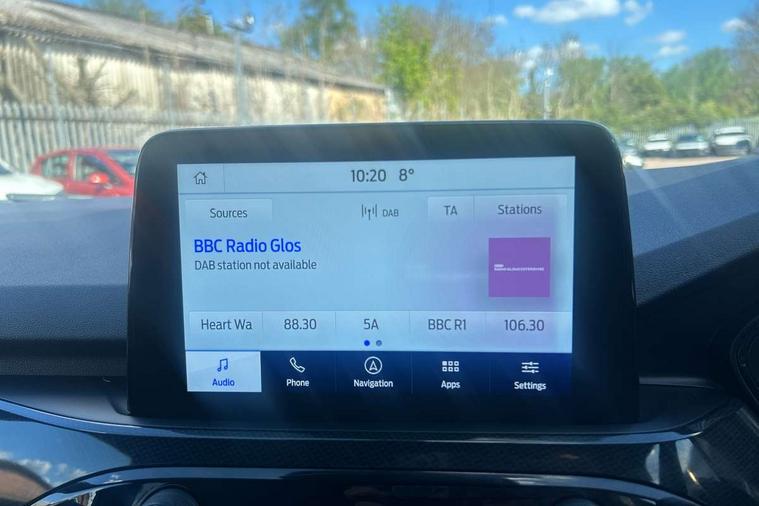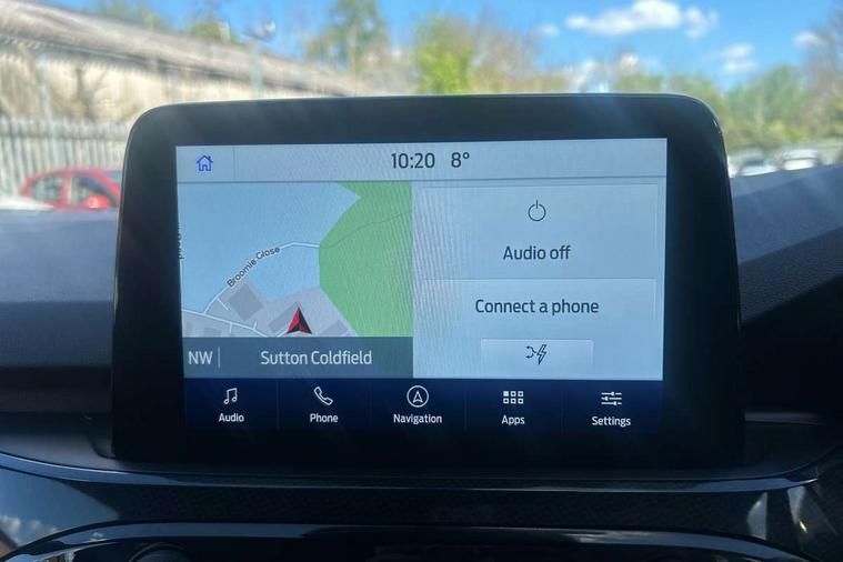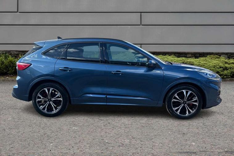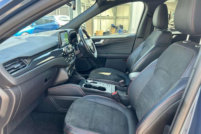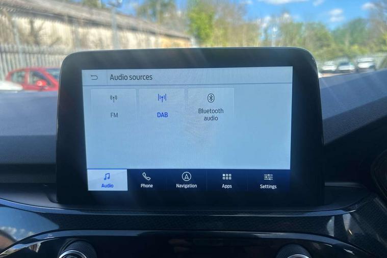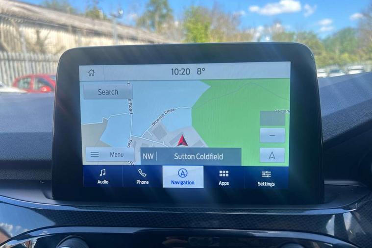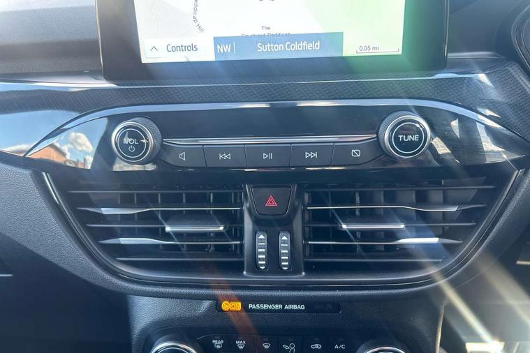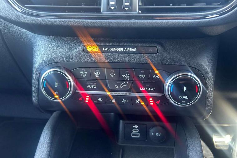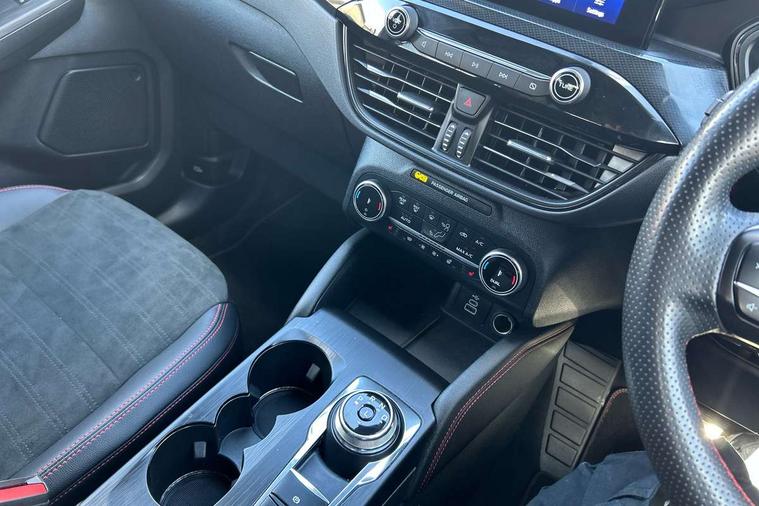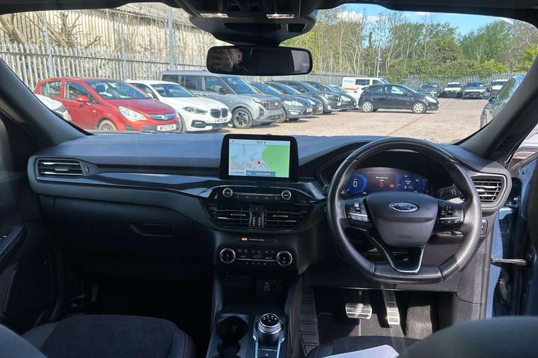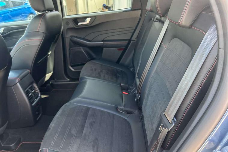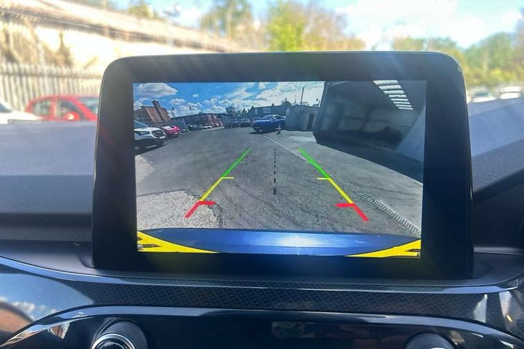 12.3" digital colour instrument cluster, Ford easy fuel, Ford SYNC 3 with 8" TFT LCD touchscreen, App Link, andriod auto/apple carPlay, emergency assistance and navigation with Ford pass connect, Front and rear parking sensors, Hands free power tailgate, Lane keeping aid with lane departure warning, Power assist steering, Rear view camera, Selectable drive modes, Service interval indicator, Sports suspension, Twist beam rear suspension, B&O premium audio system with 10 speakers and subwoofer, 2 USB ports, DAB radio/CD, Auto headlamps with high and low beam, Black roof rails, Day/night rear view mirror, Front LED fog lamps, Large rear spoiler, LED daytime running lights, LED rear lights, Power folding heated door mirrors with puddle lights, Power front/rear windows with global close, Power opening panoramic roof, Privacy glass, Quickclear heated windscreen, Rear side wing doors, Rear wiper, ST Line body styling kit with unique front and rear fascia and bumper, rear painted diffuser, front painted skid plates, dark mesh upper grille, ST Line front scuff plates, Third brake light, Twin exhausts, 10 way power adjustable drivers seat, 2nd row sliding seats with 60:40 split, 8 way manual passenger seat including lumbar support and height adjust, Alloy pedals, Centre console with electronic parking brake, Dark headlining and pillars, Electronic automatic temperature control (EATC), Flat bottomed leather steering wheel in sensico with red stitching, Front and rear head restraints, Heated passenger and driver seats, Heated rear seats, Heated steering wheel, Partial premium touch sensico leather upholstery with black cloth inserts and red stitching, Rear charging point, Single front passenger seat, Sports seats, ST Line front and rear floor mats, 3x3 point rear seatbelts, Airbags - front driver/passenger, front and rear curtain, Drivers knee airbag, Electronic stability control (ESC) and ABS, Ford MyKey Gen 2 safety system, Manual child proof rear door locks, Post collision braking, Pre collision assist with autonomous emergency braking, Rear seat Occupancy alert, Red brake calipers, Tyre pressure monitoring system, Engine immobiliser, Keyless entry and Ford power start button (Keyless start), Locking wheel nuts, Remote powered central double locking doors, Thatcham category 1 alarm,