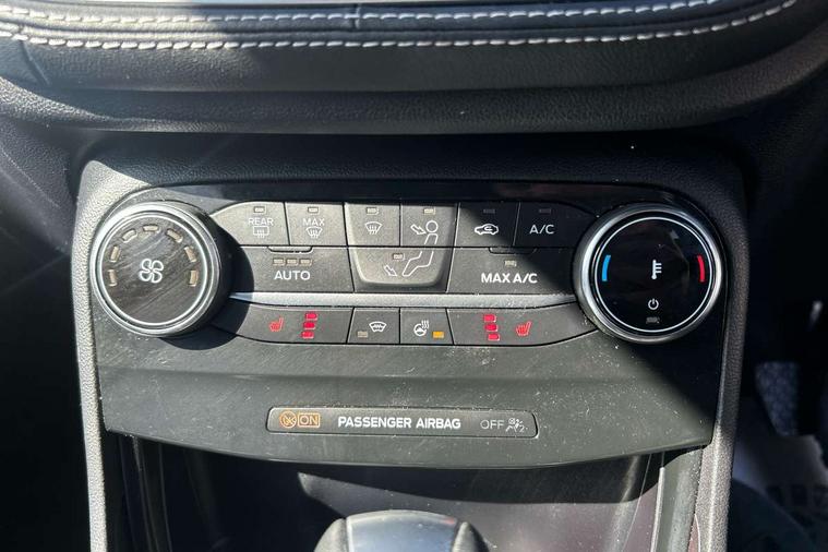 Driver impairment monitor, Emergency call service, Ford easy fuel, Front and rear parking sensors, Full digital 12.3" instrument cluster, Lane keeping aid with lane departure warning, Power assist steering, Selectable drive modes(Normal, Eco, Sport, Slippery and Trail), Speed sign recognition, Sport suspension, Automatic headlights with auto high beam, Automatic rain sensing wipers, Bodyside chrome styling, Fixed LED signature headlamps, Front fog lamps, Gloss black with chrome elements on front and rear bumpers, High chrome waistline, LED daytime running lights, LED rear lamps, Power foldable heated door mirrors with puddle lamps and puma logo protection, Privacy glass to side rear windows and tailgate glass, Quickclear heated windscreen, Rear side wing doors, Rear wiper, Third brake light, Vignale body styling kit with unique grille and large body colour rear spoiler, 3 seat bench in 2nd row, Centre console with armrest and stowage, Ford megabox extended bootspace, Front and rear floor mats, Front and rear head restraints, Manual 4 way driver seat adjust with lumbar adjustment and massage function, Manual 4 way passenger seat adjust with lumbar adjustment and massage function, Premium sensico leather upholstery with metal grey stitching, Premium sensico perforated flat bottomed steering with metal grey stitching, Premium sensico wrapped instrument cluster, Single front passenger seat, Wireless charging pad with electronic air temperature control (EATC), B&O Premium Audio system + Ford SYNC 3 navigation pack - Puma, Winter pack - Puma, 3 rear seatbelts, Child safety lock, Electronic stability control (ESC) and hill start assist, Pedestrian/cyclist detection & post-collision braking, Pre collision assist system, Tyre pressure monitoring system (TPMS), Keyless entry and power start button, Thatcham alarm, Carbon look interior deco spears,