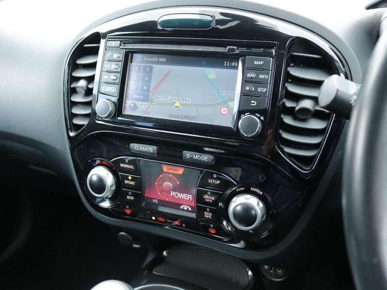 Around View Monitor, Blind spot monitoring, Bluetooth system, Colour rear view camera, Cruise control + speed limiter, Door/boot open warning light, Dusk sensor, Electric speed sensitive power steering, Exterior temperature gauge, Lane departure warning system, Low fuel level warning light, Moving object detection, Nissan connect sat nav system, Push button starter, Service interval indicator, Trip computer, 6 speakers, Aux input, Bose personal sound system, DAB Digital radio, Steering wheel mounted audio controls, Stereo radio/CD player and MP3 facility, USB port, Automatic headlights, Body colour bumpers, Body colour door handles, Body colour door mirrors, Dark chrome grille, Electric door mirrors, Electric folding door mirrors, Electric front/rear windows, Heated door mirrors, Heated rear windscreen, LED daytime running lights, LED front fog lights, LED indicators in door mirrors, Privacy glass, Rain sensor windscreen wipers, Rear wiper, 12V socket, 3 height adjustable rear headrests, 60/40 split folding rear seat, Climate control, Driver/passenger reading lights, Driver/passenger sunvisors and vanity mirrors, Front armrest, Front cupholders x 2, Front door pockets with bottle holders, Front head restraints, Front seat belt pre-tensioners with load limiters, Gear shift indicator, Glovebox, Heated front seats, Height adjustable driver's seat, Interior courtesy lights, Internal chrome door handles, Isofix child seat preparation, Leather steering wheel and gear knob, Leather upholstery, Luggage area under floor storage box, Map reading lamp, Passenger seat back pocket, Pollen filter, Rear tonneau cover integrated into tailgate, Sports seats, Steering wheel rake adjustment, ABS + EBD + EBA, Child locks on rear doors, Driver and passenger airbags, Driver and passenger side airbags, ESP + traction control, Front and rear curtain airbags, Height adjustable front seatbelts, Passenger airbag deactivate switch, Three 3 point rear seatbelts, Tyre pressure monitoring system, VDC Dynamic Vehicle Control, Warning triangle and first aid kit, Alarm, Immobiliser, Intelligent Key, Remote central locking, 17" Urban alloy wheels, Tyre repair kit,