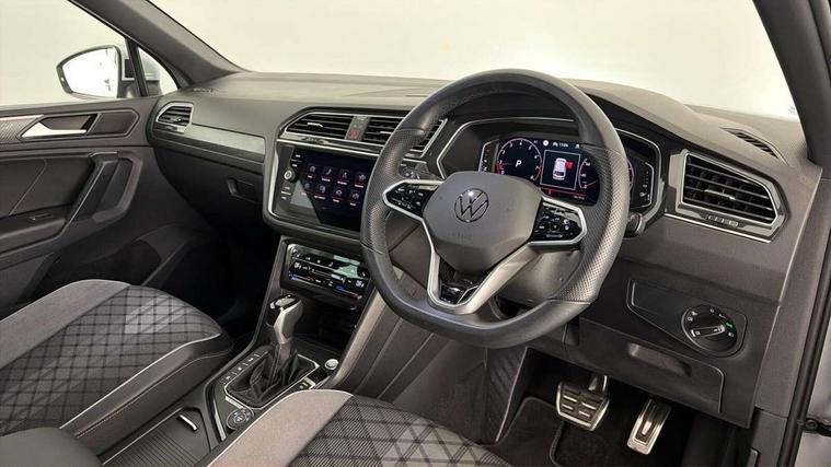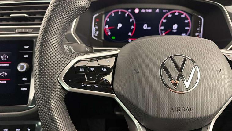 Adaptive cruise control ACC stop and go including speed limiter, App-Connect incl. App-Connect Wireless for Apple CarPlay and Android Auto, Bluetooth phone integration system, Distance control assist, Driver alert system, Driver profile selection, Dynamic road sign display, eCall emergency call system, Electromechanical speed sensitive power steering, Engine start/stop button, Lane keeping system Lane Assist, Lights on warning, Multifunction front facing camera, Outside temperature display, Premium multifunction display with multi colour display, Remote control boot opening, Rev counter, Revision / skills operating concept travel assistant, Service interval indicator, Speed limit display, Start/stop system with regenerative braking, Trip computer, Warning sound and light for doors and tailgate open, All wheel drive - 4Motion, Battery regeneration during braking, XDS electronic differential lock for improved traction and handling, 4 X 20 watt output, 8 Speakers, Diversity antenna for FM reception, Radio, SD card slot, Simultaneous pairing of 2 compatible mobile devices, SMS functionality - read, compose and send SMS messages using touch-screen display, Title and cover art display, USB C ports, Auto dimming interior rear view mirror, Automatic headlight control system, Body colour door handles, Chrome moldings on the side windows, Coming/leaving home lighting function, Dynamic headlight range control, Front and rear electric windows, Heated rear window, High level 3rd brake light, Laminated safety glass windshield, heat and sound insulating, LED headlamps with LED separate daytime running light and dynamic cornering light, LED rear combination lamps, LED rear number plate lights, License plate carrier in front and rear, Poor weather light and cornering light, R Line body kit, R Line side sills, Rain sensor windscreen wipers, Rear exhaust tailpipe, Rear fog lamp, Rear side wing doors, Rear spoiler in R style, Rear windscreen washer and wiper with interval delay, Side and rear windows in heat insulating glass, Trailer Stability Programme, Unique R Line badging, Windscreen wipers/ intermittent wipe + 4 position delay, 12V outlet in center console rear and in luggage compartment, 12V outlet in front and tray, 2 cup holders in front, 2 LED front reading lights, 2 LED rear reading lights, 3 bench rear seats in 2nd row, 3 rear headrests, 4 load lashing points, 40:20:40 split folding rear seats, Air Care Climatronic 3 zone automatic climate control with enhanced air filter and controls in the rear, Backrest release for left front seat, Black headlining, Brushed stainless steel pedals and footrest, Carpet mats in front and rear with decorative stitching in Gray, Climate control unit rear with touch function, Door and side trim panel in foam film, insert in leatherette, Front centre armrest, Front footwell illumination, Front seats head restraints (x-adjustment), Height adjustable front seats, Height/reach adjust steering wheel, Instrument lighting white adjustable panel illumination, Interior light with delay, Isofix Preparation 2 Rear child seats, Leather gear knob, Lockable cooled glovebox, Luggage compartment lighting, Luggage net, Rear bench seat asymetrically split folding, longitudinally movable and folding with load-through hatch and center armrest, Remote unlocking for rear seat backrest, Removable luggage cover, Removable rear headrests, Safety optimised front head restraints, Single front passenger seat, Sliding/reclining rear seats, Standard rear seat release, Storage compartment in driver's door, Storage compartment in passenger's door, Storage compartment in rear doors, Storage compartments in luggage area left and right, Storage tray on dashboard, Sun visors with illuminated vanity mirrors, Top front comfort seats, Variable boot floor, height adjustable and removable, Driver assistance pack plus - Tiguan DSG, 3 point seat belt for centre rear seats, 3 point seat belts with seat belt pretensioners for the outer rear seats, Active bonnet, Curtain airbags for front and rear passengers, Driver/Front Passenger airbags, Drivers knee airbag, Electronic parking brake with auto hold, Electronic Stability Control with driver steering recommendation, ABS, ASR, EDL, EDTC and trailer stabilization, Front assist with autonomous emergency braking (for Adaptive Cruise Control ACC up to 130 mph), Front disc brakes, Front passenger airbag deactivation, Front side airbags, Height adjustable front 3 point seatbelts + pretensioners, Hill hold control, Manual child proof rear door locks, Pedestrian monitoring system, Power assisted brakes, Proactive passenger protection system in combination with front assist, Rear disc brakes, Rigid safety cell with front and rear crumple zones, Two tone horn, Warning sound and light for front seat belts if unfastened, Anti theft alarm system with interior monitoring, backup horn and towing protection, Anti theft wheel bolts, Electronic engine immobiliser, Tool kit,