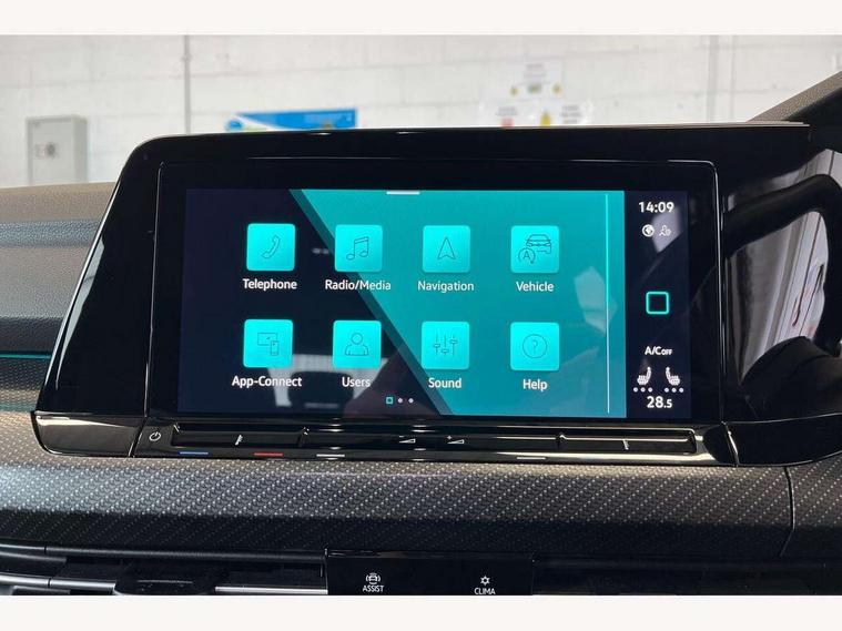 Adaptive cruise control (ACC) with speed limiter and front assist (reacting to vehicles pedestrians and cyclists), Car2X communication, Digital cockpit pro - 10.25" high resolution TFT dash display screen with customizable menus and information, Driver alert system, Dynamic road sign display, eCall - Emergency call service for SOS calls to emergency response, Lane assist, Mobile phone interface with wireless inductive charging function, Multifunction camera for distance control, PAS, Speedo, rev counter, electronic odometer, trip, service interval display, exterior temperature and fuel gauge, Start/Stop function, USB-C ports in the front and rear centre console with increased charging performance, Warning buzzer and light for front seatbelts unfastened, Wireless app connect, Petrol Particulate Filter, XDS electronic differential lock for improved traction and handling, Premium USB cable in choice of either Apple or Android smartphone compatibility, Auto dimming rear view mirror, Automatic headlamp activation with Coming home and Leaving home feature, Automatic headlights, Body colour door handles, Body colour door mirrors with integrated indicators, Body colour rear roof spoiler, Electrically heated and adjustable door mirrors with memory feature, Front and rear electric windows, Heat insulating glass windscreen, Heated rear windscreen, High level 3rd brake light, Highway light, LED License plate illumination, R Line body coloured bumpers, Rain sensor, Rear fog light on one side and reversing lights on both sides, Rear lights incorporating LED technology, Rear side wing doors, Rear tinted glass 65% light absorbing from B pillar backwards, Rear windscreen washer and wiper with interval delay, Welcome light, 12V socket in front centre console, 12V socket in luggage compartment, 3 rear head restraints, 3 seat bench in 2nd row, Ambient lighting - Customisable 30 colour ambient lighting, Ambient lighting, exterior illuminated styling elements at the sides, Black roof lining, Brushed stainless steel pedals, Chrome plated surround to electric mirror button, window switch and air vent surrounds, Drivers and front passengers sun visors with vanity mirrors, Front + rear carpet mats, Front centre armrest with storage compartment, Front cupholders x 2, Front passenger seat, Front reading lights x 2 incorporating LED technology, Front seat lumbar support adjuster, Front sports seats, Glovebox, Height adjustable front seats, Height and reach adjustable steering wheel, Isofix child seat preparation for 2 rear child seats and front passenger seat, Luggage compartment lighting, R Line door and side trim panel, R Line front seats integrated head restraints, R-Line leather wrapped multi function sports heated steering wheel, Removable luggage compartment cover, Sardegna cloth upholstery with front and outer rear seats Art Velour inner sides of bolsters, Split folding backrest with centre armrest and unsplit rear seat bench, Titanium black instrument panel, Woven fabric storage compartments in front and rear doors, 3 point height adj front seatbelts + pretensioners, 3 rear three point seatbelts, ABS, Child locks on rear doors, Driver and front passenger airbag with front passenger airbag deactivation, Drivers and front passengers safety optimised head restraints, Electronic parking brake with auto hold, ESC (Electronic Stability Control), Extended pedestrian protection measures, Front and rear passengers curtain airbag system including front side airbags, Front centre airbag, Front disc brakes, Front side airbags with curtain airbags, Rear disc brakes, Two tone horn, Tyre pressure monitoring system, Alarm with interior protection and deactivation via infotainment system, Electronic engine immobiliser, Carbon grey decorative inserts in dash and front door trim panels, High gloss black centre console,