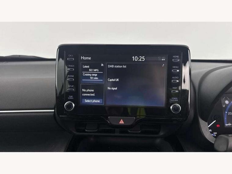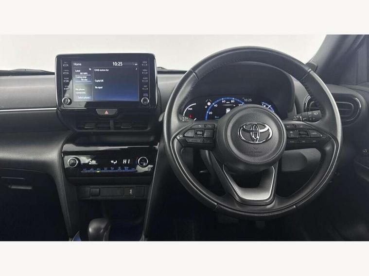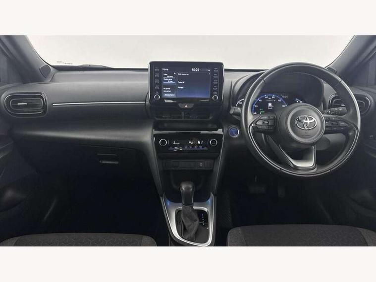 7" Multi information display screen, 8" Toyota touch 2 multimedia system with Smartphone integration with Apple CarPlay and Android auto, Adjustable speed limiter, Bluetooth connectivity, Driver attention alert system, eCall emergency system, Electric power steering, Full range intelligent adaptive cruise control, Hybrid system indicator, Key reminder warning, Lane trace assist, Multimedia, audio, telephone and voice recognition switches on steering wheel, My T Connected services, Pre-collision system enhanced with emergency steering assist, Reversing camera, Road sign assist - RSA, Steering assisted vehicle stability control, 6 speakers, DAB Digital radio, USB connection, 3rd brake light, Acoustic windscreen glass, Aluminium roof rails, Anti-jam protection on power windows, Auto high beam [AHB] with on/off switch, Automatic headlights, Black lower front grille, Black Shark-fin antenna, Black upper front grille, Black wheel arch mouldings, Body colour door handles, Body colour front bumper, Body colour rear bumper, Electric adjustable heated door mirrors, Follow me home headlights, Front and rear electric windows with auto up/down function, Front intermittent wipers, Headlight cut off reminder, Indicators integrated on door mirrors, Intermittent rear wiper, LED daytime running lights guide, LED front fog lights, LED front light guide, LED Indicators, LED projector headlights, LED rear light guide, Manual headlight levelling, Manually retractable door mirrors, Noise reduction layer on windscreen, Privacy glass, Rain sensor, Rear LED lights with sequential indicators, Rear side wing doors, Rear spoiler, Rear window defogger, 12v power outlet - front, 2x Rear coat hooks, 3 seat bench in 2nd row, 3 spoke leather steering wheel, 40:20:40 split folding rear bench seat, Adjustable speed limiter switch on steering wheel, Auto air conditioning, Black roof lining, Boot light, Central armrest, Centre console in light blue ambent lighting, Driver and front passenger personal lights, Fabric door trim, Fabric upholstery, Footwell in light blue ambient lighting, Front console box, Front cup holders, Front head restraints, Glovebox, Height adjustable driver's seat, Height adjustable front passenger seat, Hooks for luggage holding belts, ISOFIX child restraint system, Lane departure alert switch on steering control, Leather gearshift, Light blue ambient lighting on front doors, Manual telescopic and tilting steering wheel, Mirror on driver and passenger sun visor, Pollen air filter, Rear cup holders, Rear head restraints, Single front passenger seat, Soft tonneau cover, 3x3 point rear seat belts, ABS+EBD+Brake assist, Driver and passenger central airbags, Driver and passenger front airbags, Driver and passenger side airbags, Electronic parking brake, Emergency brake light system (EBS), Front seat belt reminder, Hill start assist control (HAC), Passenger airbag on/off switch, Pre-collision system with pedestrian and cyclist detection, Rear door child safety locks, Rear passenger side airbags, Rear seat belt reminder, Traction control, Tyre pressure warning system, Immobiliser, Intrusion alarm, Keyless smart entry with push button start, Power door locks, Power passenger window lock, Remote door lock, Tyre repair kit,