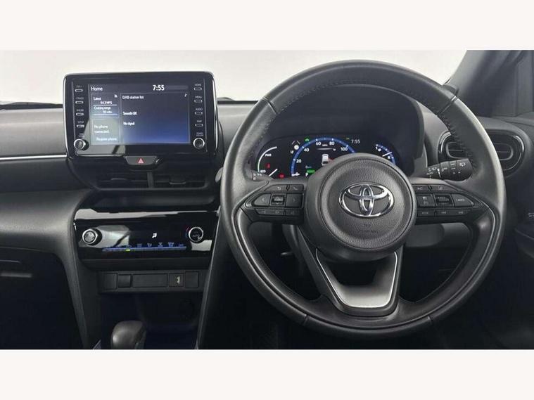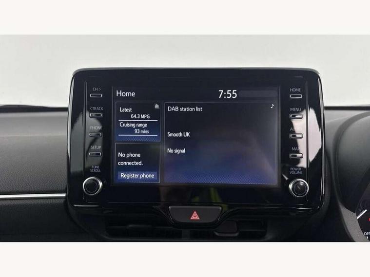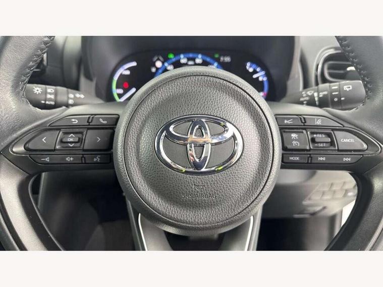 7" Multi information display screen, 8" Toyota touch 2 multimedia system with Smartphone integration with Apple CarPlay and Android auto, Adjustable speed limiter, Bluetooth connectivity, Driver attention alert system, eCall emergency system, Electric power steering, Full range intelligent adaptive cruise control, Hybrid system indicator, Key reminder warning, Lane trace assist, Multimedia, audio, telephone and voice recognition switches on steering wheel, My T Connected services, Pre-collision system enhanced with emergency steering assist, Reversing camera, Road sign assist - RSA, Steering assisted vehicle stability control, 6 speakers, DAB Digital radio, USB connection, 3rd brake light, Acoustic windscreen glass, Aluminium roof rails, Anti-jam protection on power windows, Auto high beam [AHB] with on/off switch, Automatic headlights, Black lower front grille, Black Shark-fin antenna, Black upper front grille, Black wheel arch mouldings, Body colour door handles, Body colour front bumper, Body colour rear bumper, Electric adjustable heated door mirrors, Follow me home headlights, Front and rear electric windows with auto up/down function, Front intermittent wipers, Headlight cut off reminder, Indicators integrated on door mirrors, Intermittent rear wiper, LED daytime running lights guide, LED front fog lights, LED front light guide, LED Indicators, LED projector headlights, LED rear light guide, Manual headlight levelling, Manually retractable door mirrors, Noise reduction layer on windscreen, Privacy glass, Rain sensor, Rear LED lights with sequential indicators, Rear side wing doors, Rear spoiler, Rear window defogger, 12v power outlet - front, 2x Rear coat hooks, 3 seat bench in 2nd row, 3 spoke leather steering wheel, 40:20:40 split folding rear bench seat, Adjustable speed limiter switch on steering wheel, Auto air conditioning, Black roof lining, Boot light, Central armrest, Centre console in light blue ambent lighting, Driver and front passenger personal lights, Fabric door trim, Fabric upholstery, Footwell in light blue ambient lighting, Front console box, Front cup holders, Front head restraints, Glovebox, Height adjustable driver's seat, Height adjustable front passenger seat, Hooks for luggage holding belts, ISOFIX child restraint system, Lane departure alert switch on steering control, Leather gearshift, Light blue ambient lighting on front doors, Manual telescopic and tilting steering wheel, Mirror on driver and passenger sun visor, Pollen air filter, Rear cup holders, Rear head restraints, Single front passenger seat, Soft tonneau cover, 3x3 point rear seat belts, ABS+EBD+Brake assist, Driver and passenger central airbags, Driver and passenger front airbags, Driver and passenger side airbags, Electronic parking brake, Emergency brake light system (EBS), Front seat belt reminder, Hill start assist control (HAC), Passenger airbag on/off switch, Pre-collision system with pedestrian and cyclist detection, Rear door child safety locks, Rear passenger side airbags, Rear seat belt reminder, Traction control, Tyre pressure warning system, Immobiliser, Intrusion alarm, Keyless smart entry with push button start, Power door locks, Power passenger window lock, Remote door lock, Tyre repair kit,