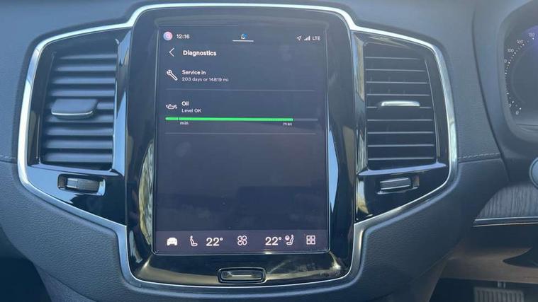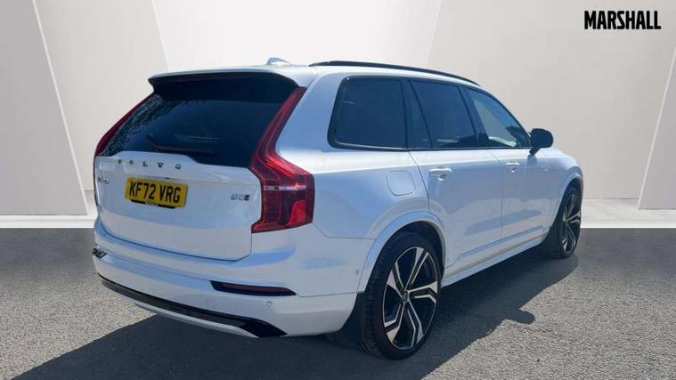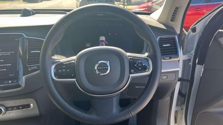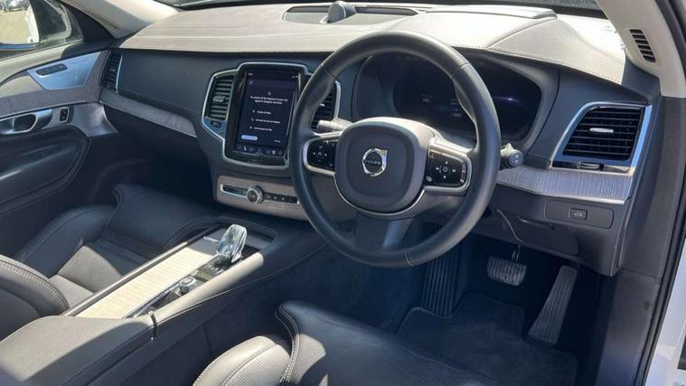 12.3" Progressive Driver Display, 360 degree surround view parking camera with side proximity sensors, 9" centre console portrait touch screen, Adjustable steering wheel force, Bluetooth hands free telephone connection, Driver alert control with lane keeping aid, Driver assistance (pilot assist and adaptive cruise control), Driver awareness - Blind spot information system with steer assist, cross traffic alert with autobrake and rear collision warning and mitigation, Emergency call service, Front and rear park assist, Google Automotive Services - Navigation with Voice recoginition and google assistant, Handsfree power tailgate opening and closing, Oncoming Lane Mitigation, Power operated tailgate, Service interval indicator, Speed limiter, Speed sensitive steering, Trip computer, Volvo on call, Wireless Mobile Phone Charger, 8 speed automatic transmission with start/stop + manual change functions, Active four C chassis - four corner adaptive dampers with electronic air suspension, DAB Radio (Digital Audio Broadcasting), Premium Sound by Bowers and Wilkins, dirac live, dolby pro logic II surround sound, 18 speakers/1400W output and fresh air subwoofer, Steering wheel remote infotainment controls, Active bending headlights with adaptive shadow technology, Adaptive brake lights with high level LED brake lights, Auto dimming interior + exterior mirrors, Auto folding and heated power door mirrors, Automatic headlight levelling system, Automatic LED Headlights + Active high beam incorporating daytime running lights, Body colour bumpers, Dark tinted windows - rear side windows and rear screen, Front and rear power windows, Headlight cleaning system, High gloss black door mirrors and window surround, High gloss black front and rear bumper deco, High gloss black mesh front grille with surround, Home safe and approach lighting, Integrated roof rails in high gloss black, LED front fog lights with cornering light function, Power glass tilt and slide panoramic sunroof with sun curtain, Puddle lights, Rain sensor with automatic windscreen wiper activation, Rear side wing doors, Rear wash/wipe with intermittent wipe setting, Roof antenna, Roof spoiler, Visible VIN plate, 12V socket front tunnel console, rear passenger compartment and cargo area, 2 seat bench in 3rd row, 2nd Row centre armrest with and cupholders, 3 seat bench in 2nd row, 4 zone electronic climate control with Clean zone air quality system + pollen filter, A-pillar parking ticket holder, Advanced interior air cleaner PM2.5, Air conditioning for 3rd row of seats, Ambient door and instrument panel lighting, B Pillar ventilation, Bright metal luggage threshold, Centre console cupholders and storage, Floor mats, Front and rear door pocket and front cupholder illumination, Front and rear reading lights, Theatre lighting and centre armrest storage illumination, Front footwell and side step illumination, Front headrests, Front seat cushion extensions, Heated front seats, Heated rear seats, Heated steering wheel, Height/reach adjustable steering column, Illuminated front and rear tread plates, Illuminated luggage compartment, Illuminated tailgate, Illuminated vanity mirrors + ticket holder, Illumination lockable glovebox compartment, Integrated sun curtains in rear doors, Isofix outer rear child seat preparation in 2nd row, Load protection net, Luggage compartment divider with grocery bag holder, Outboard armrest with cupholder and storage for third row passengers, Power driver seat with multi directional lumbar support and memory for seat and exterior mirrors, Power folding 2nd row headrests, Power passenger seat with multi directional lumbar support and memory, Rear footwell and side step illumination, Rear headrests, Semi automatic load cover, Single front passenger seat, Underfloor luggage compartment storage, 7 three point seatbelts, City safety with steering support includes pedestrian, cyclist and large animal detection and front collision warning with full auto brake, Drivers knee airbag, Dual stage driver/passenger airbags, First aid kit, Front seats SIPS airbags, Hill descent control - off drive mode, Hill start assist, IC (Inflatable Curtains) - Full Length, Passenger airbag cut-off switch, Power child locks on rear doors, Power parking brake with auto hold function, Road sign information display, Run off Road Mitigation, Run off Road Protection, Seatbelt reminder and pretensioners for all seats, SIPS (Side Impact Protection System), Slippery road and hazard light alert, Stability and Traction Control with Spin control, Engine Drag Control and Corner Traction Control, Tyre pressure monitoring system, Vehicle deceleration control with Anti-lock Brake System, Electronic Brake Distribution and Emergency Brake Assist, Warning triangle, WHIPS whiplash protection system - front, Anti-theft alarm including immobiliser/volume sensor + level sensor, Care key with user defined top speed, Key integrated remote control central locking + fuel flap with deadlocking system and auto open/close power windows, Keyless drive includes keyless entry and keyless start, Locking wheel nuts, Private locking for glovebox and tailgate, Tailored Instrument Panel and Door Tops with Contrast Stitching, Tempa spare wheel and jack,